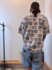 ボックスシルエットで、落ち着いたカラーのハワイアンシャツです。