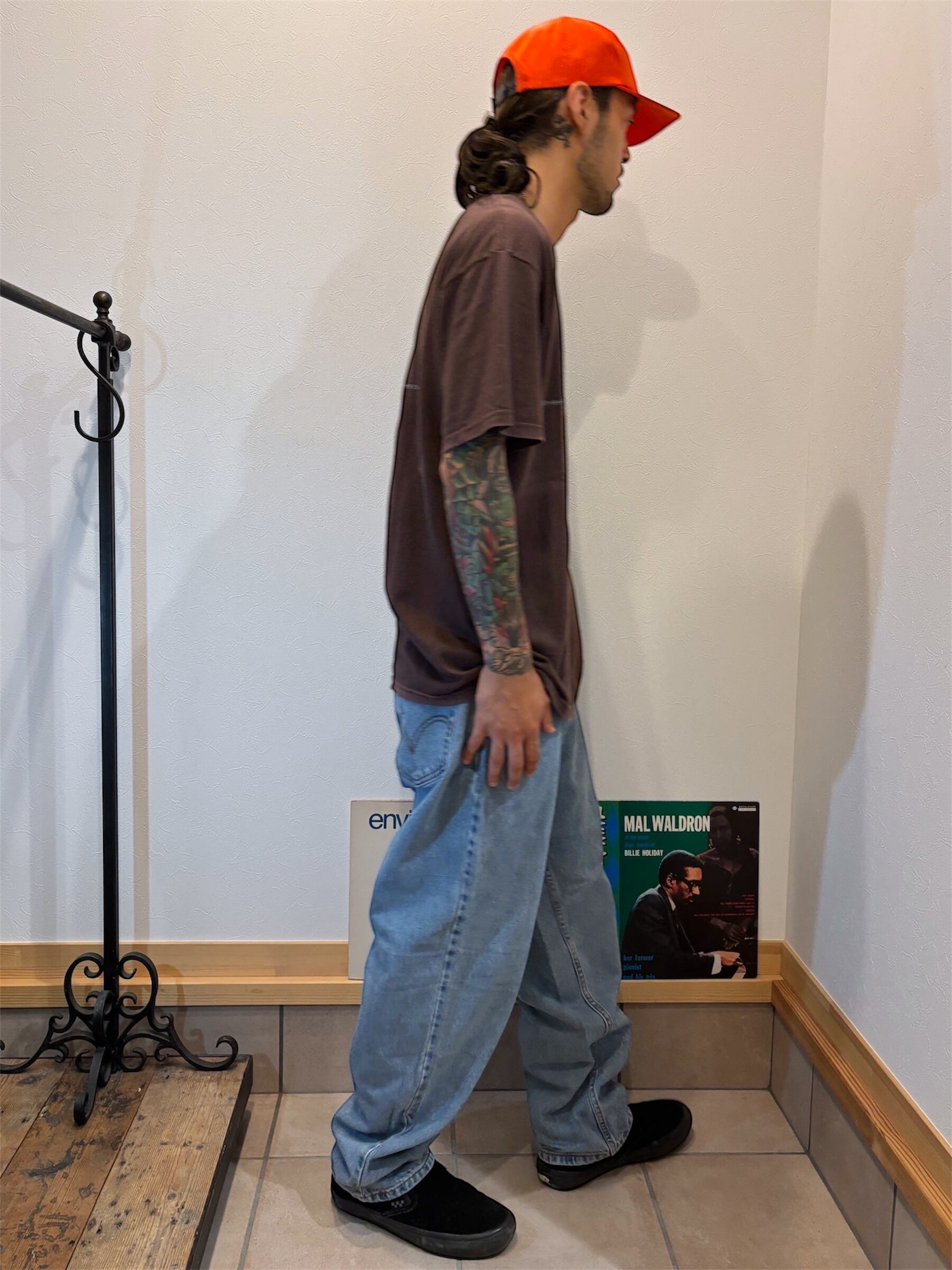 元々ウォッシュ加工済の物なので、色味は新品時と大きな差はなく、W34 L30とサイズバランスも魅力の一本です。