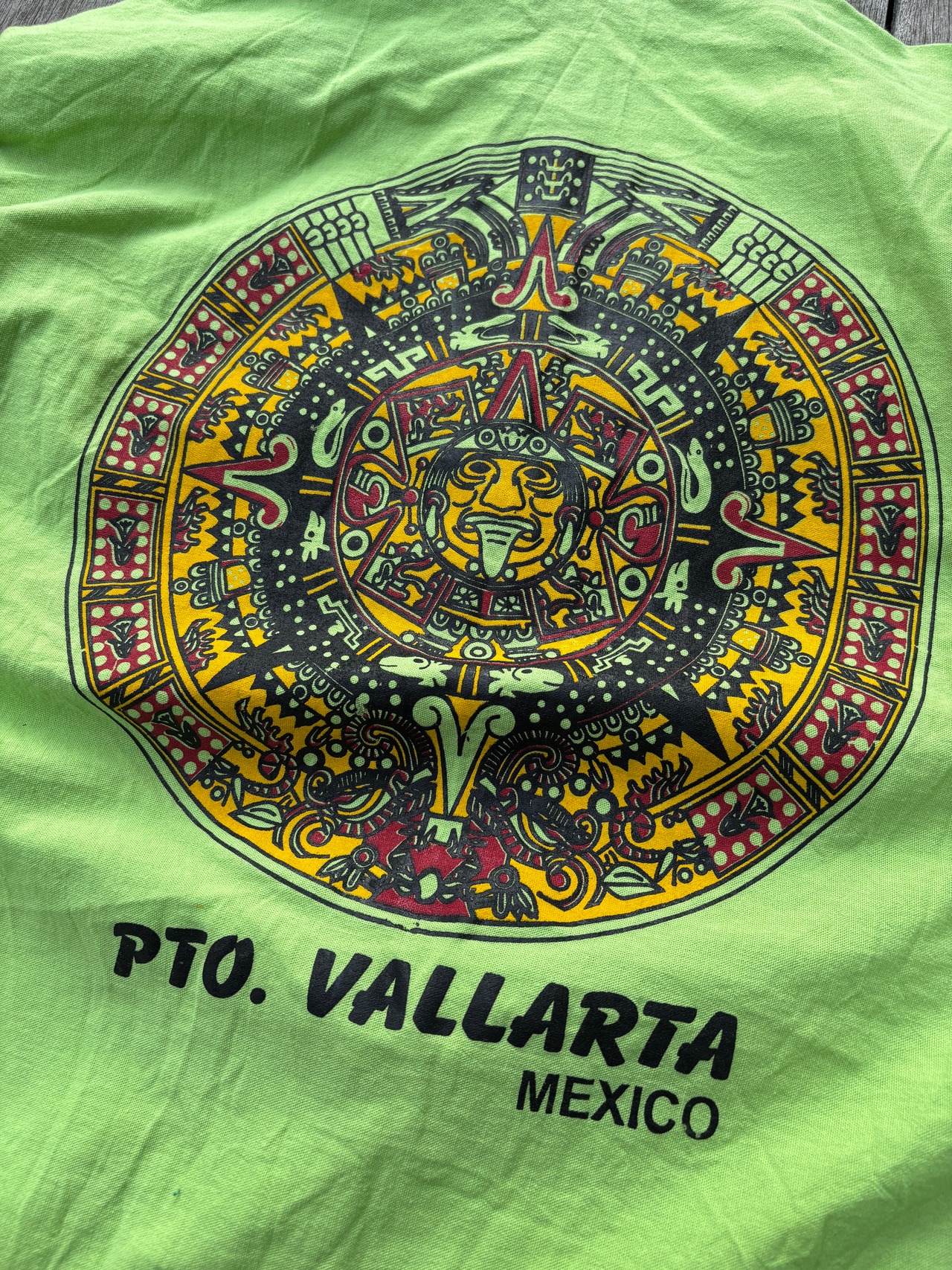 メキシコのリゾート地、「プエルト・バヤルタ」の地名が両袖とバックにプリントされています。
