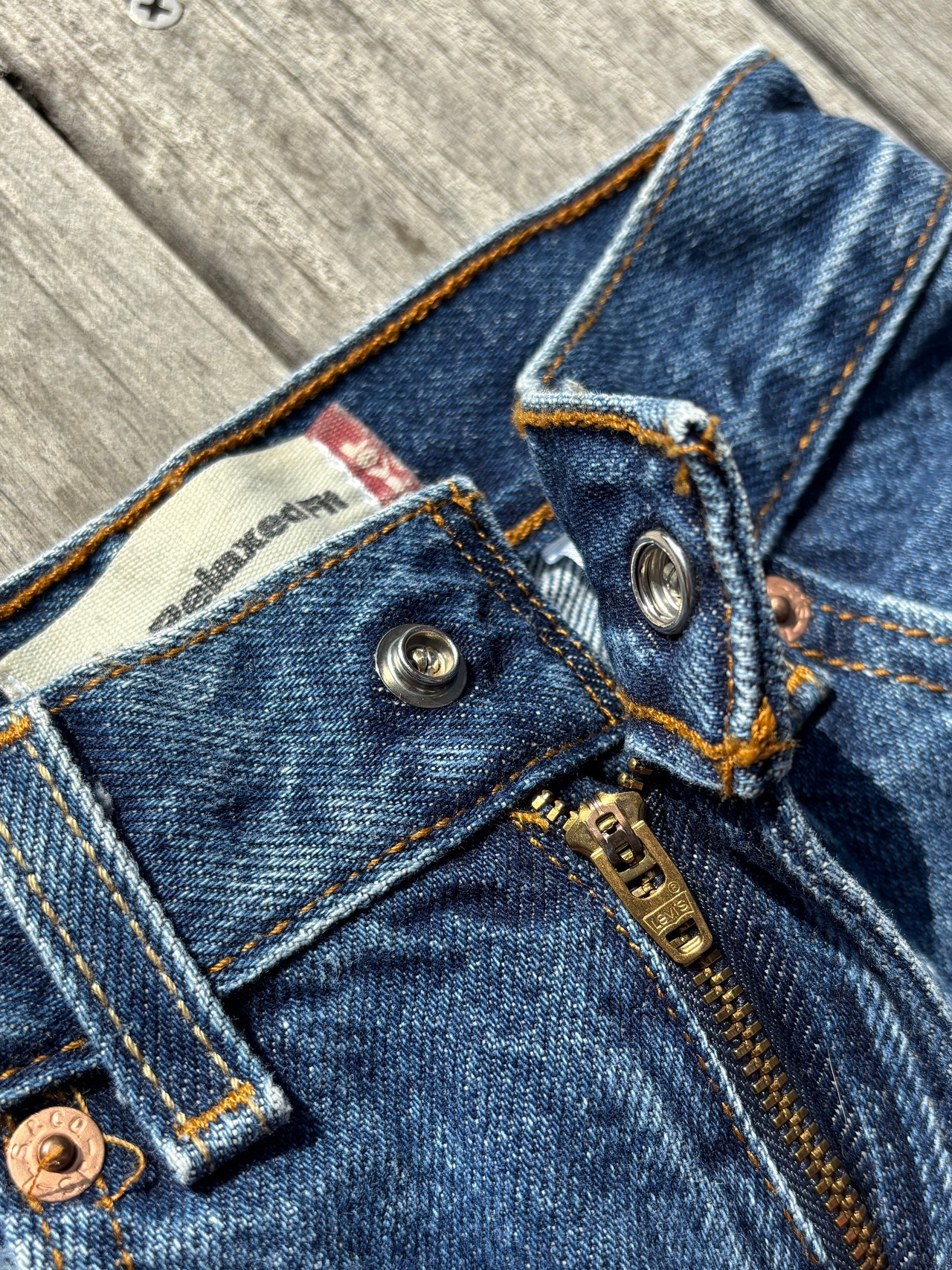 定番の501よりも太めのワタリからテーパードがかかっているシルエットです。