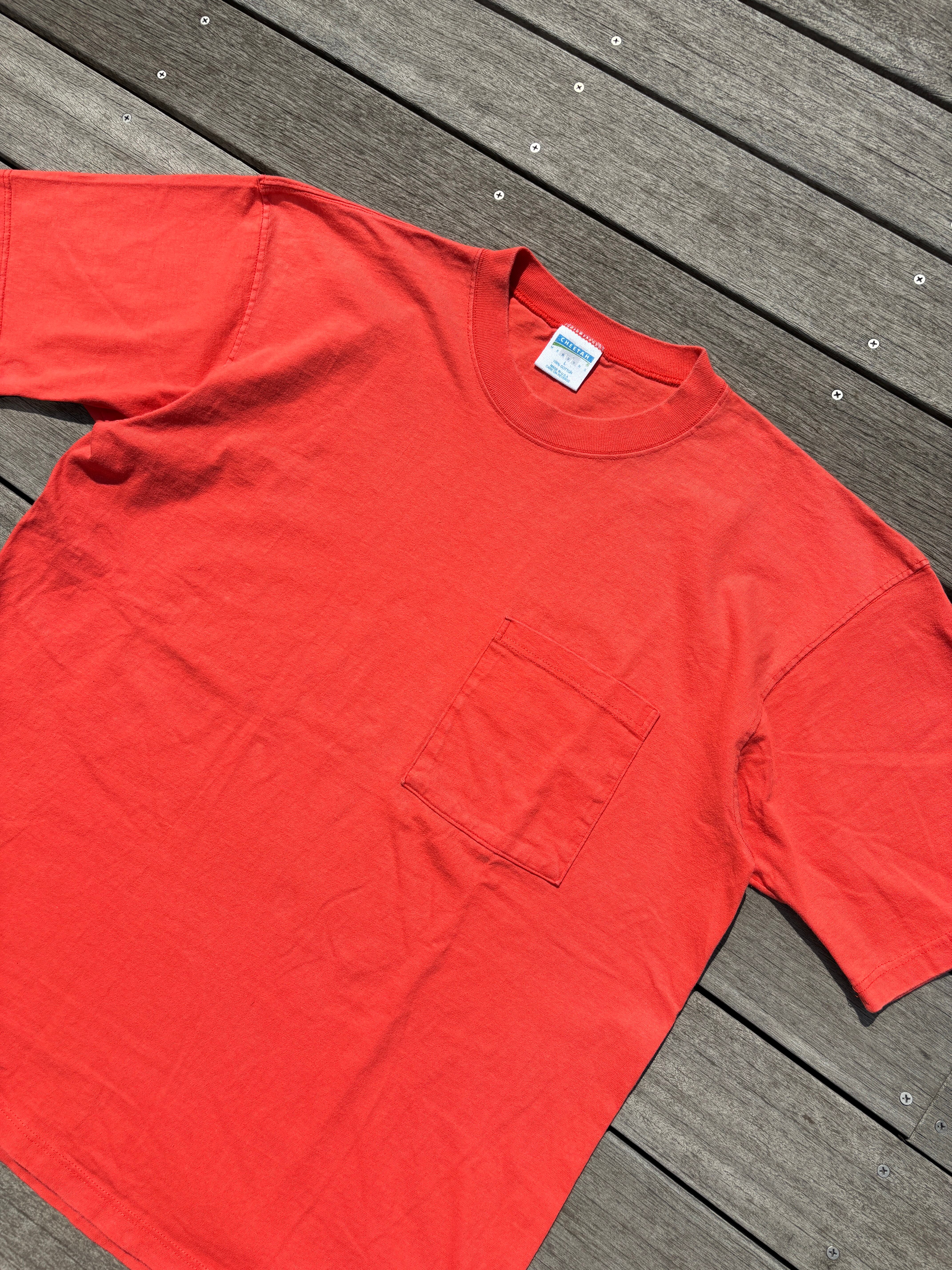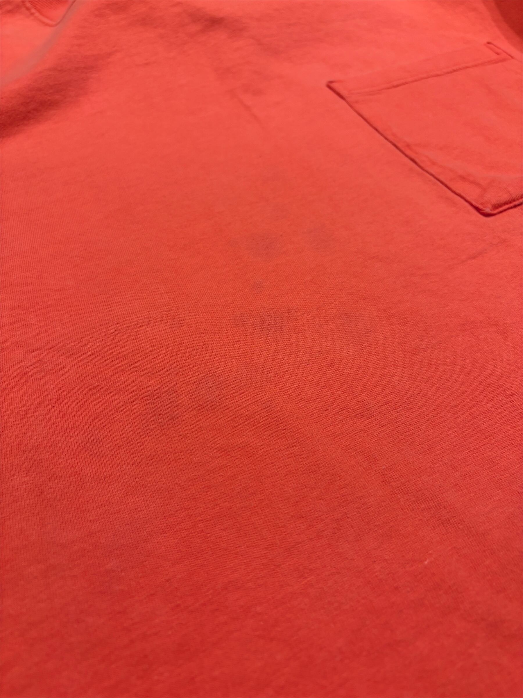00’s "Cheetah Mervyns" Plane Pocket T-Shirt Orange L / 無地T ポケットTシャツ ポケT Tシャツ 古着 ヴィンテージ | Good Slow Morning