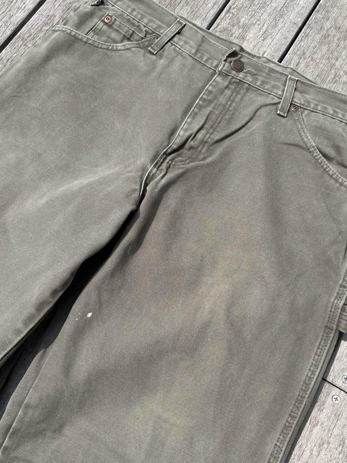 前面左腿、裾付近にペンキ飛び、背面右ツールポケット付近ダメージ有り。※画像参照