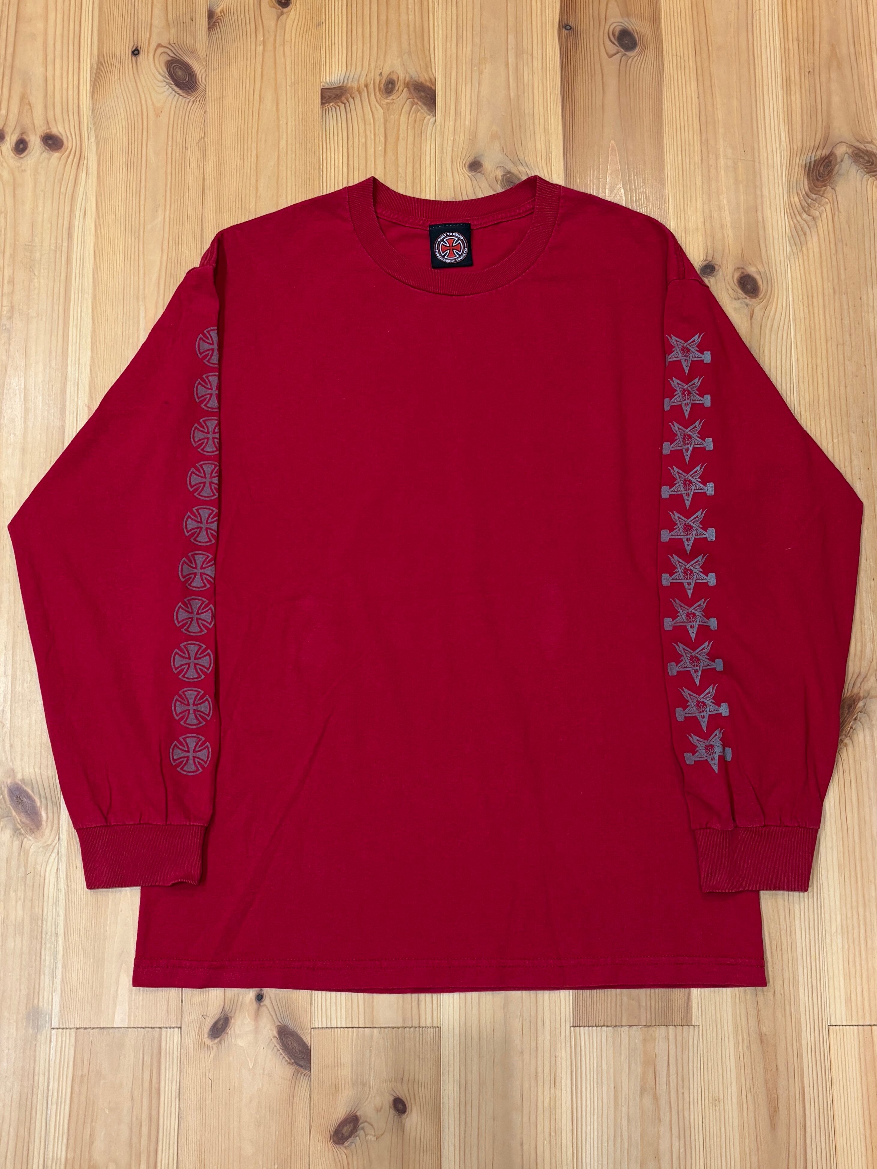 00's ”Independent ” L/S Iron Cross × Pentagram Cross Logo T-Shirt / インディペンデント インディー スラッシャー 長袖Tシャツ ロンT オールドスケート 古着 ヴィンテージ | Good Slow Morning