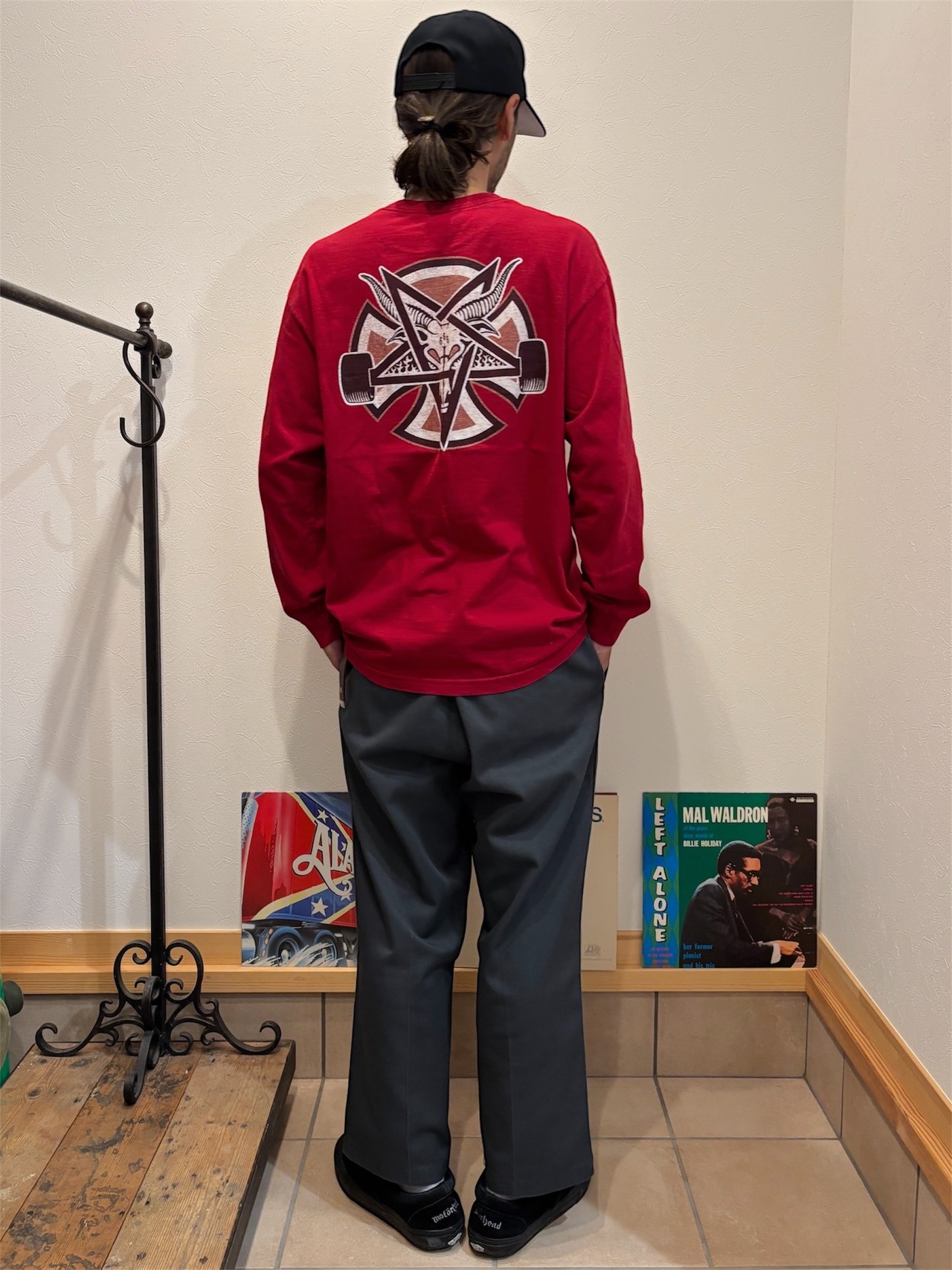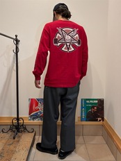 インディーの象徴であるアイアンクロスと、ペンタグラムクロスが袖とバックにプリントされています。