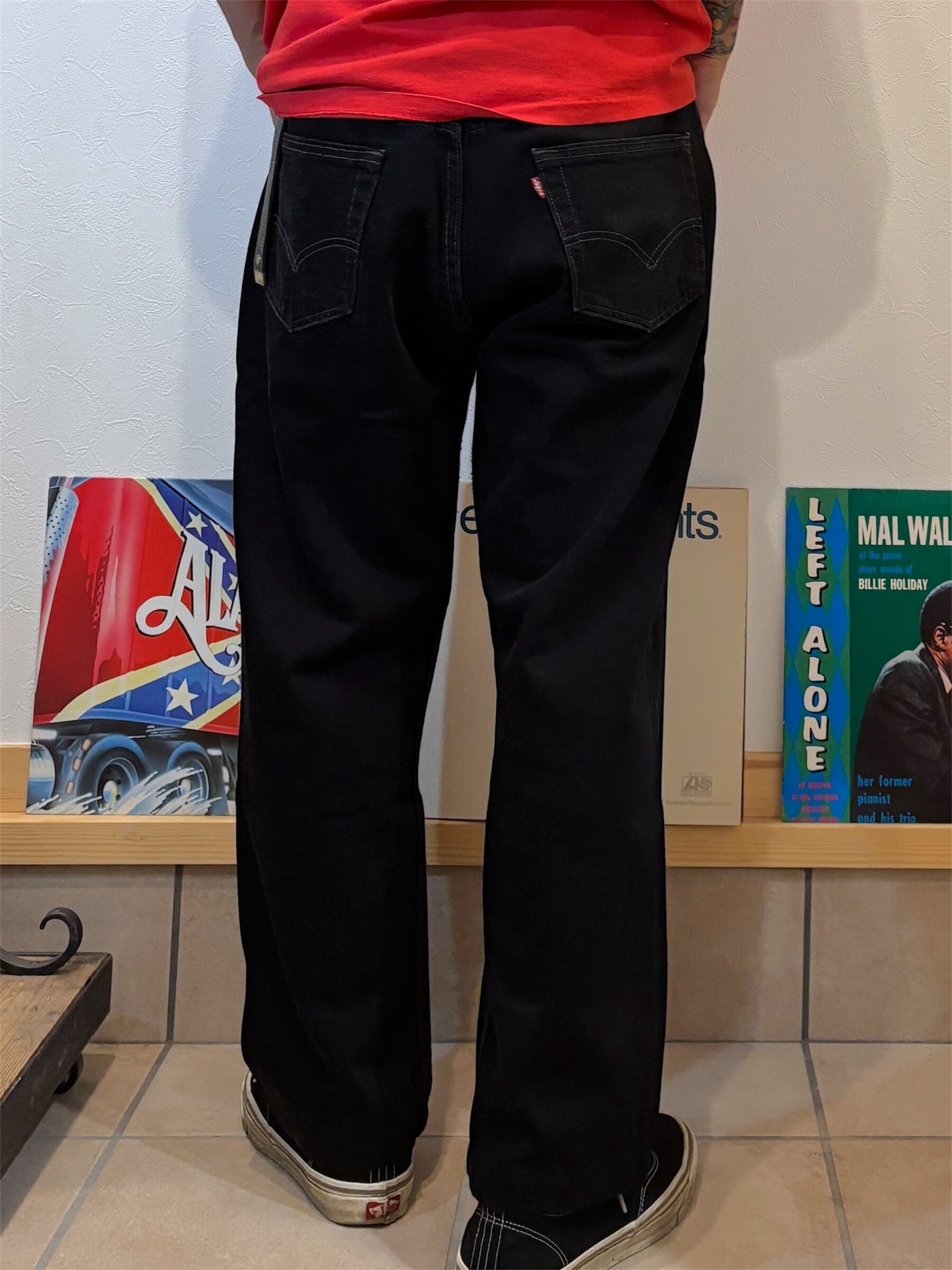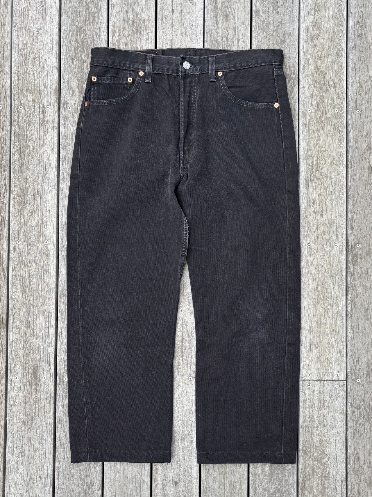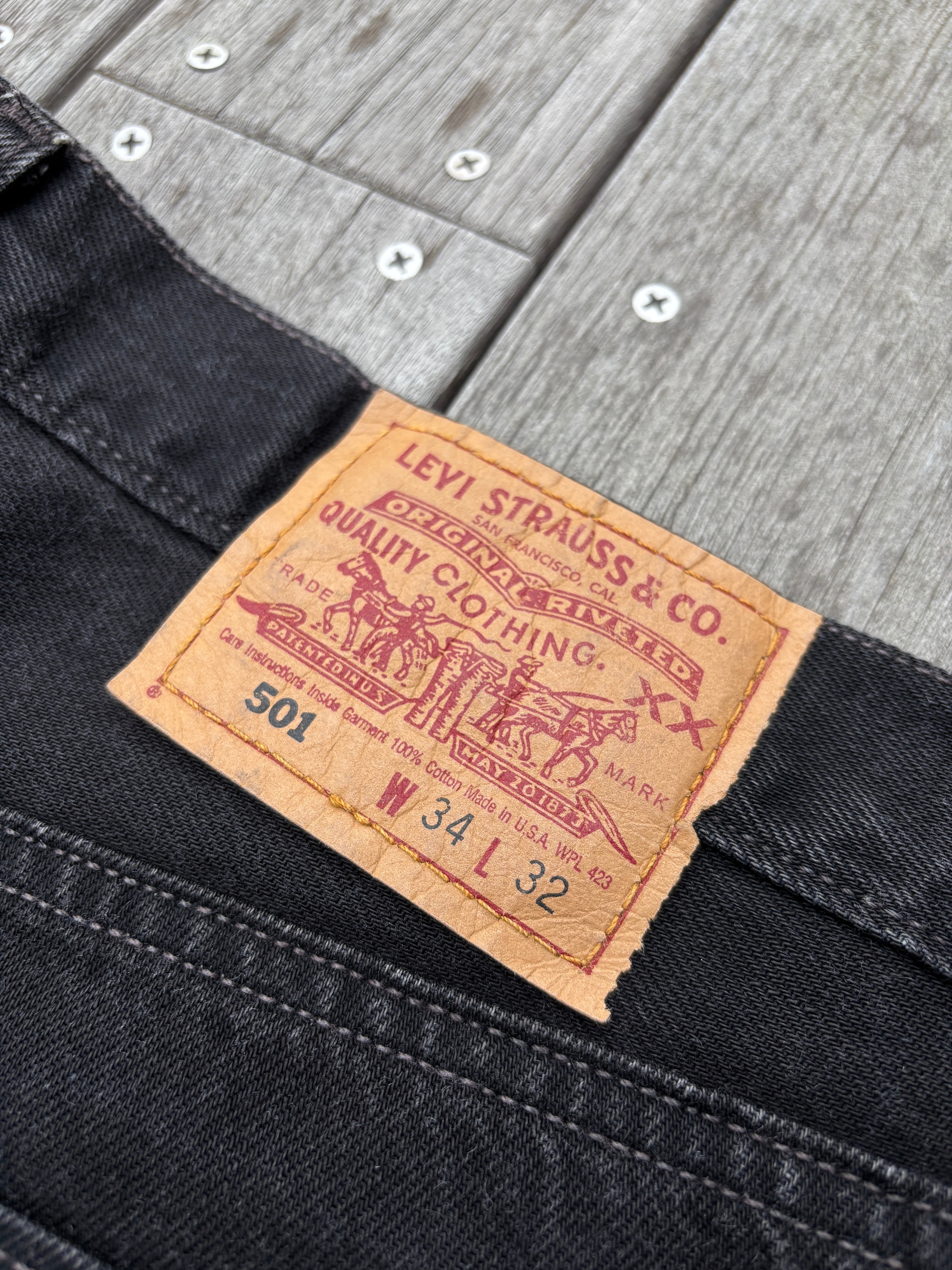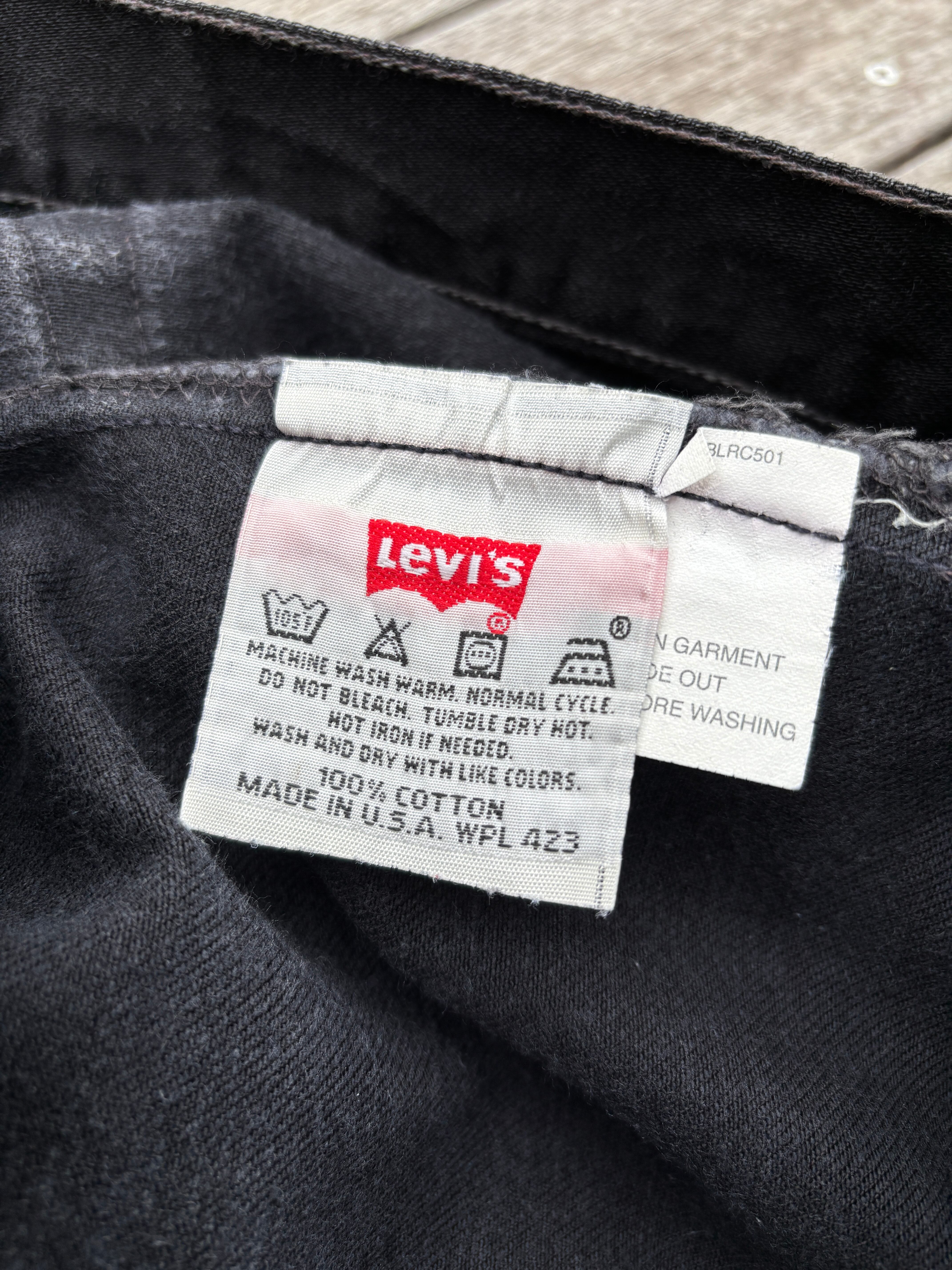 90年代のアメリカ製、リーバイスの501後染めブラックデニムジーンズです。