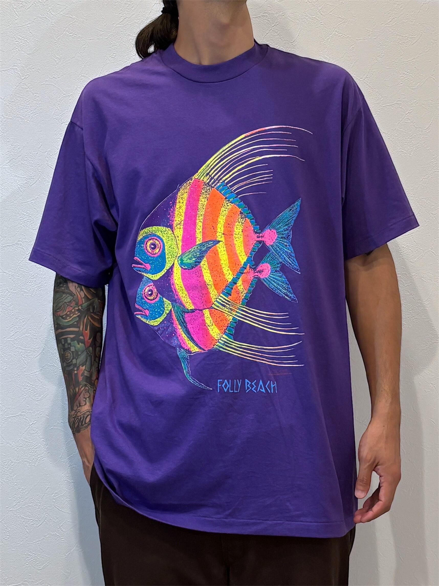 フロントにはトロピカルフィッシュのプリントと、Folly Beachのプリント。