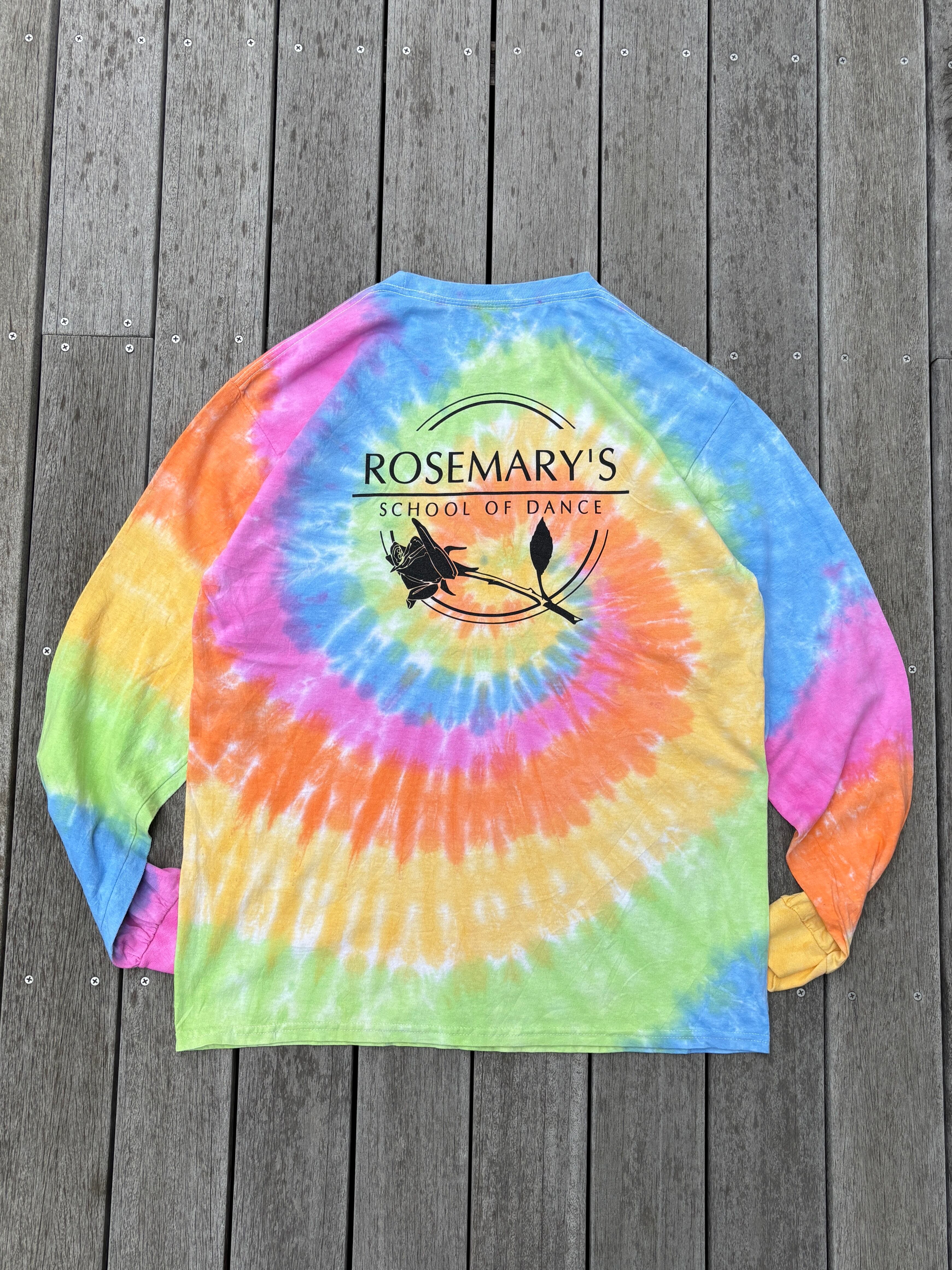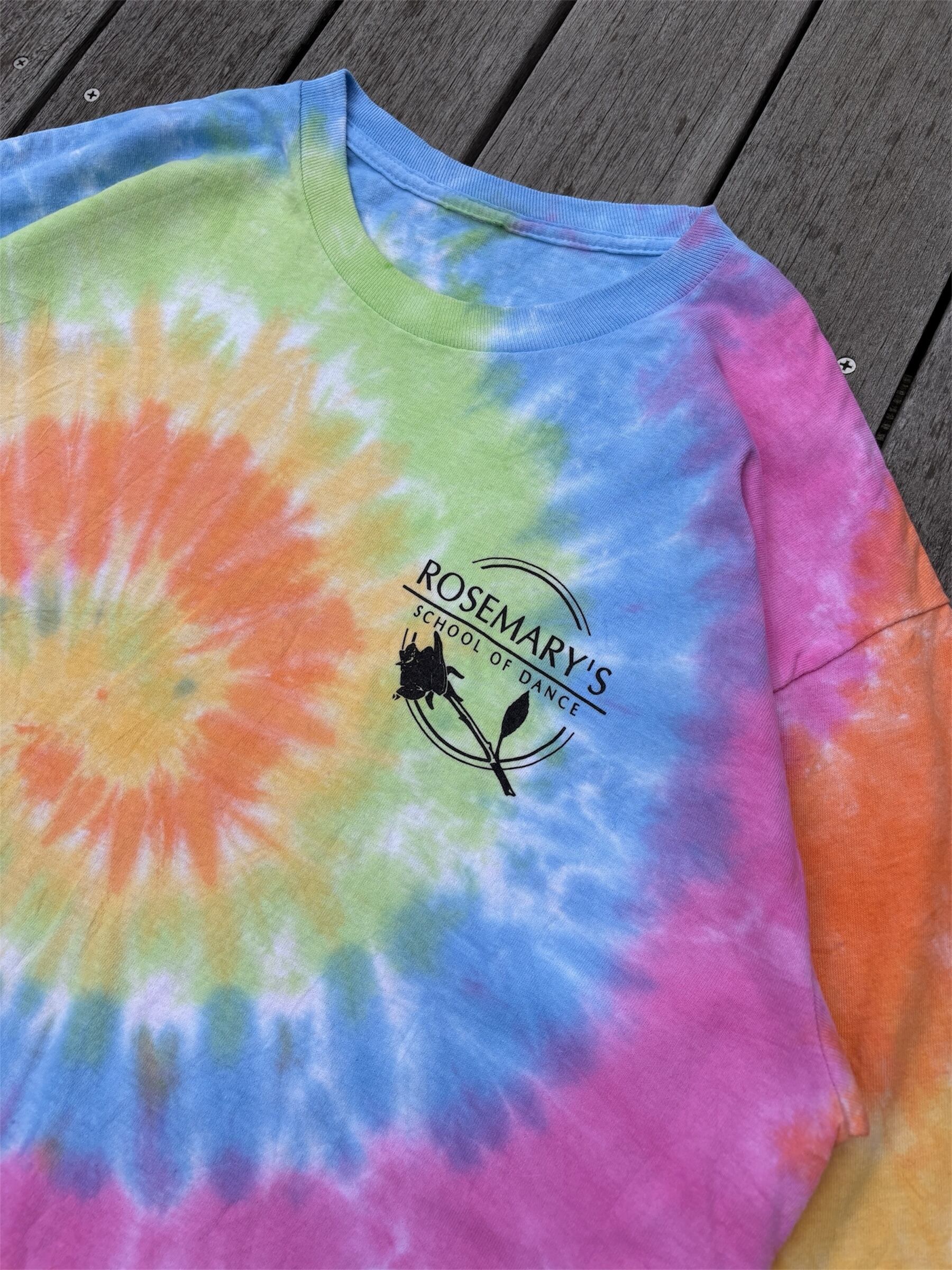 アメリカのダンススクール、「Rosemary's」のタイダイロンTです。
