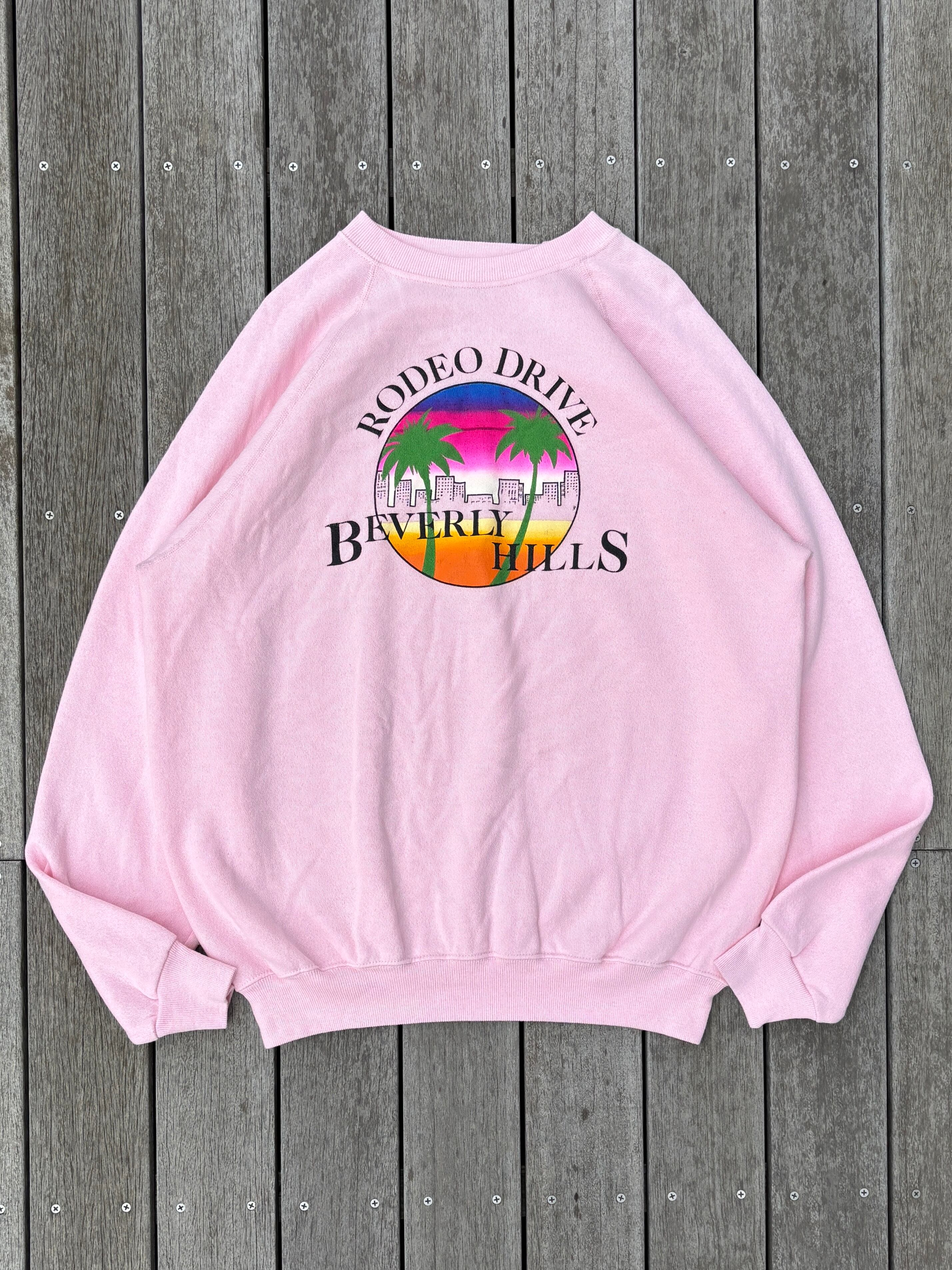 80's "Rodeo Drive Beverly Hills" Print Sweat XL / ロデオドライブ ビバリーヒルズ スウェット ピンク 古着 ヴィンテージ