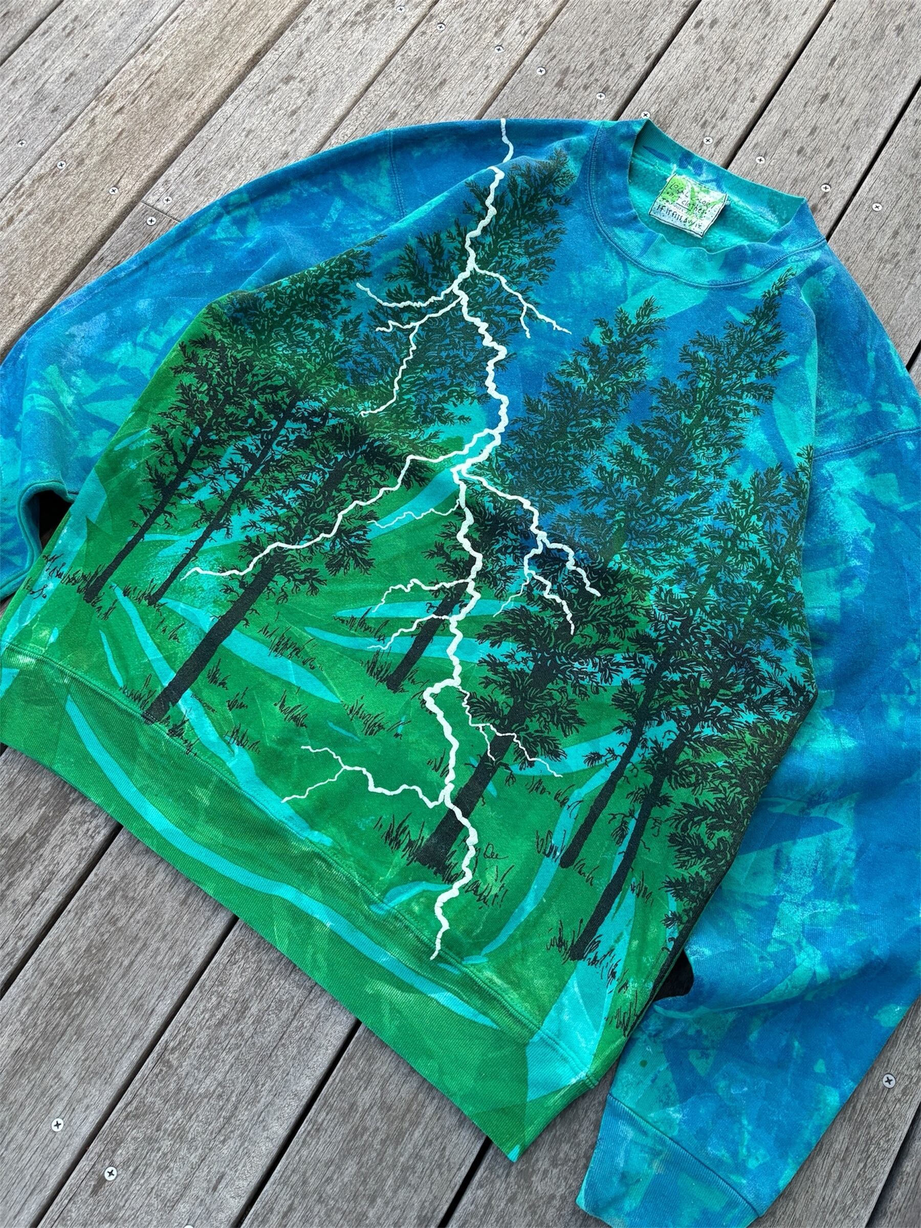 90's "Local Color" Rising Forest Sweat L / ローカルカラー スウェット 森 雷 手染め 古着 ヴィンテージ