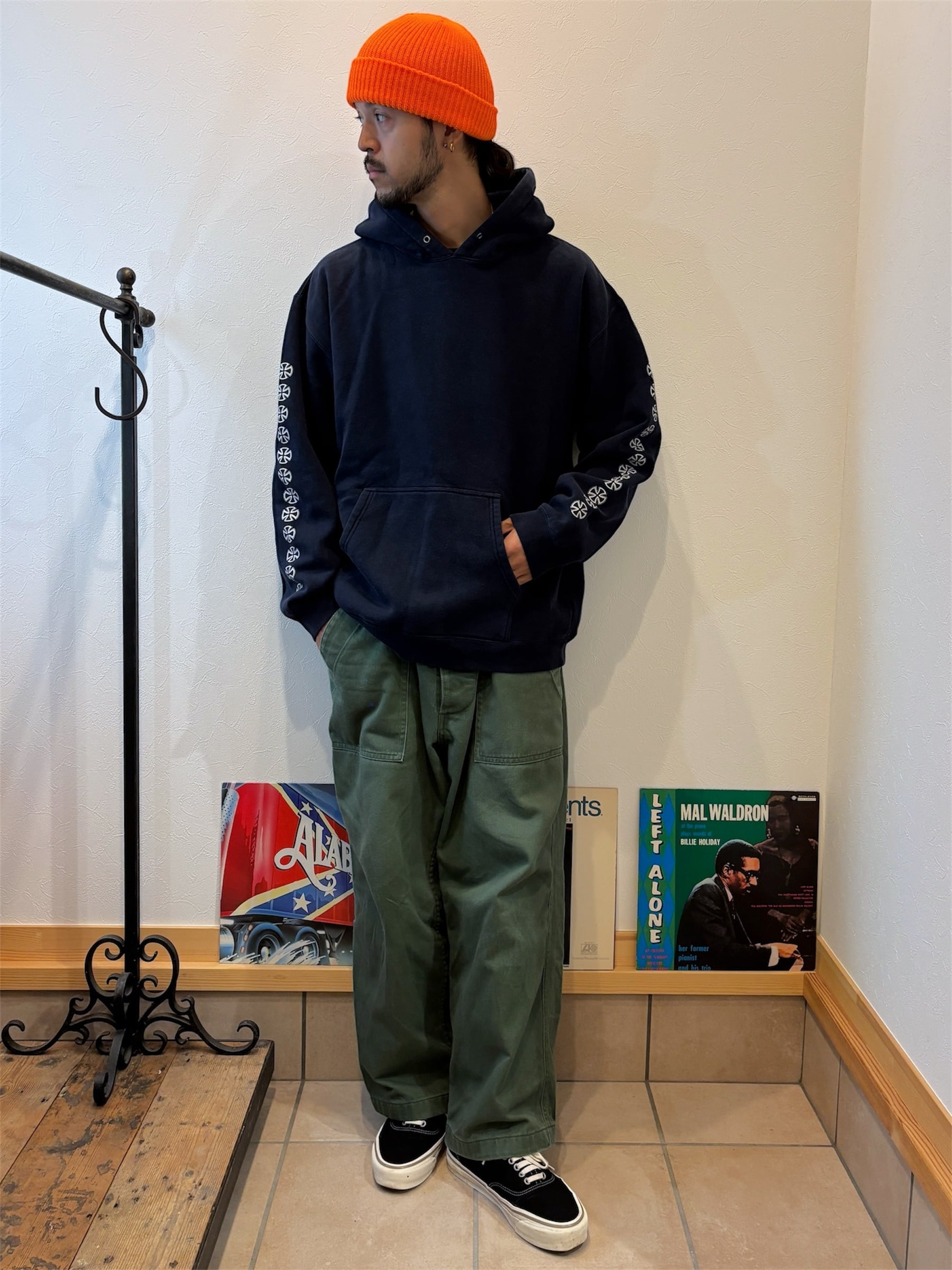 カラーはネイビーで、インディーの象徴であるアイアンクロス(メタルロゴ)が袖、バックに贅沢にプリントされています。