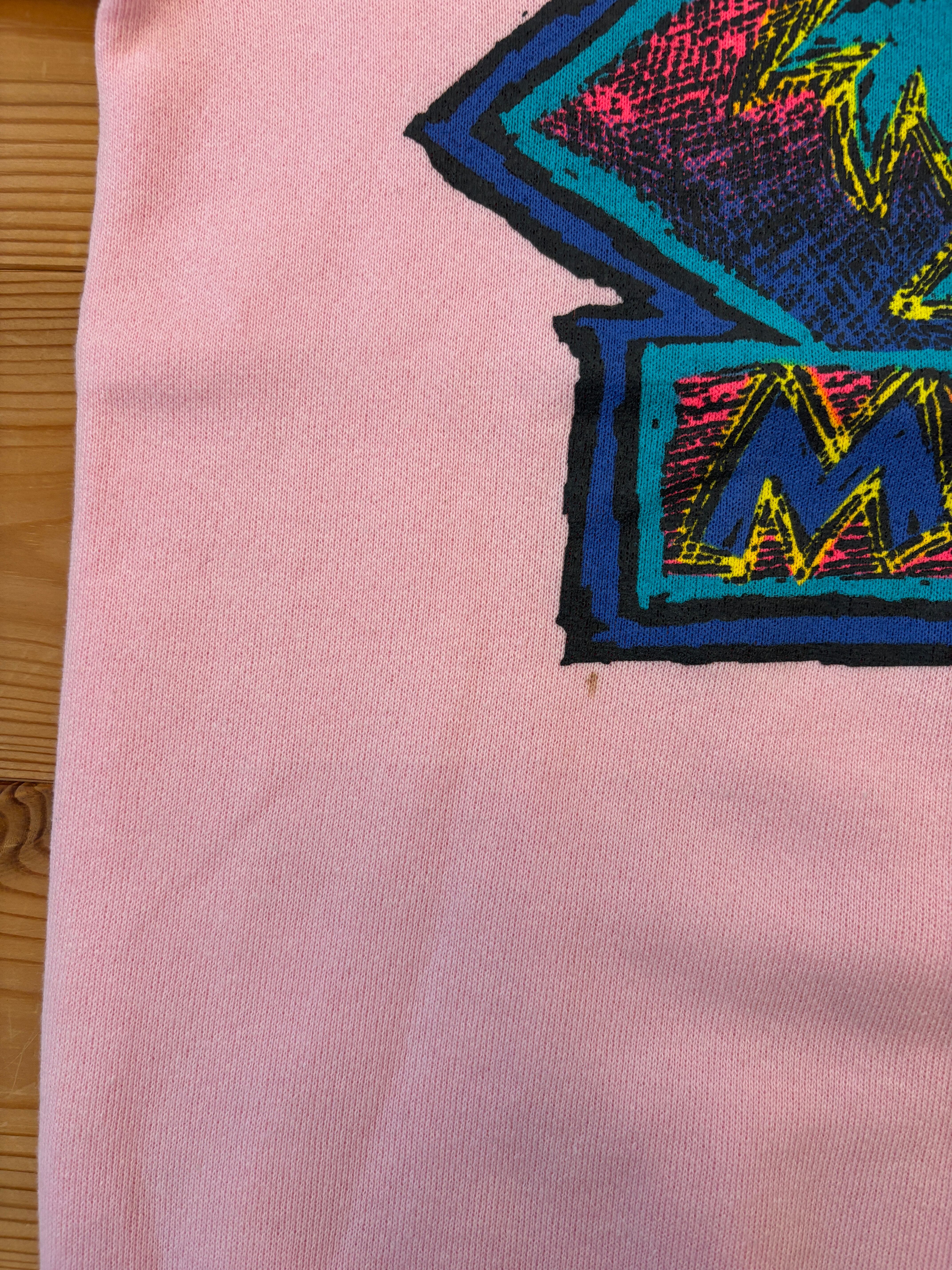カラーはライトピンクで、バックには80年代に流行したネオンカラーを使ったロゴプリント。