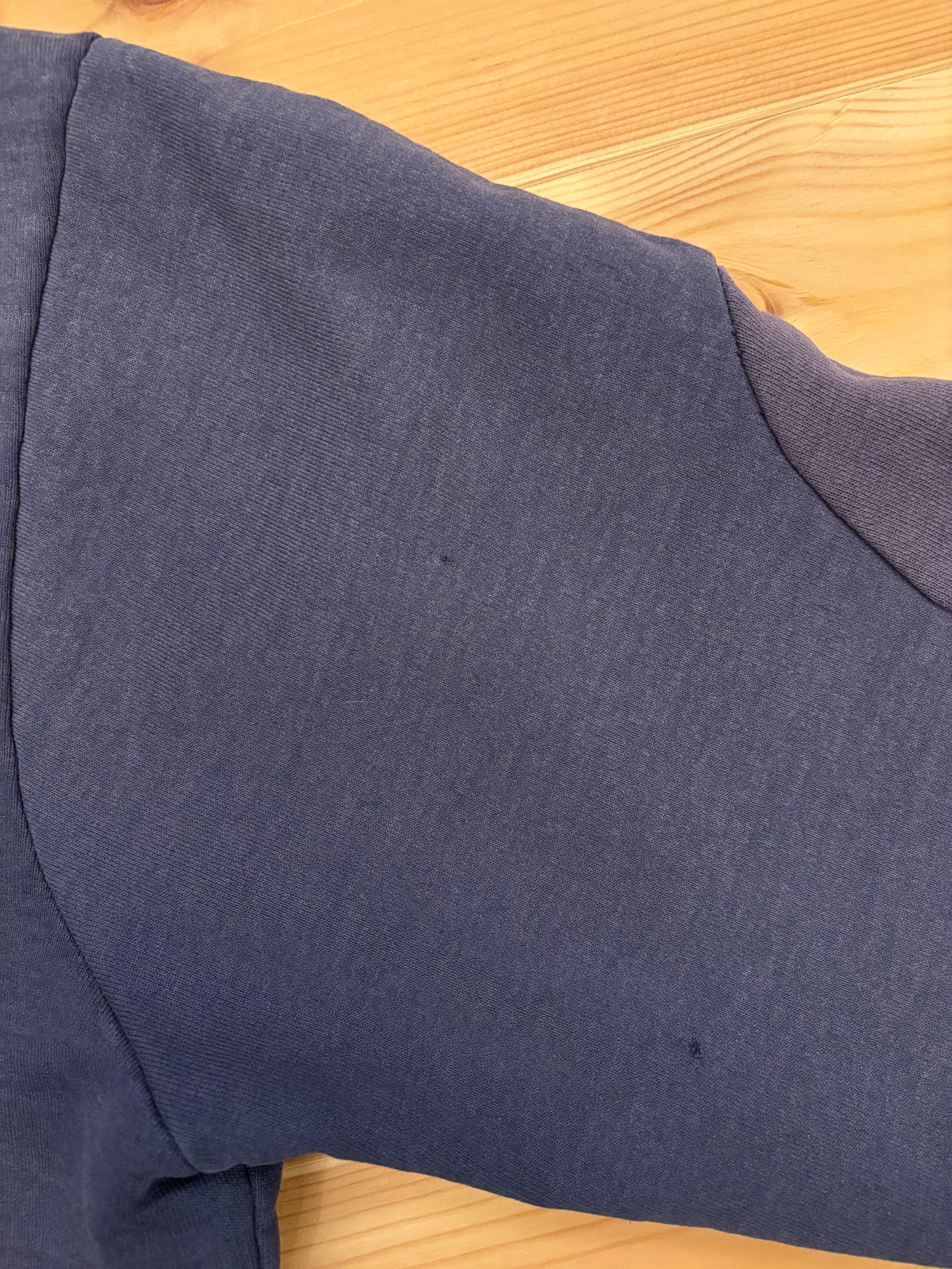 品質表示タグ擦れ、右身頃にシミ、左ポケットにシミ、背面右肩ダメージ、右袖に2箇所小穴有り。※画像参照。