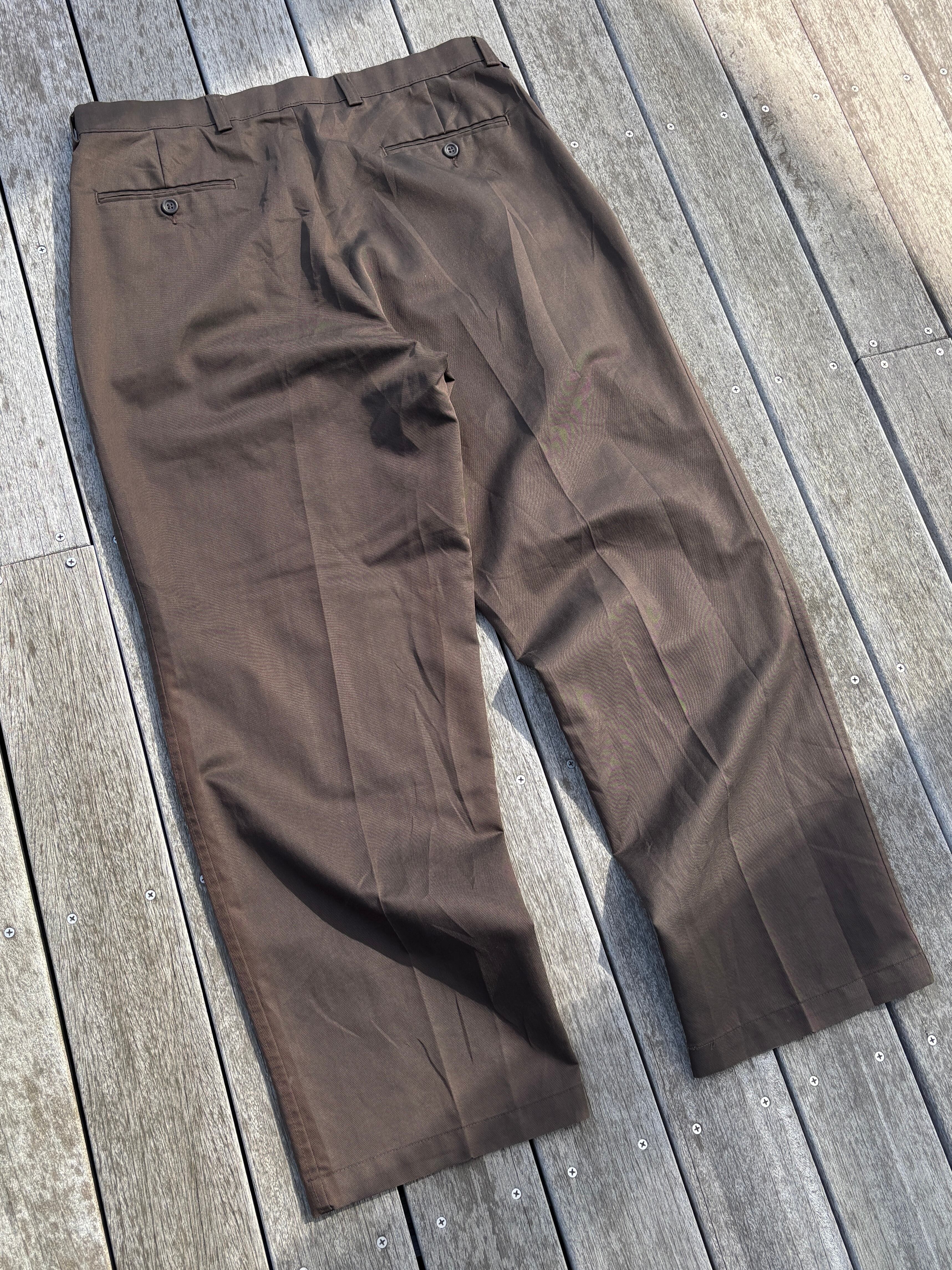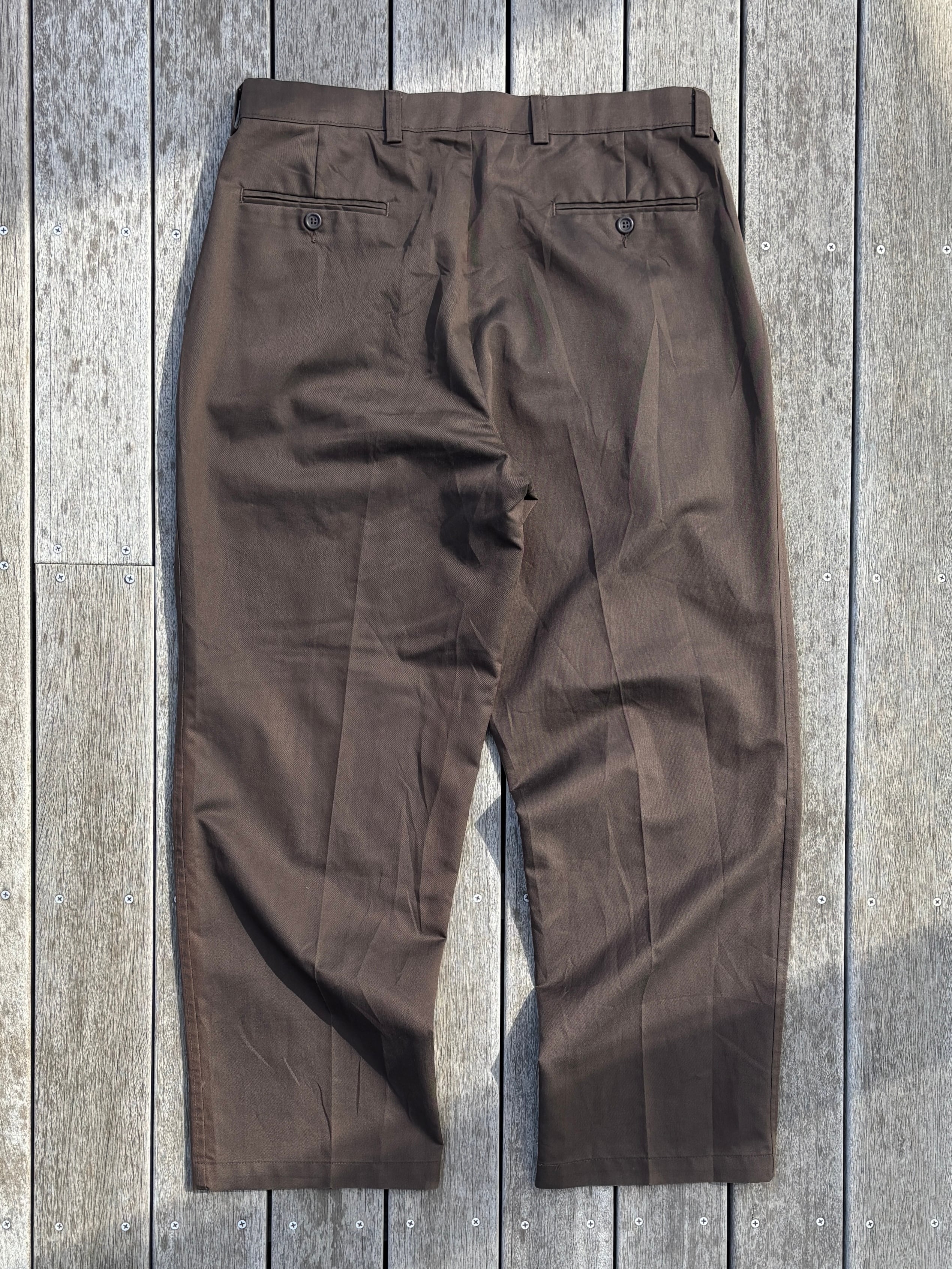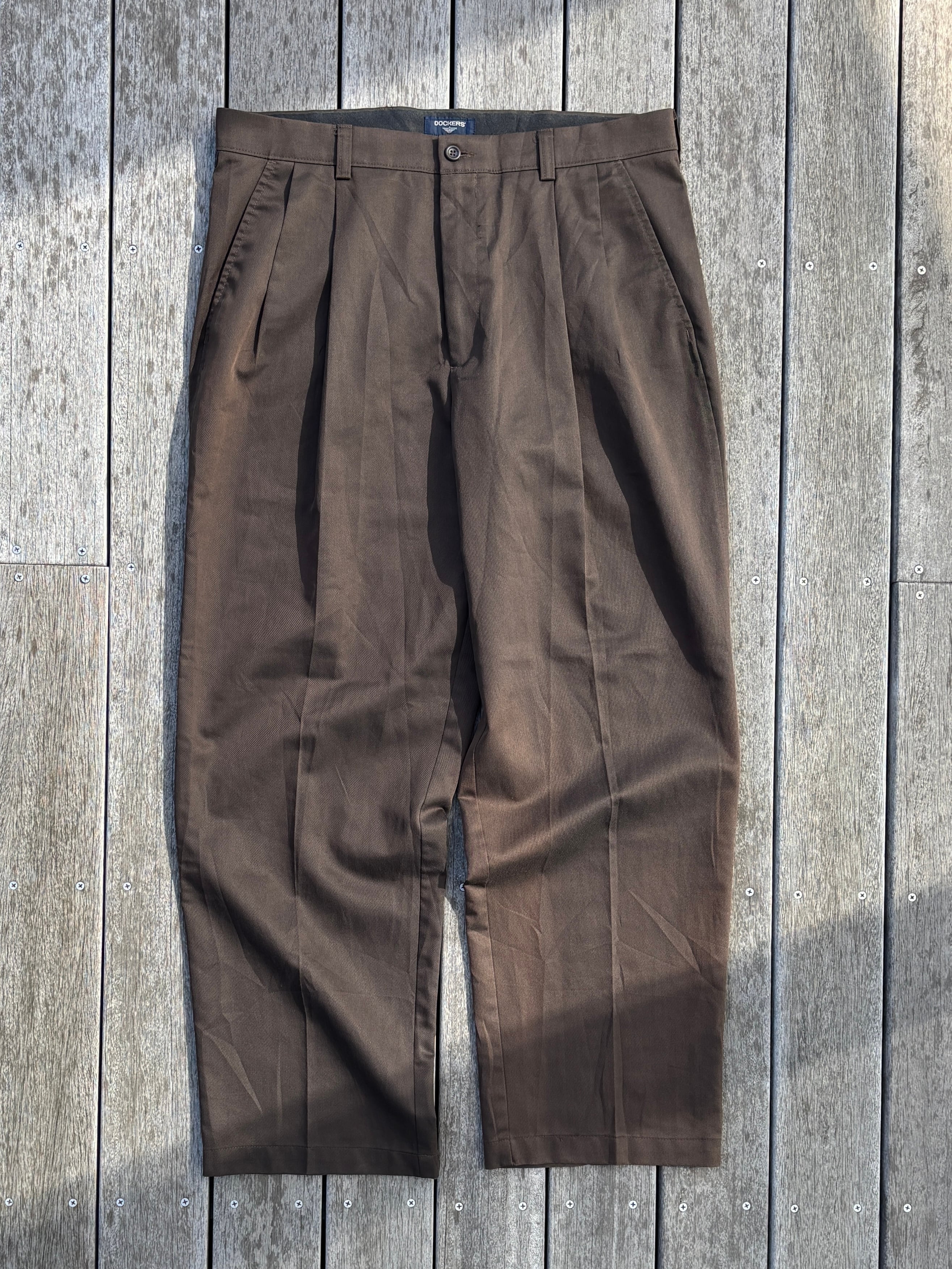 カラーはダークブラウンで、ゆったりとしたストレートシルエットが魅力の一本です。