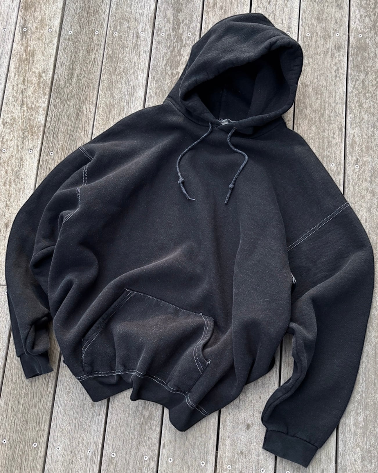 90's "Lee" Piece Dyeing Blank Hoodie Black XL相当 / リーボディ 後染め フーディ パーカー 無地 黒 古着 ヴィンテージ | Good Slow Morning