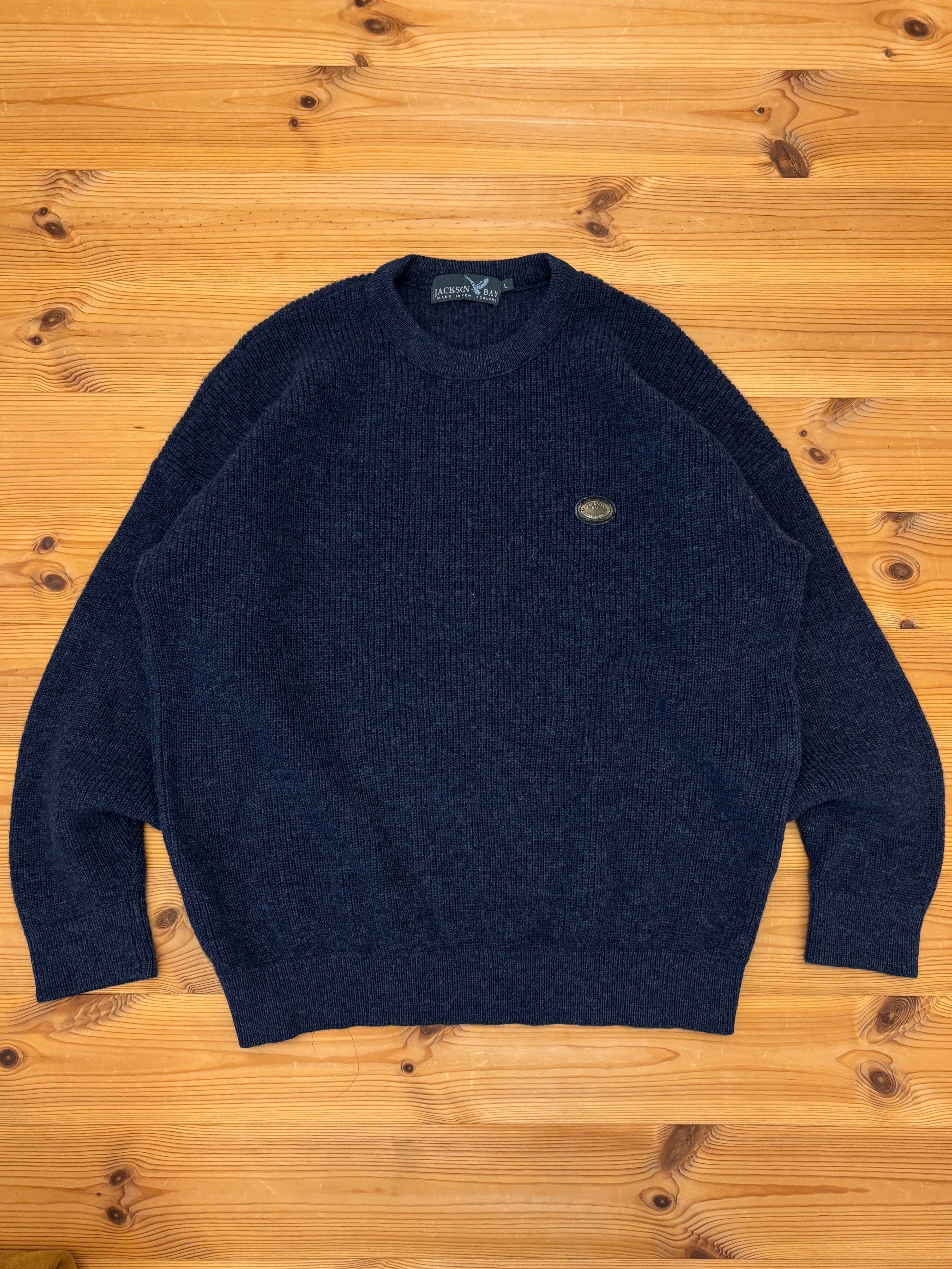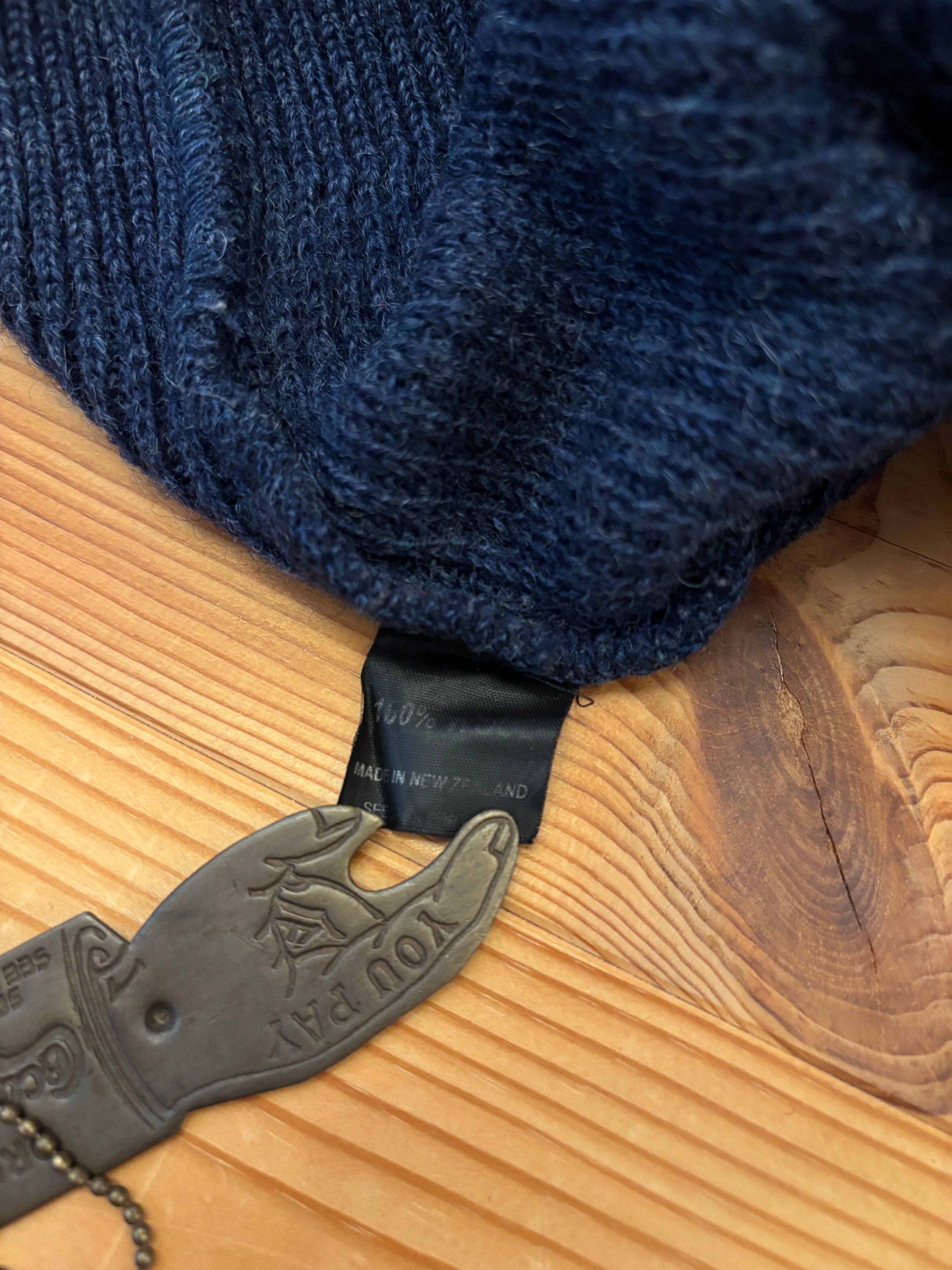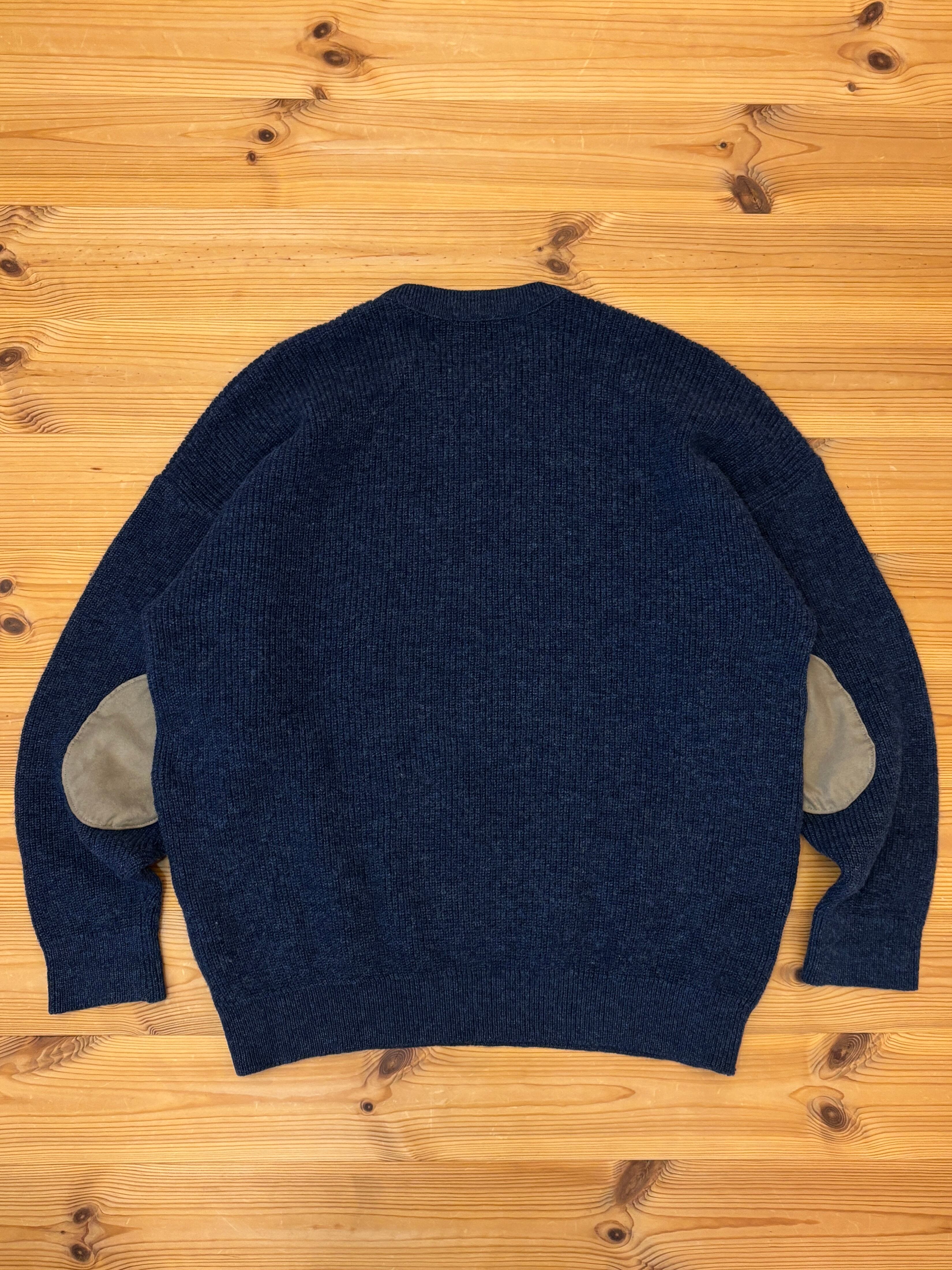 左胸に真鍮製のメタルプレート、肘にはエルボーパッチが付いていて、雰囲気の良いグッドレギュラーなニットです。