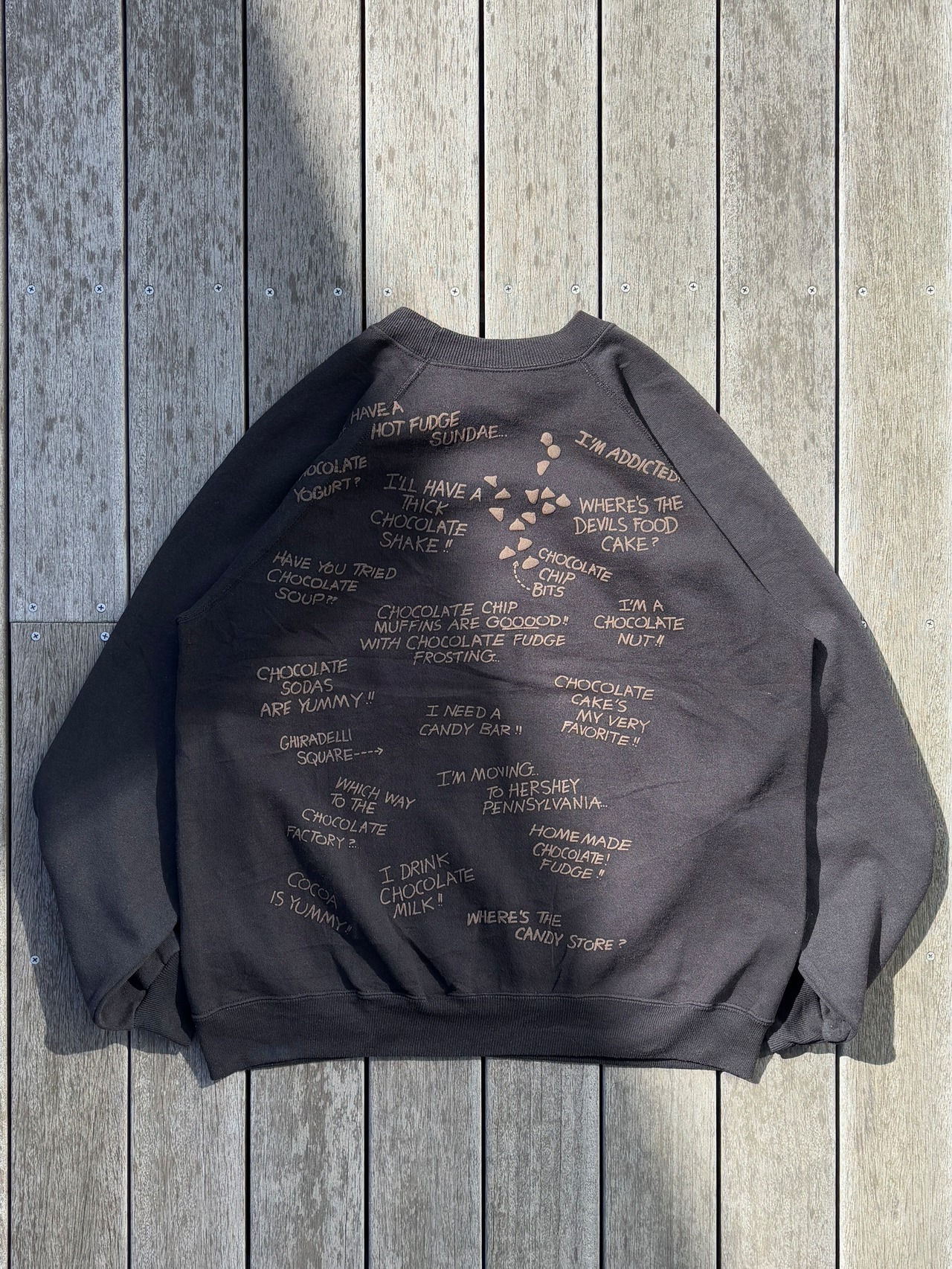 90's "Im a chocolate nut!!" All Over Print Sweat XL / チョコレートナッツ チョコレート チョコ 発泡プリント スウェット 古着 ヴィンテージ ビンテージ