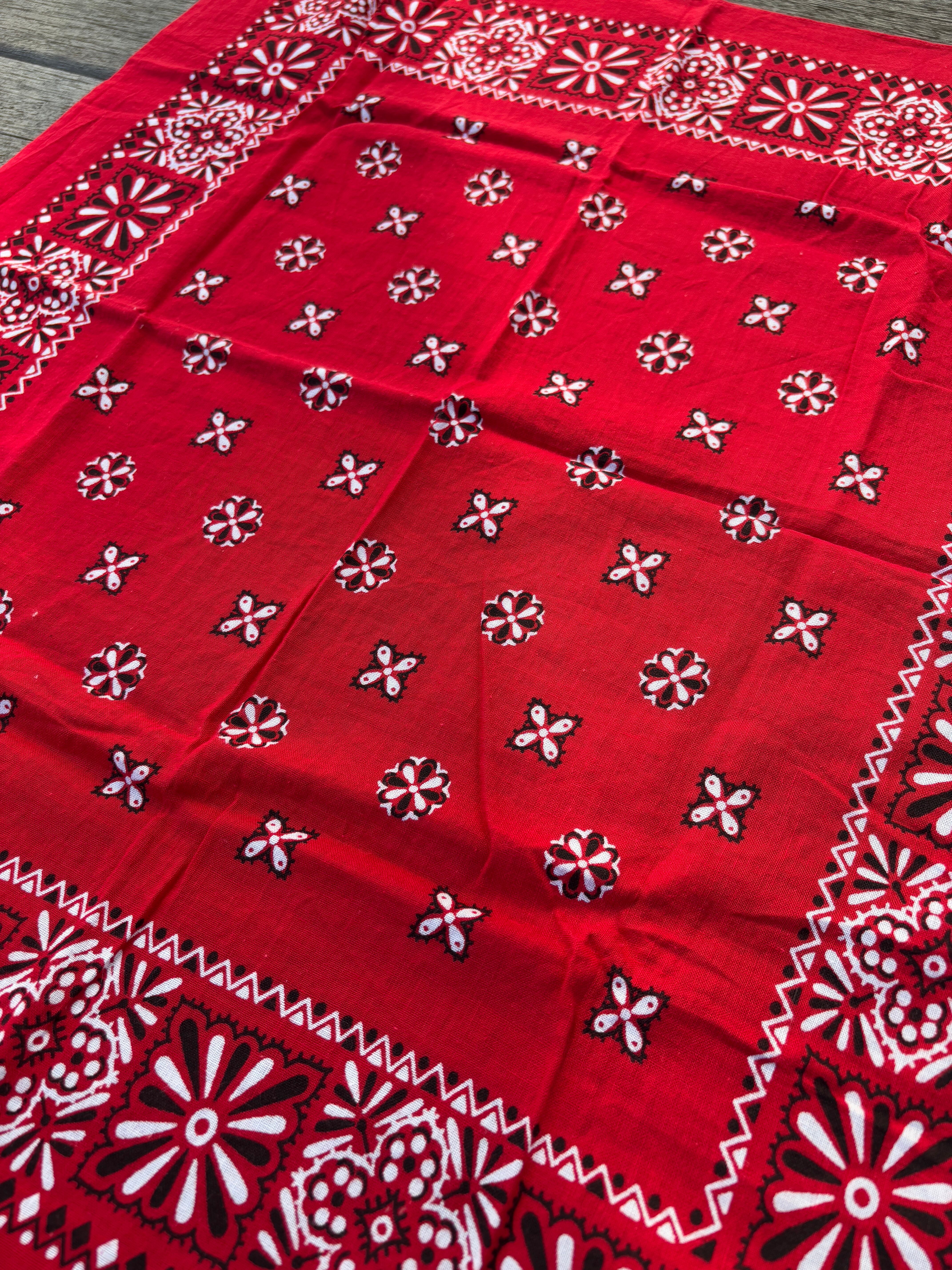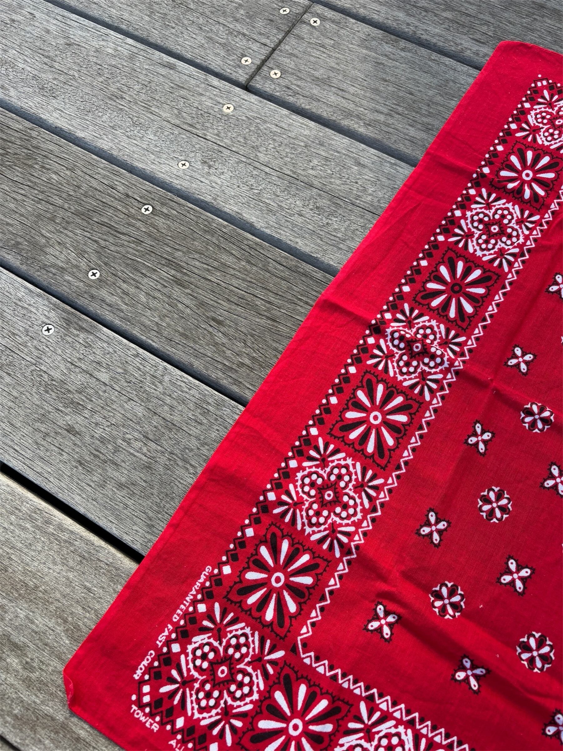 60's "Tower Guaranteed" Vintage Bandana Red FAST COLOR / バンダナ ファストカラー レッドカラー 耳付き 古着 ヴィンテージ | Good Slow Morning