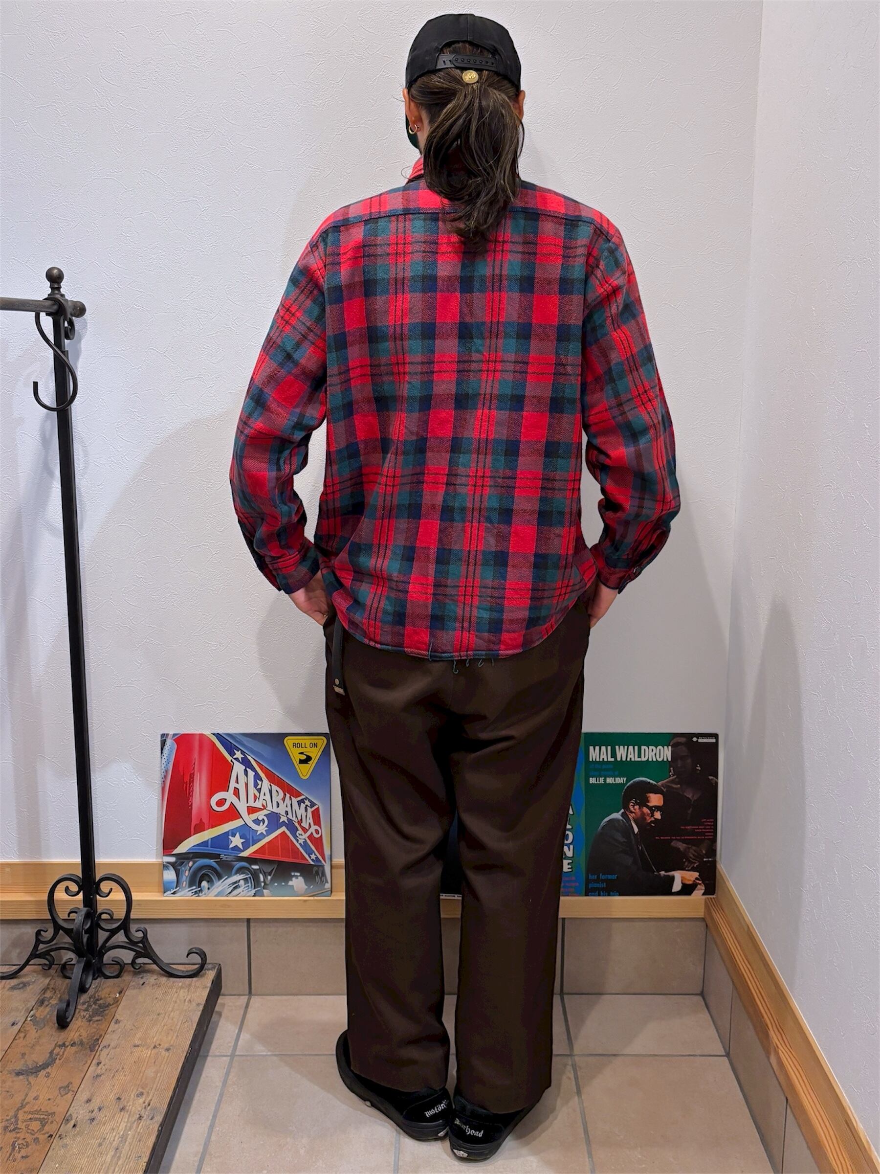 オーセンティックな赤ベースにネイビーとグリーンのチェックで、デニムとの相性は勿論、スラックスなどのハズシや、ジャケットなどの内側にもおすすめな一着です。