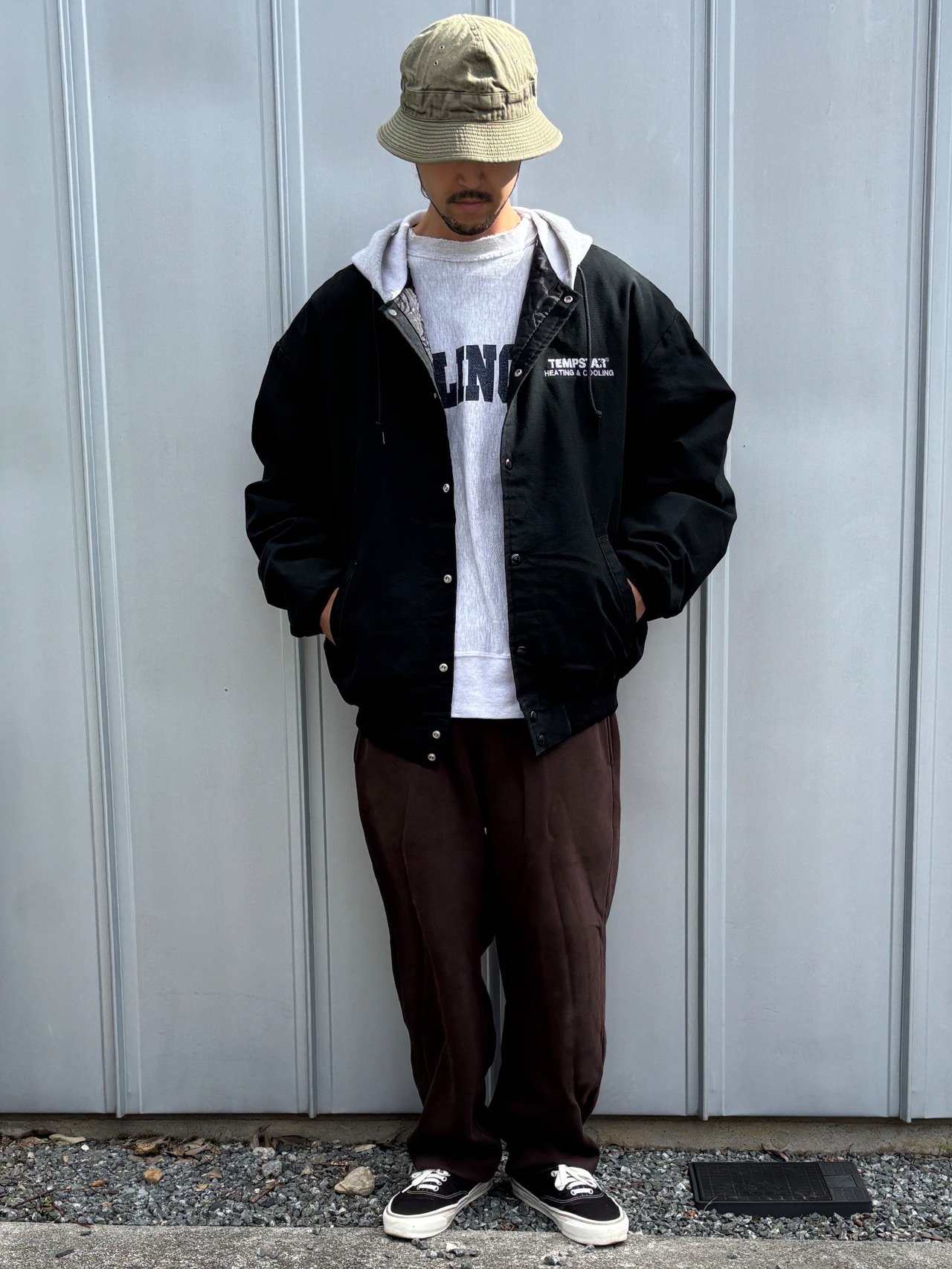 企業の刺繍が施されていて、様々なスタイリングに落とし込めるアイテムです。