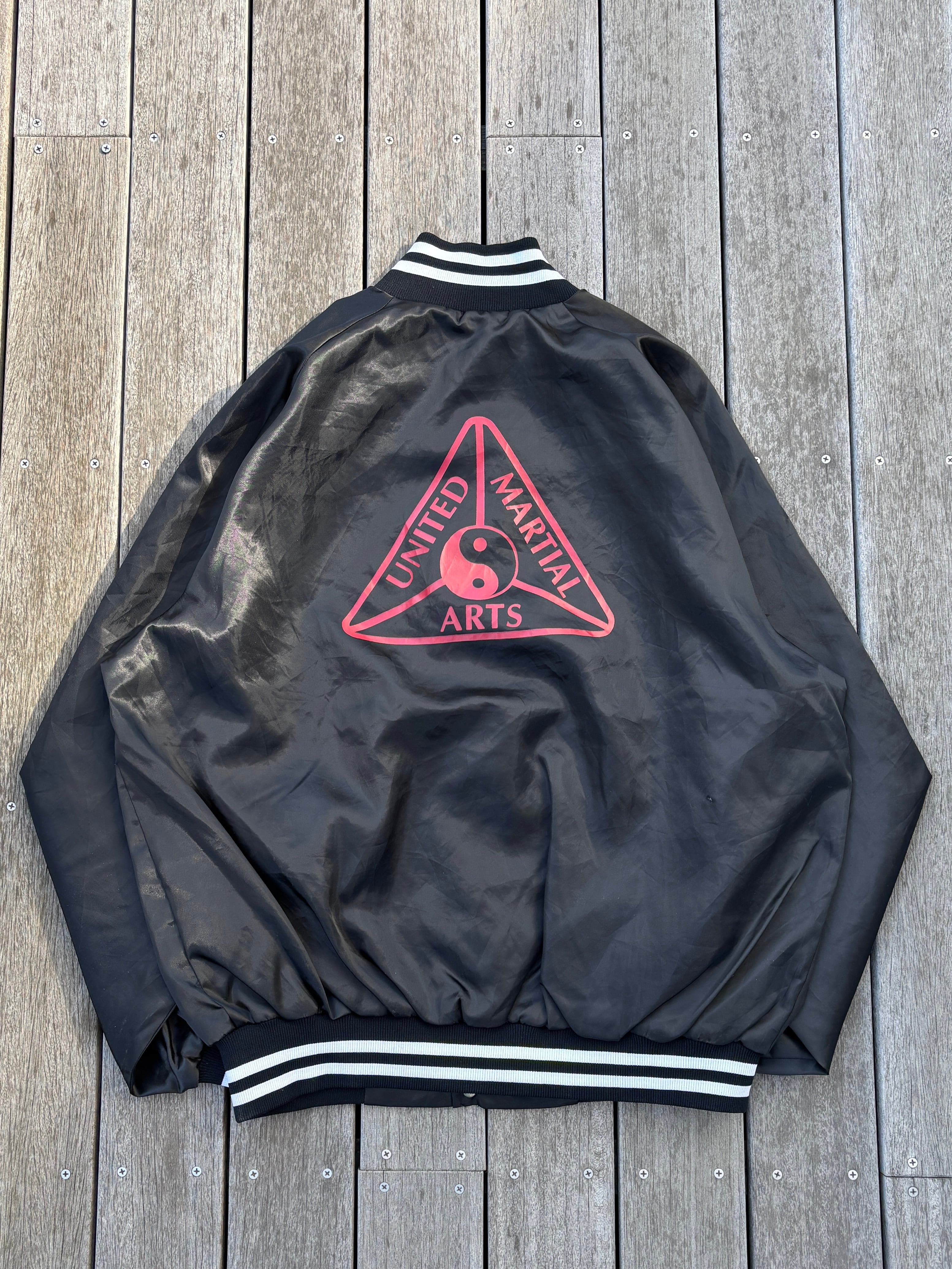 90's "United Martial Arts" Nylon Varsity Jacket XL / ナイロン スタジャン ジャンパー 古着 ヴィンテージ