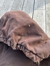 フロントに2つポケットが付いていて、左ポケットにはカーハートの革パッチが付いています。