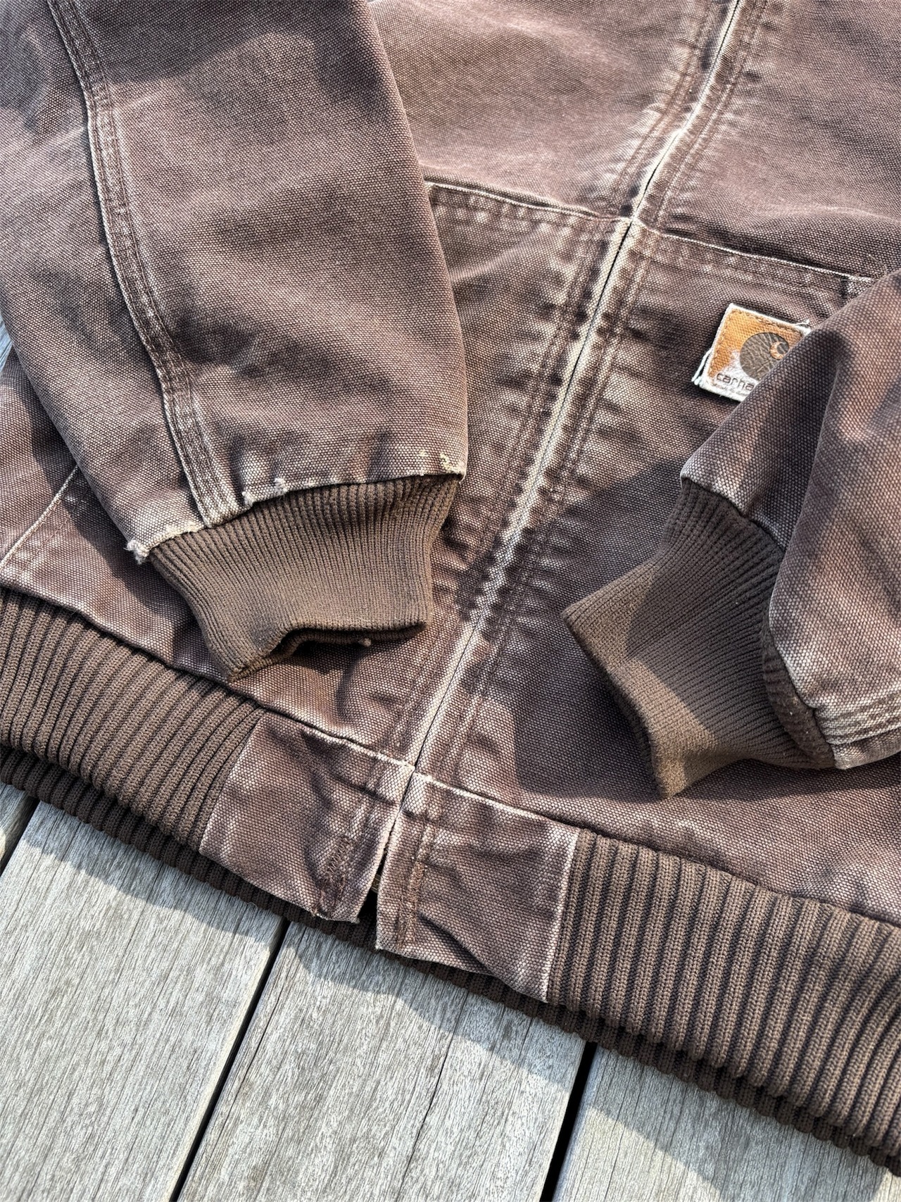 袖と裾にはリブが付いていて、袖部分のステッチは、トリプルステッチになっています。
