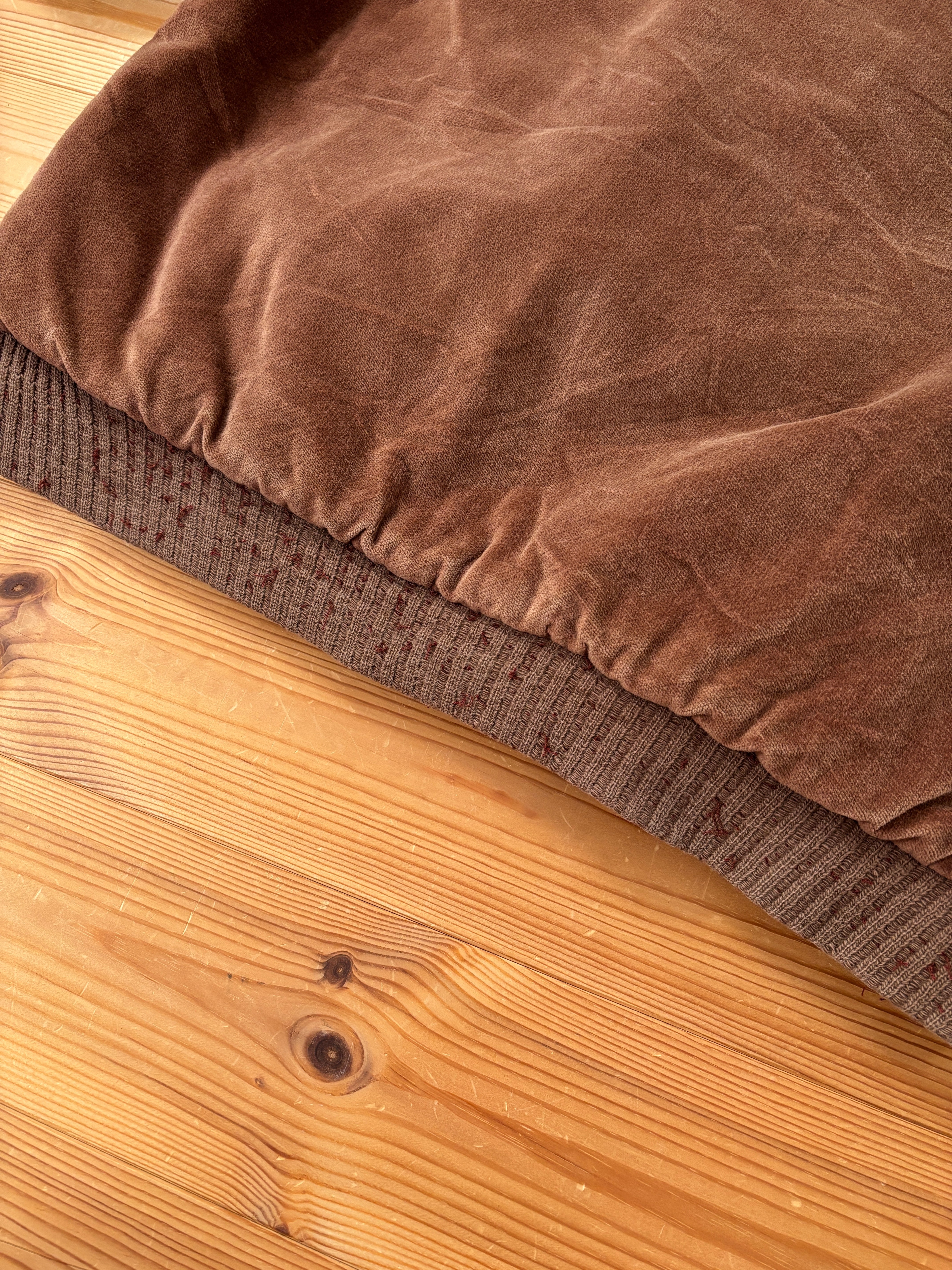 ベロアパーカーは小さいサイズが多い中、L相当のサイズ感で身幅広めの着丈短め。
