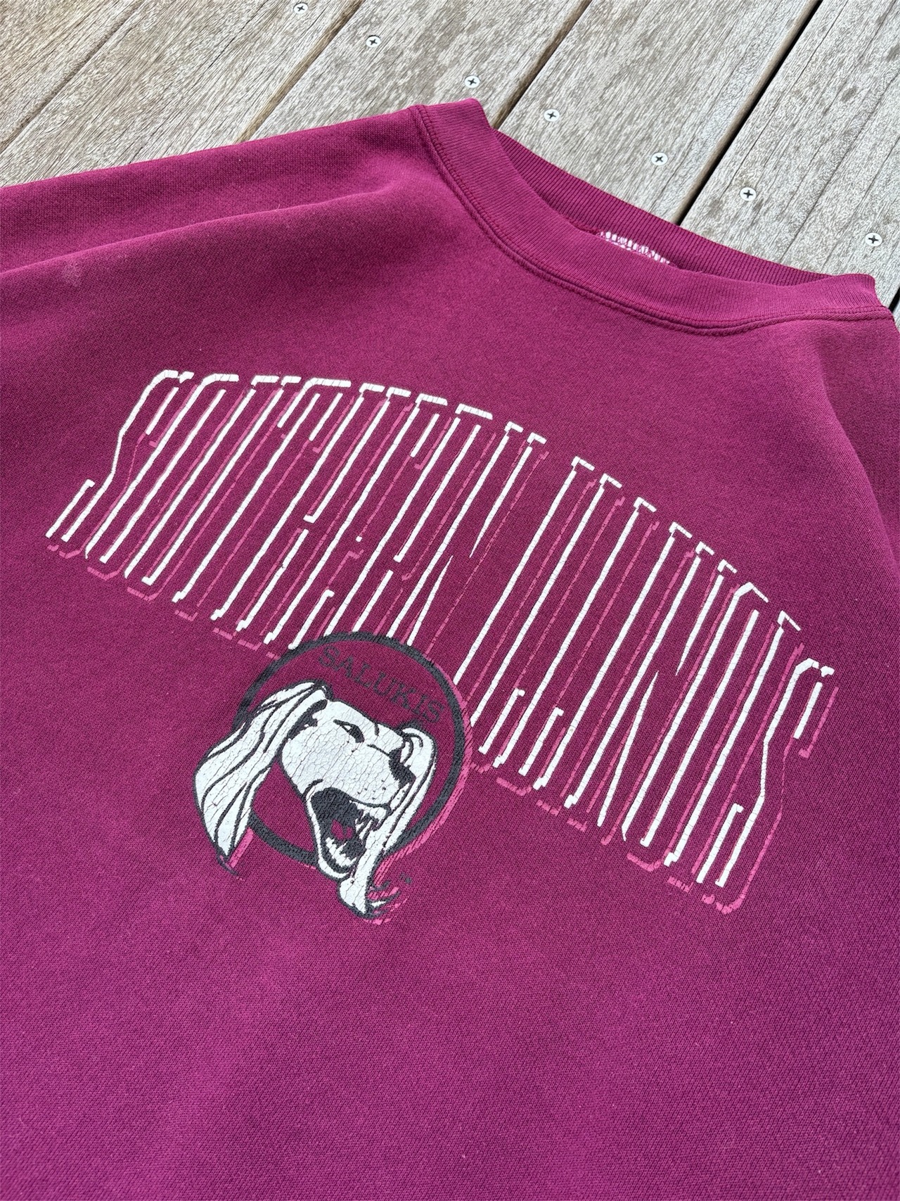 アメリカ、イリノイ州にあるサザンイリノイ大学のスポーツチーム「SALUKIS」のプリントスウェットです。