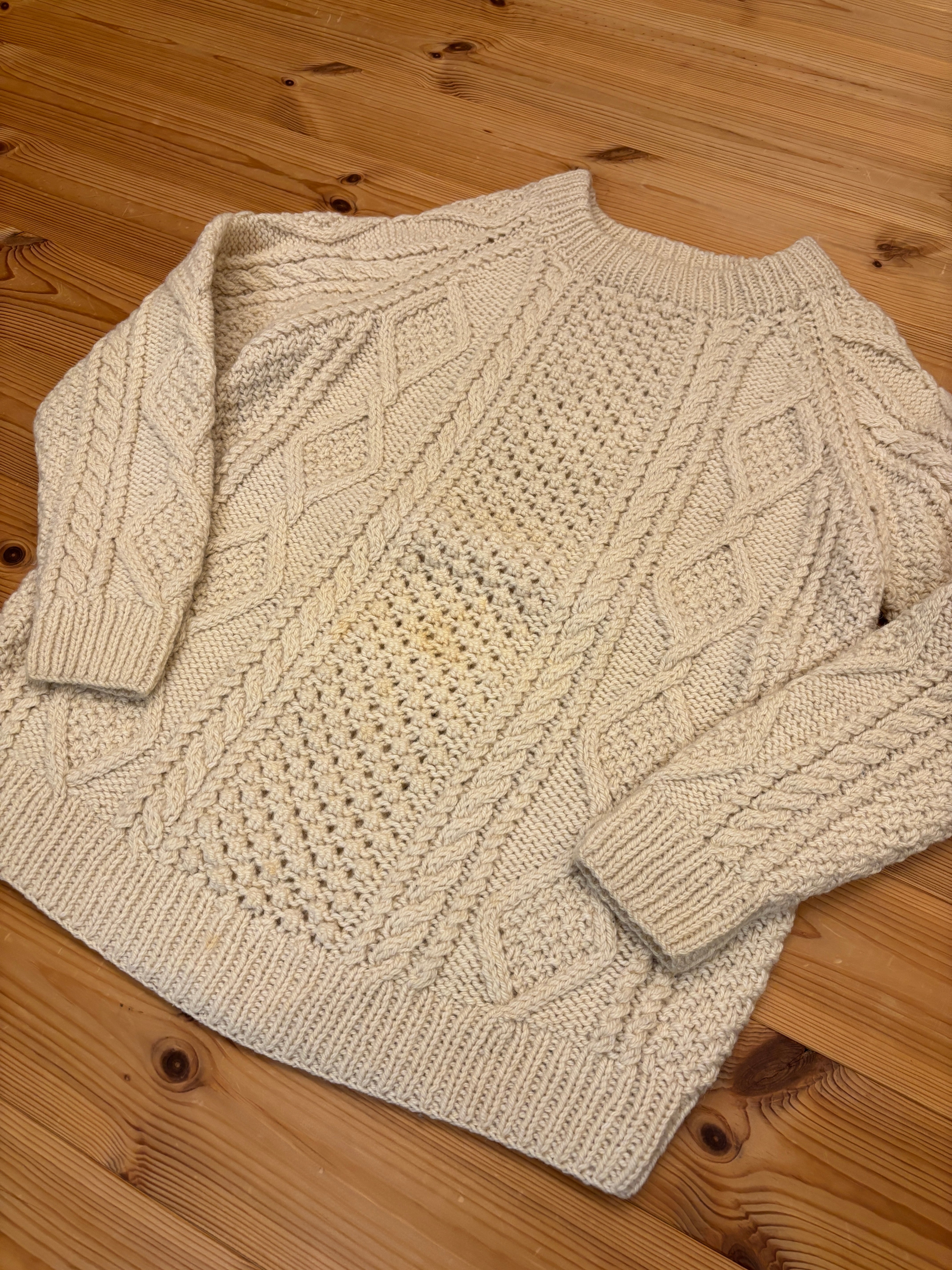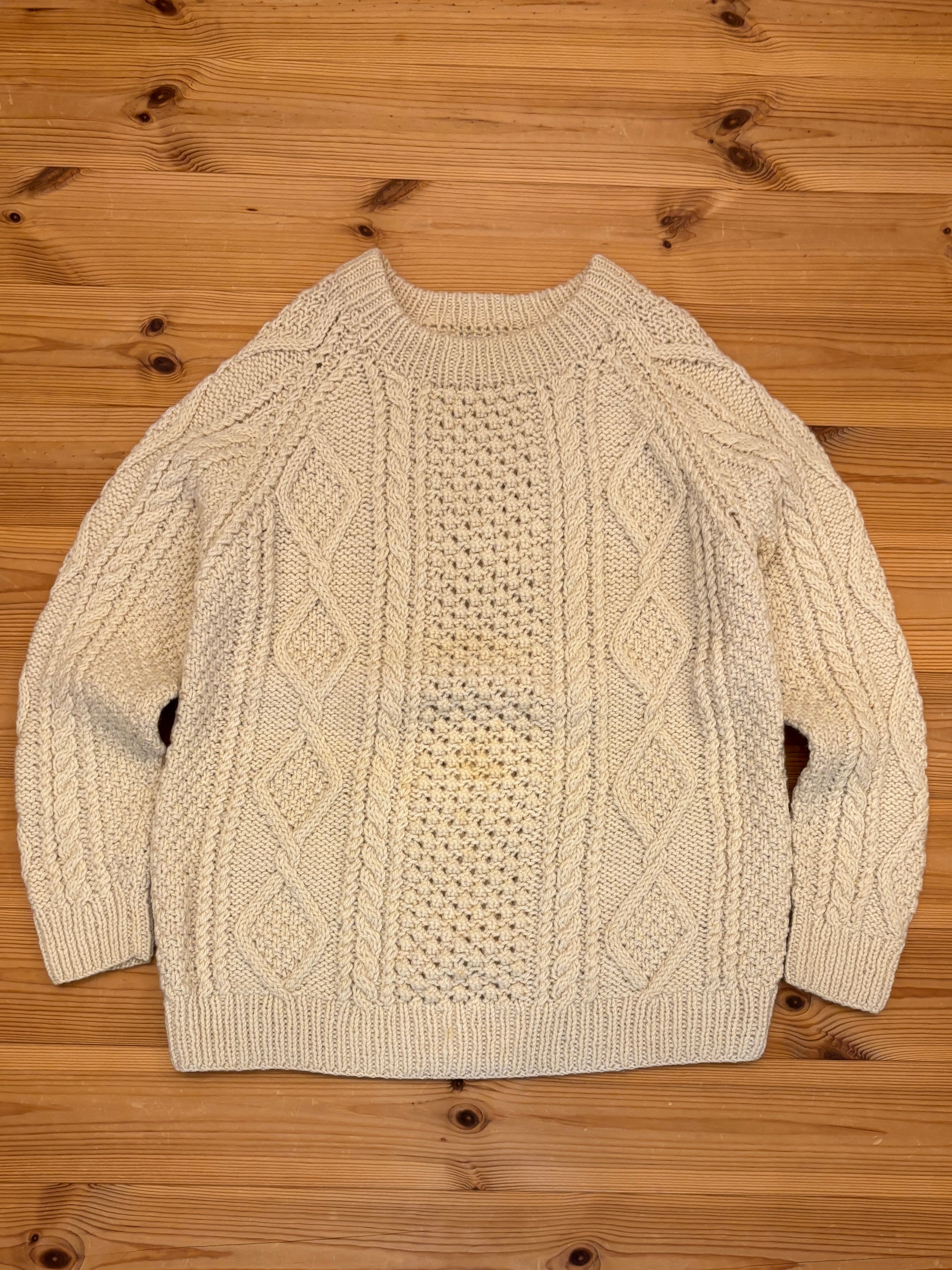 80's "Edinburgh Woolen Mill" Fisherman Sweater L相当 / フィッシャーマンズセーター ウールニット 古着 ヴィンテージ | Good Slow Morning
