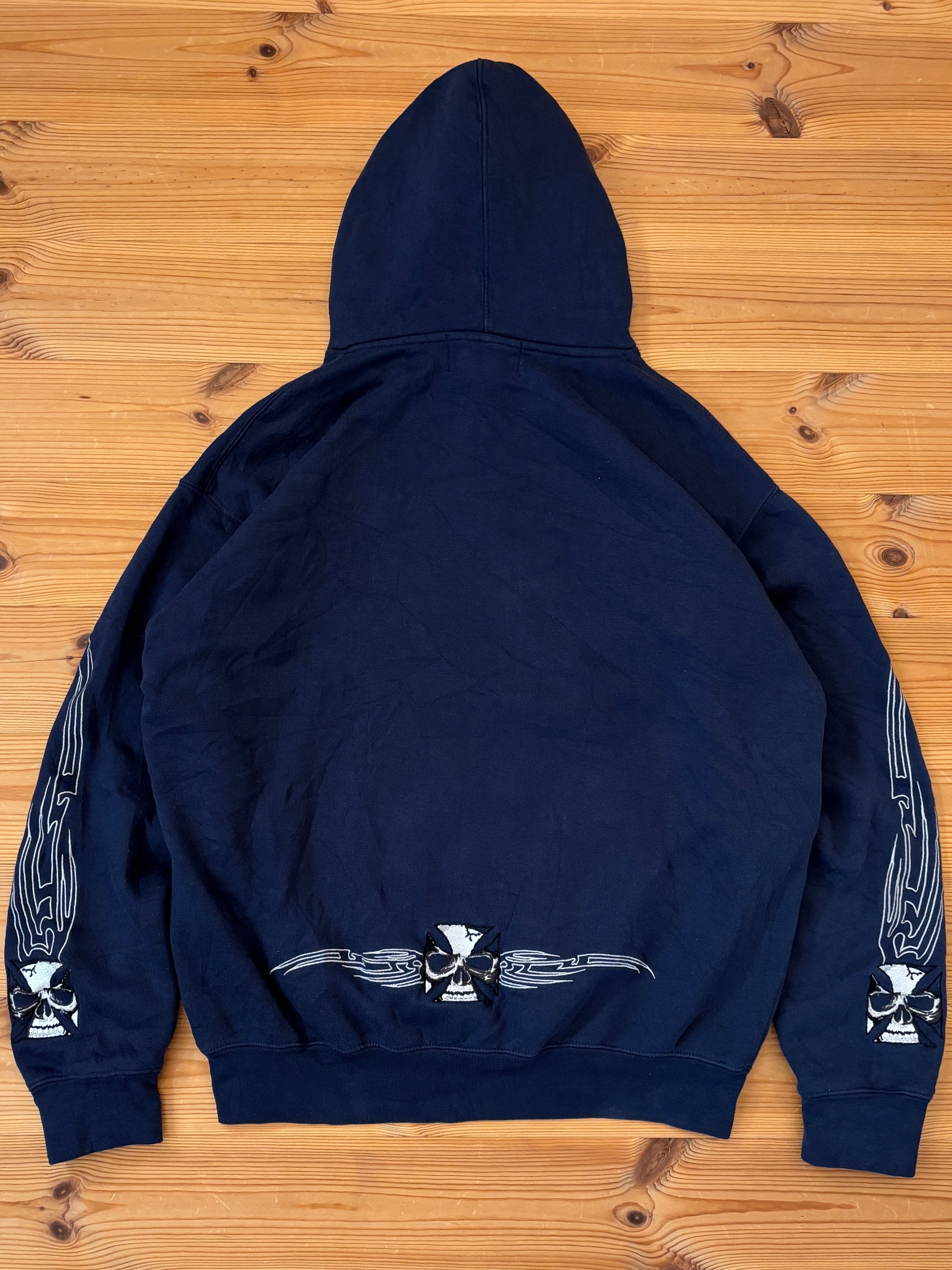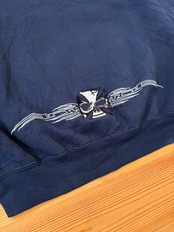フロント、袖、バック裾に刺繍でアイアンクロススカルが入る豪華な一着です。