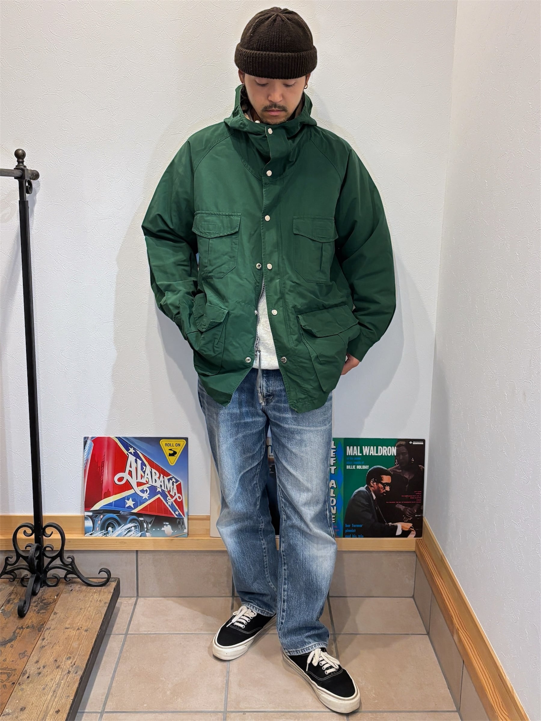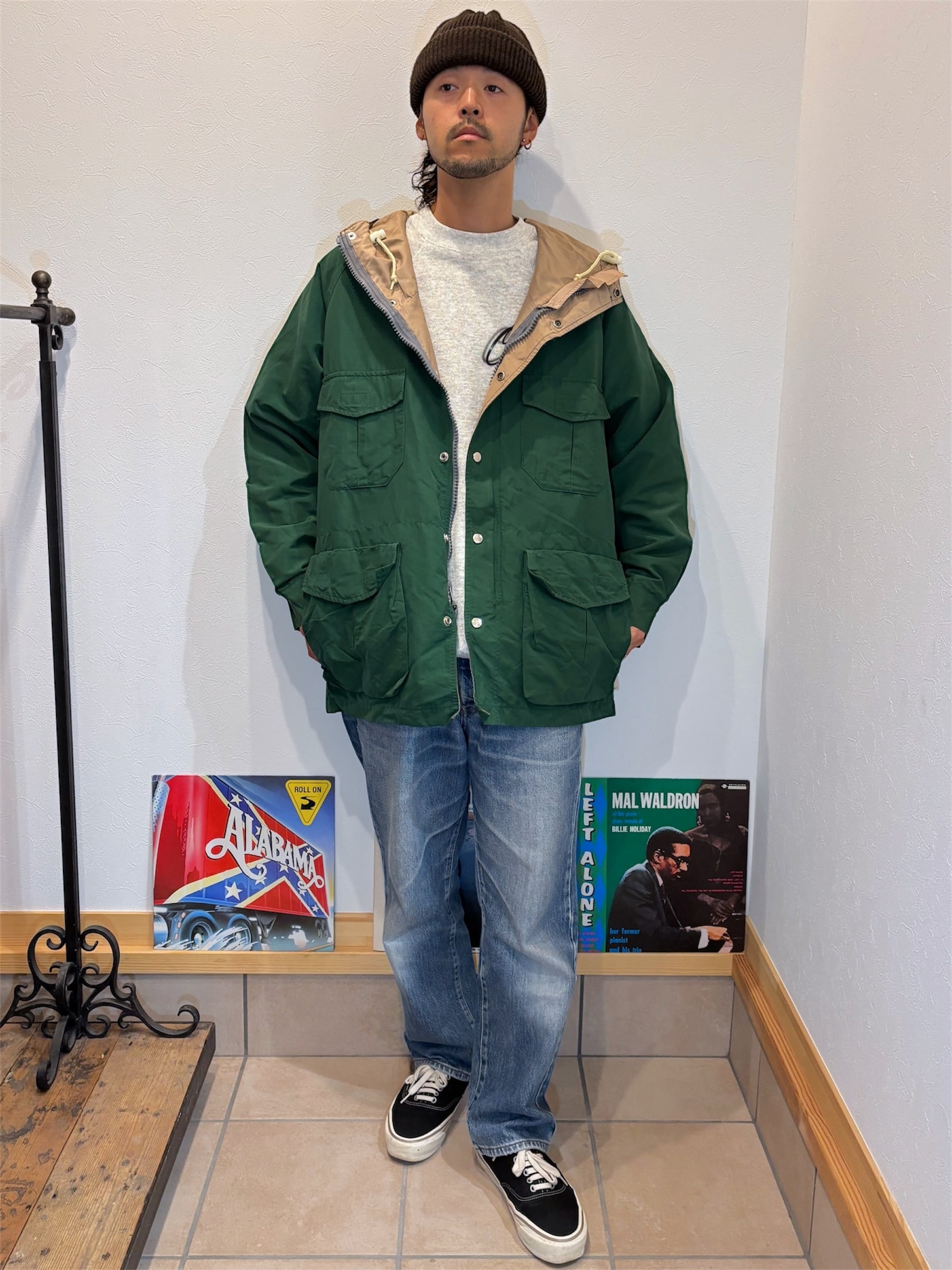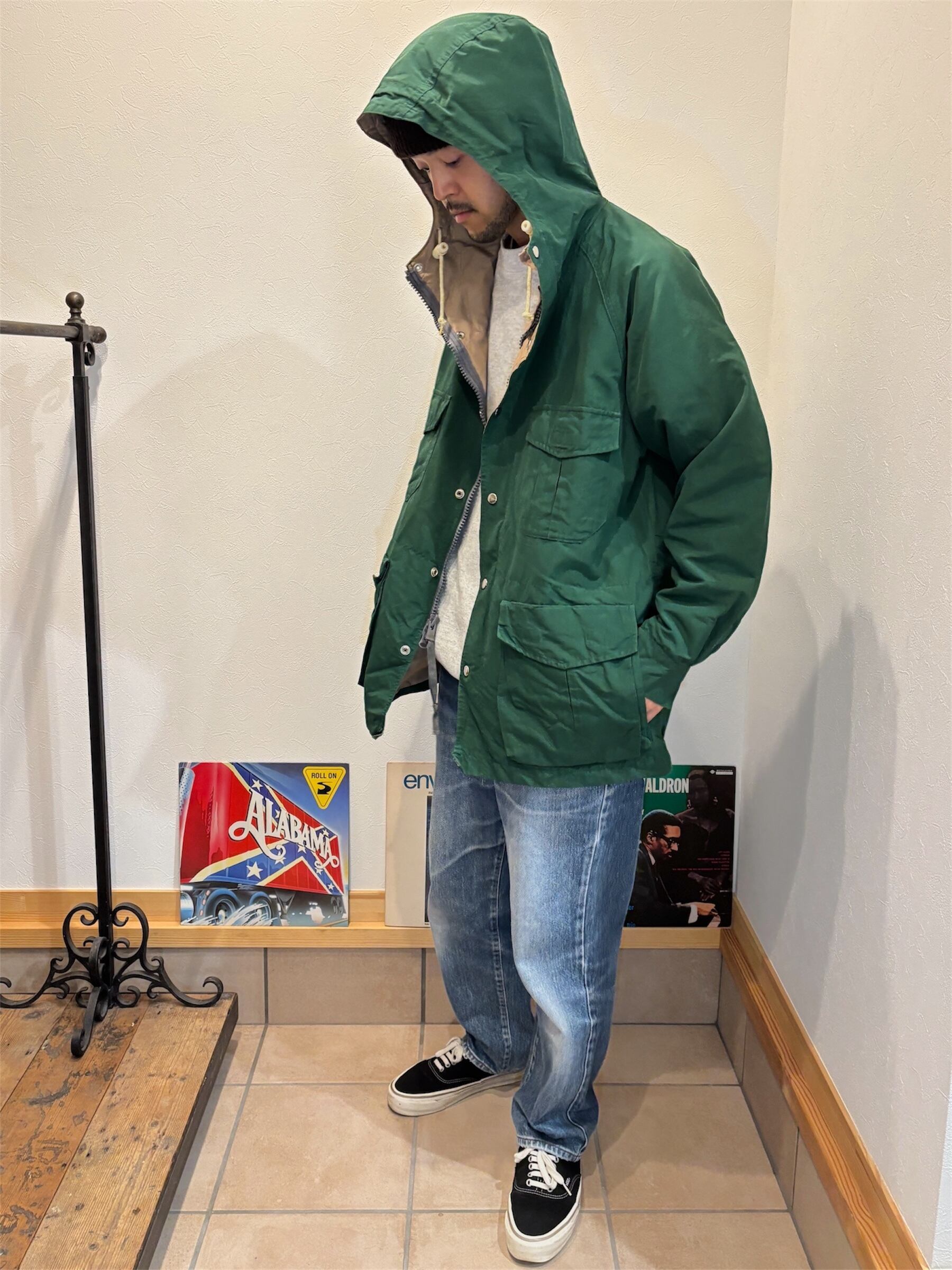 オールドのマウンテンパーカースタイルで、フロントにポケットが4つ、バックには右サイドにジッパー付きポケットが付属。