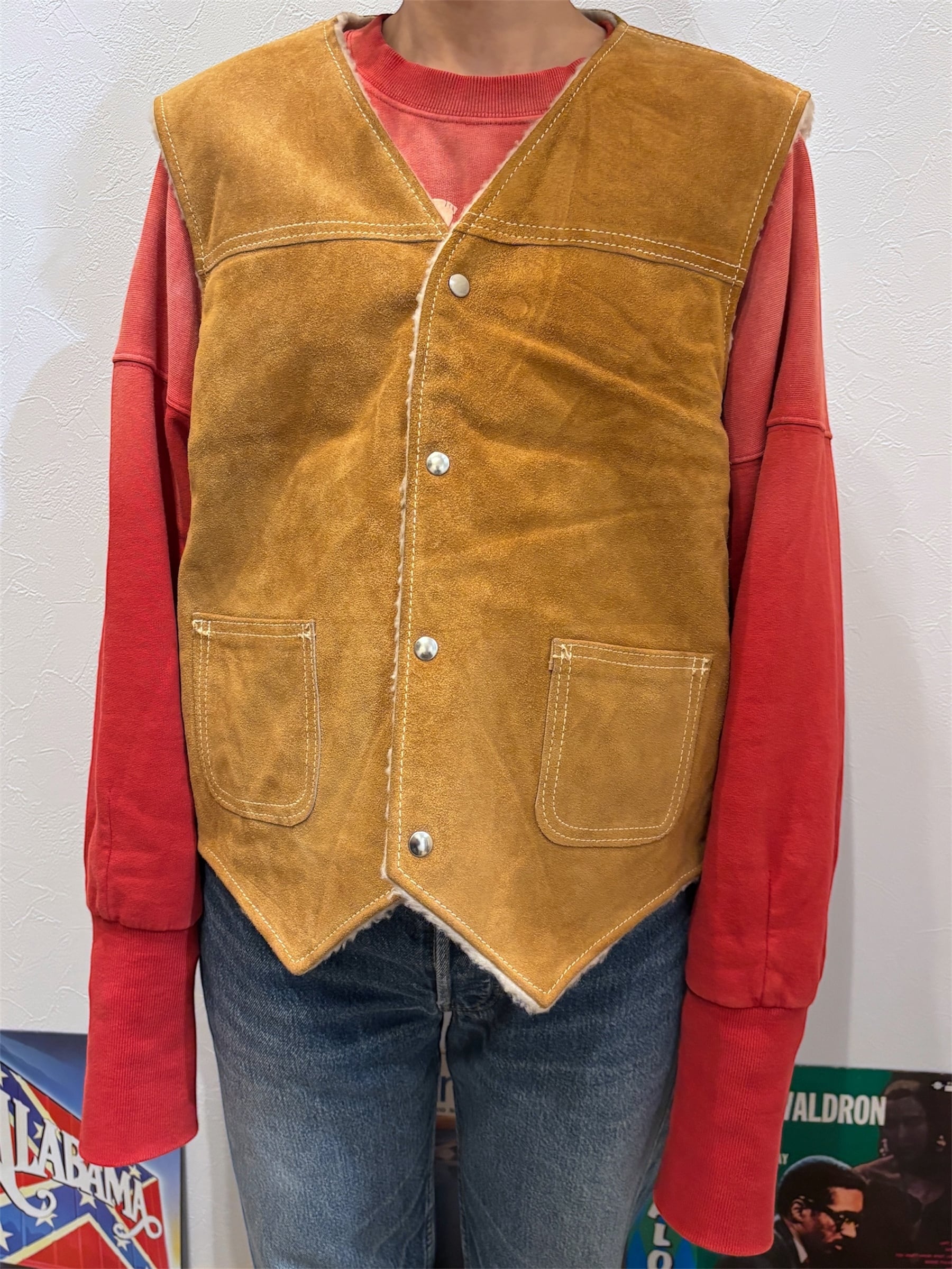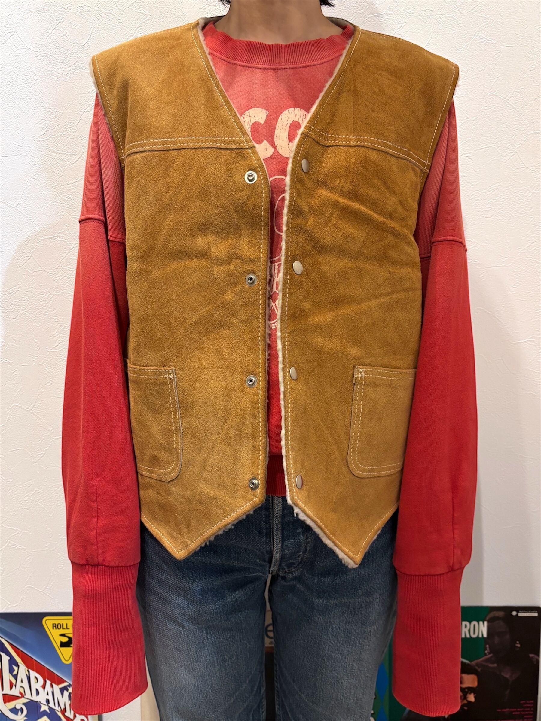 シアーズのスエードレザーボアベストです。