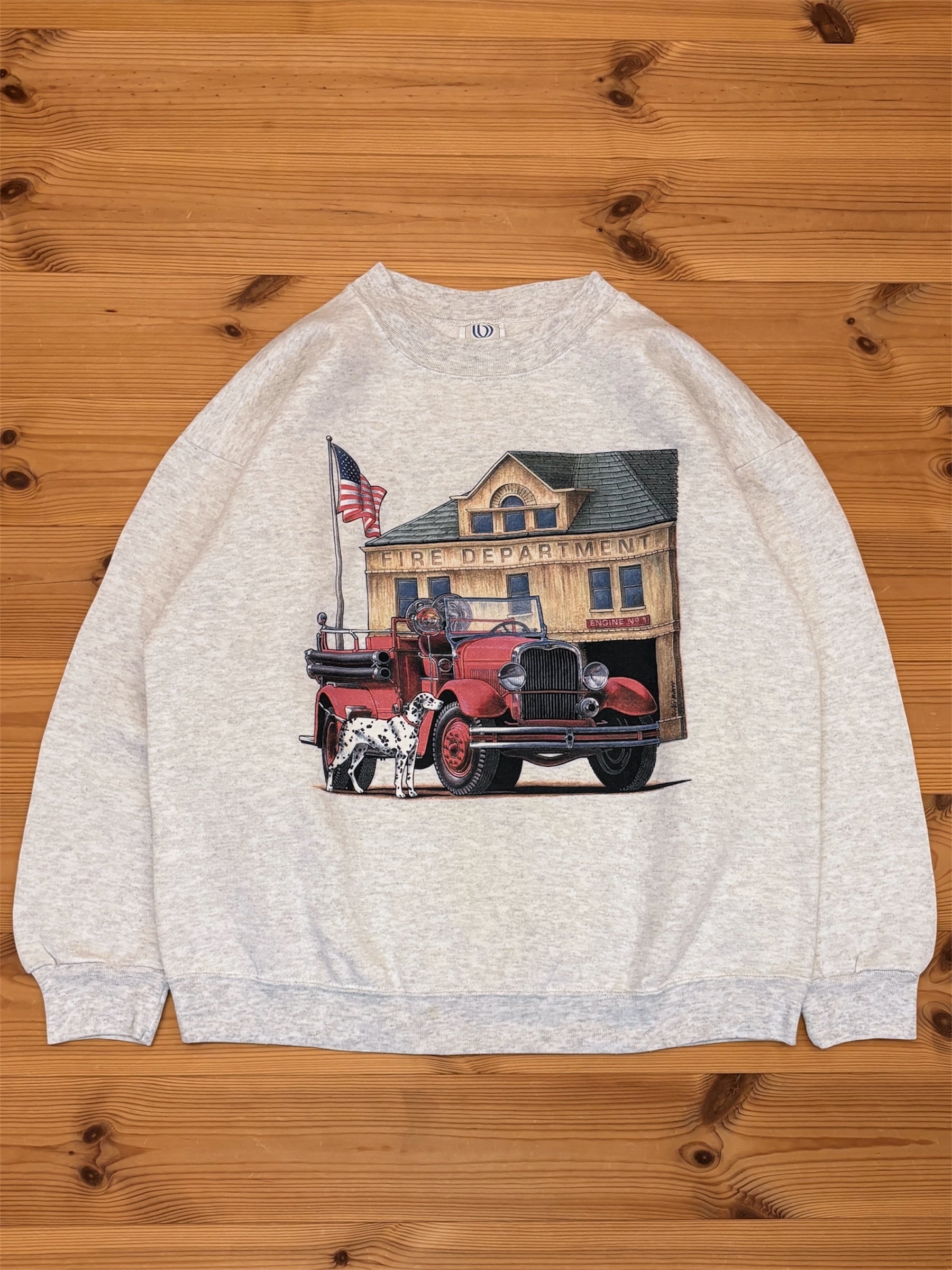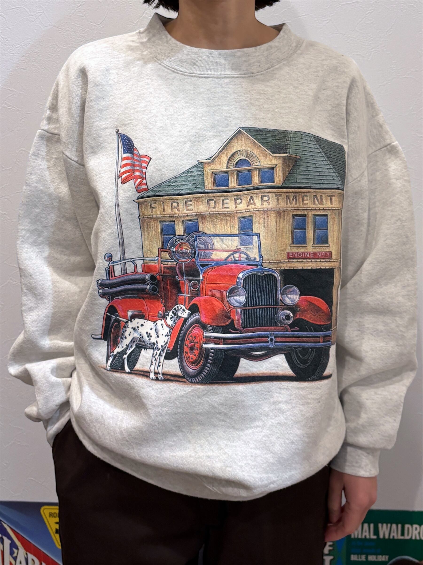 90's "Fire Department" Print Sweat L / スウェット 消防車 消防署 ダルメシアン 古着 ヴィンテージ