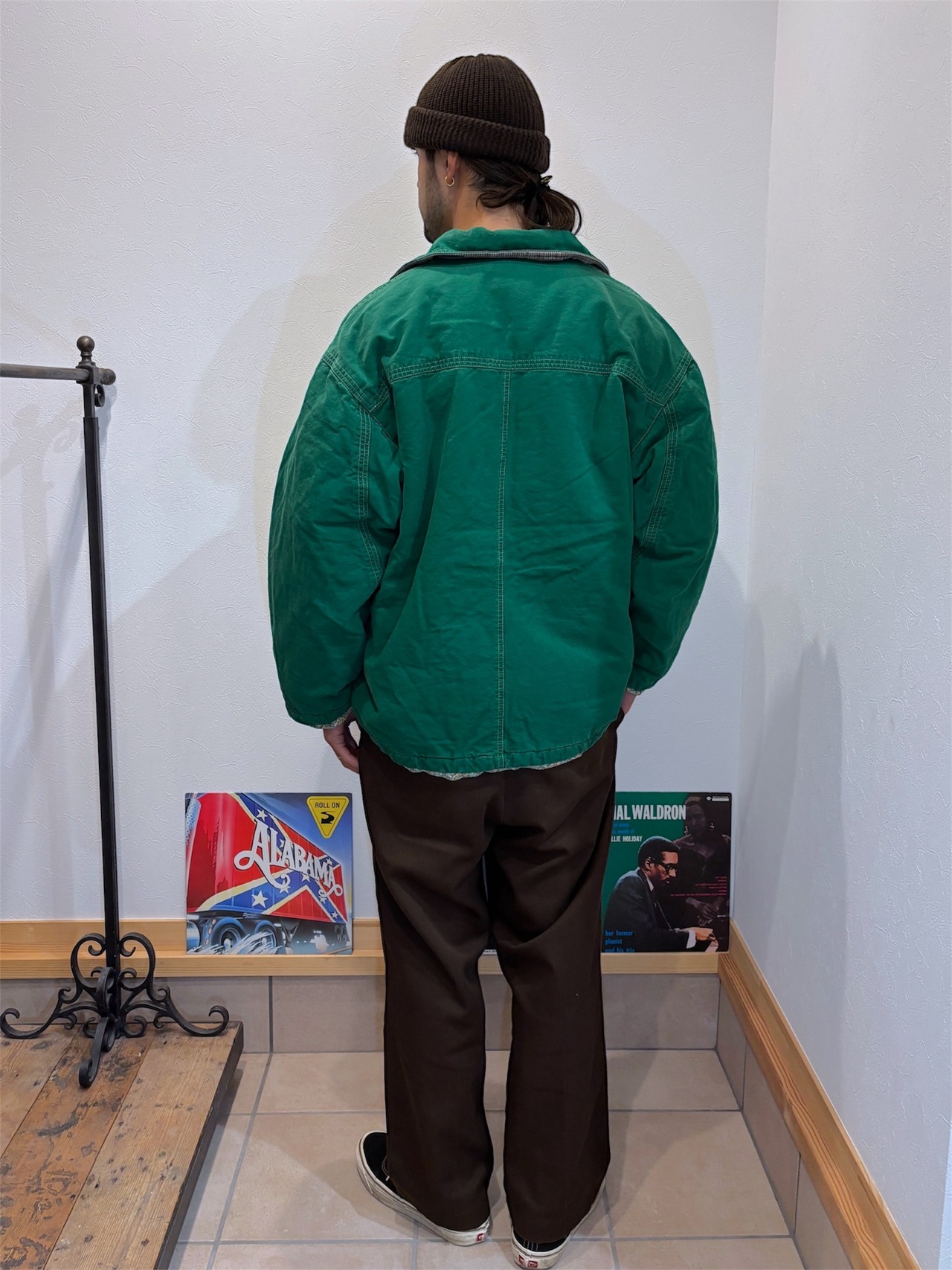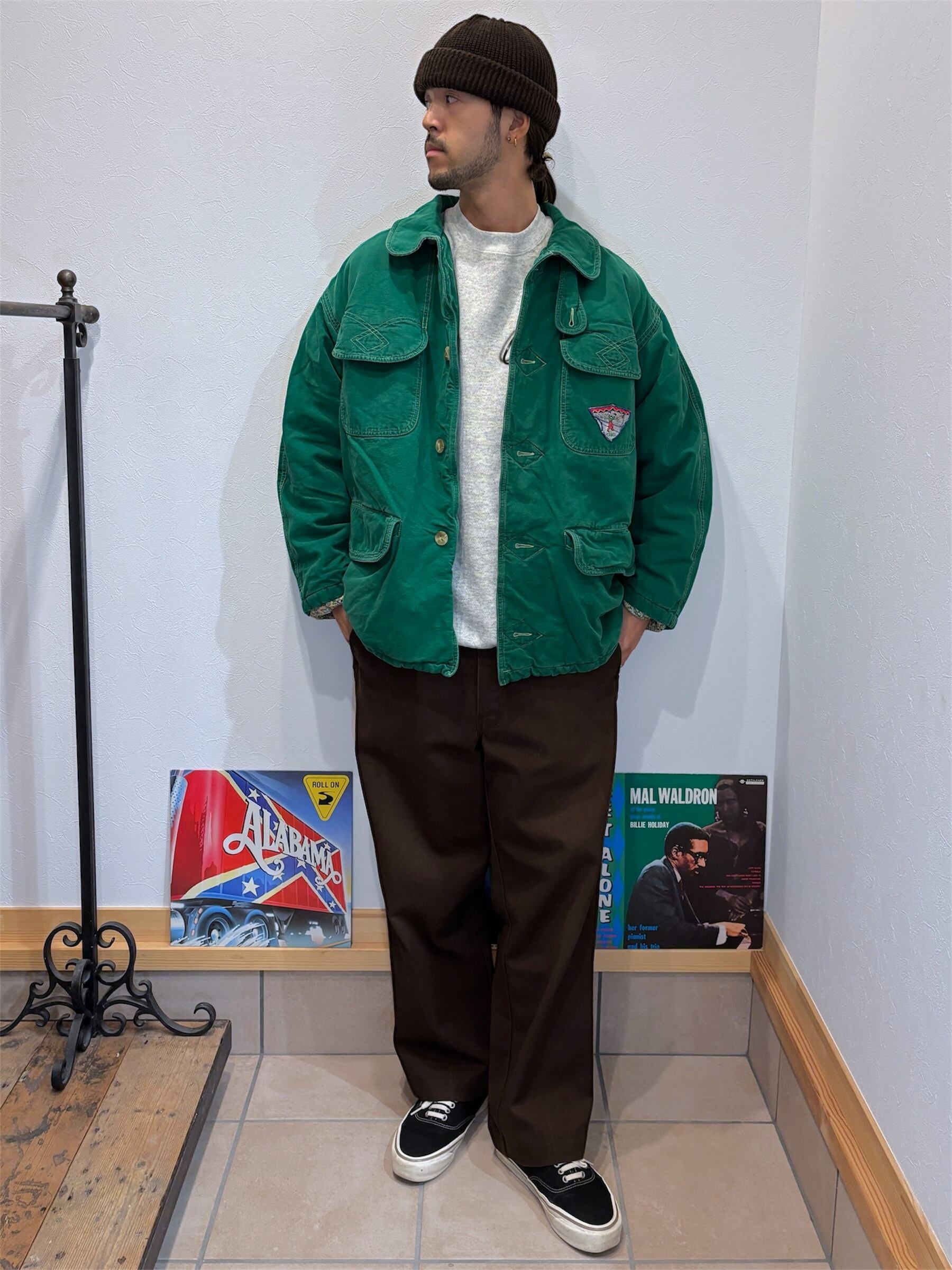 カラーはグリーンで、表地はダック地の仕様。