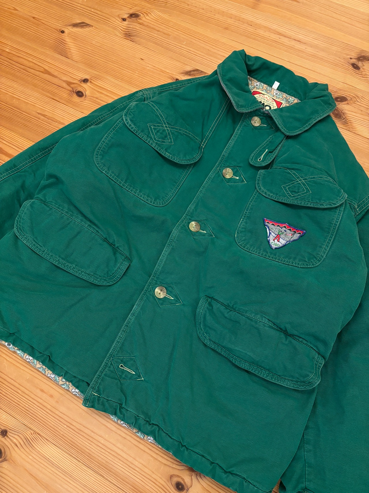 左胸にはオリジナルのワッペンが装飾されていて、フラップポケットが4箇所付属。