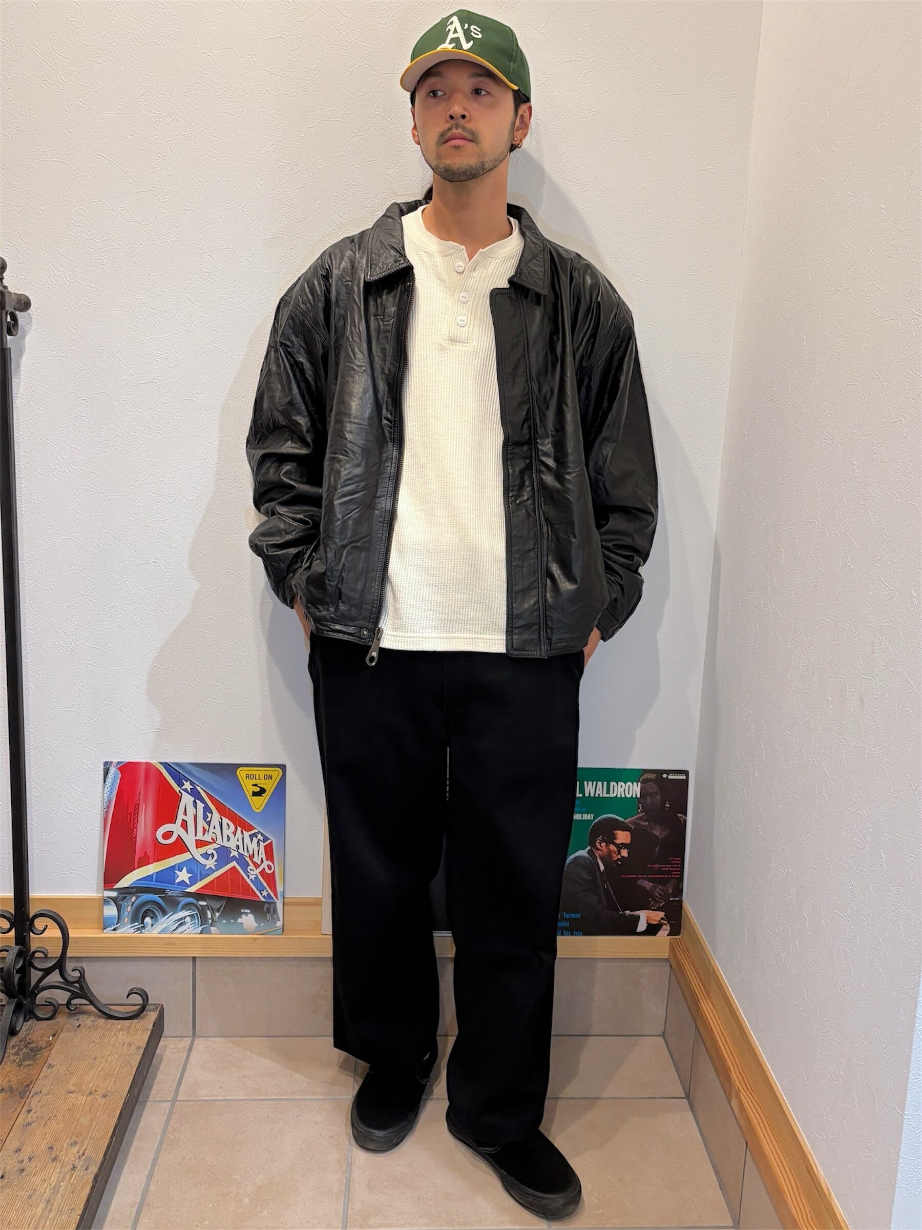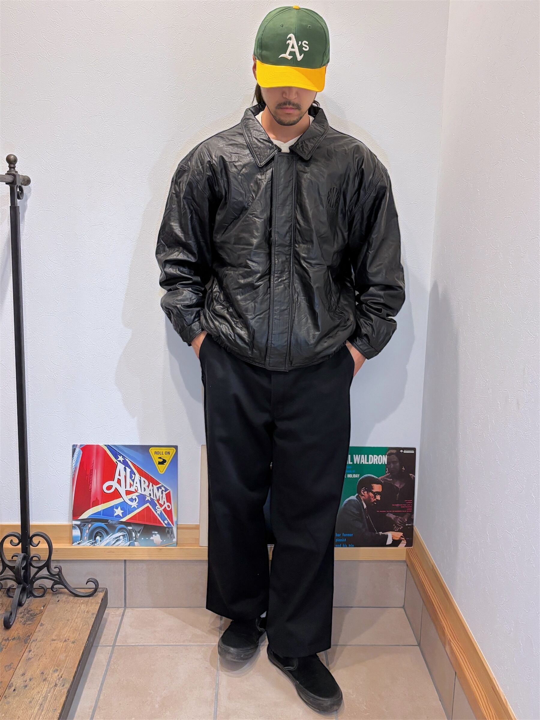 モチっとした柔らかいレザーのシボ感が雰囲気良く、着丈短めの身幅広めでシルエット共にとても良いアイテムです。