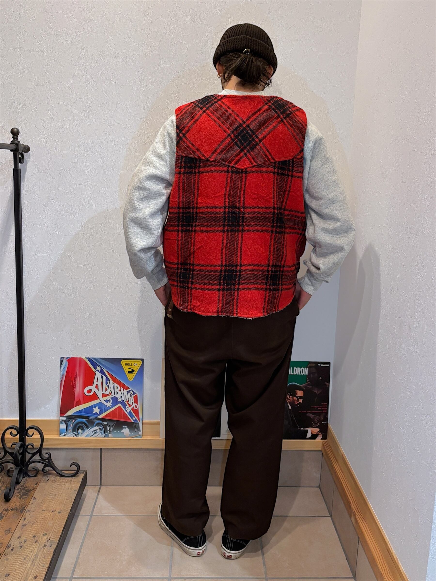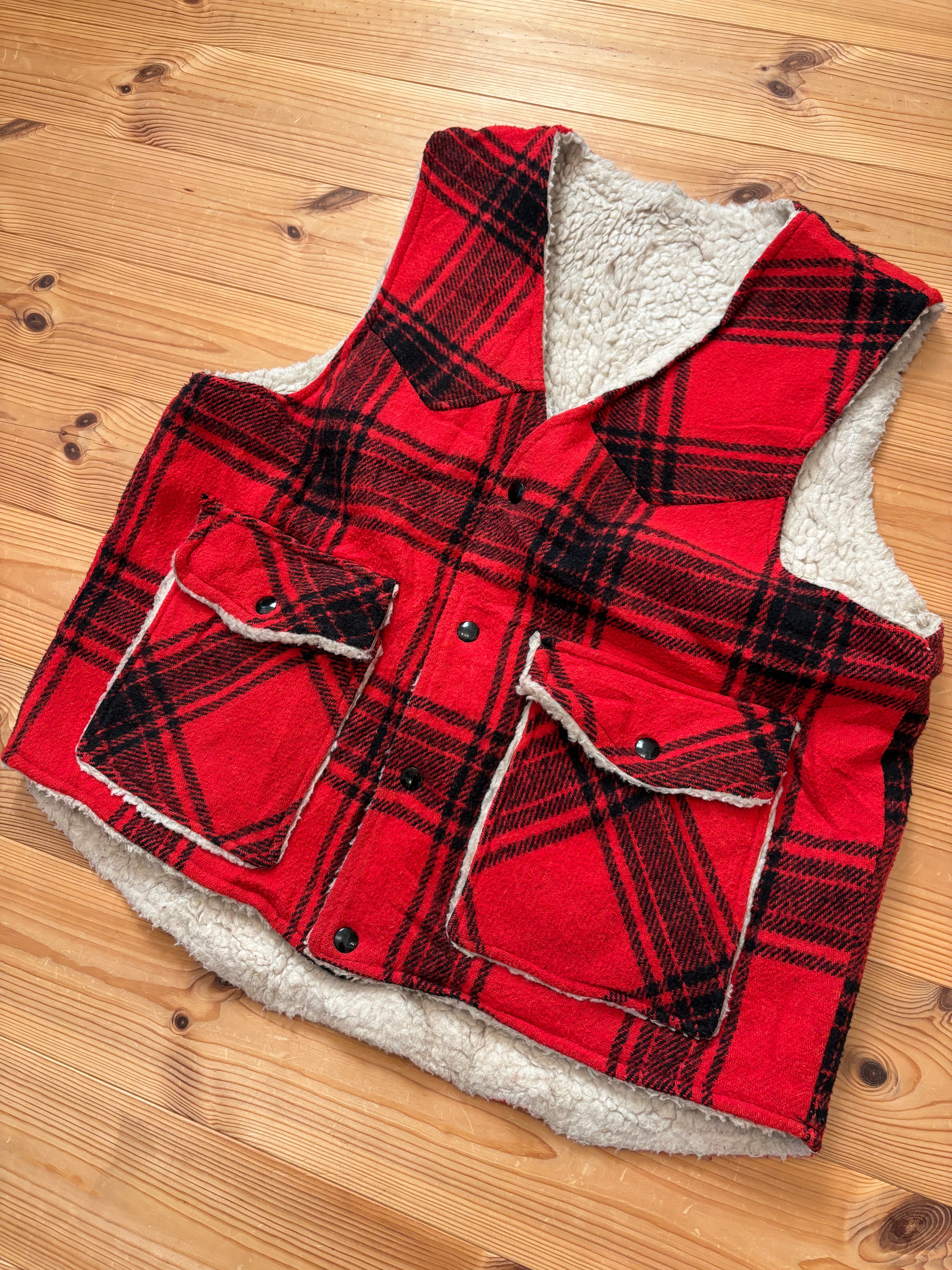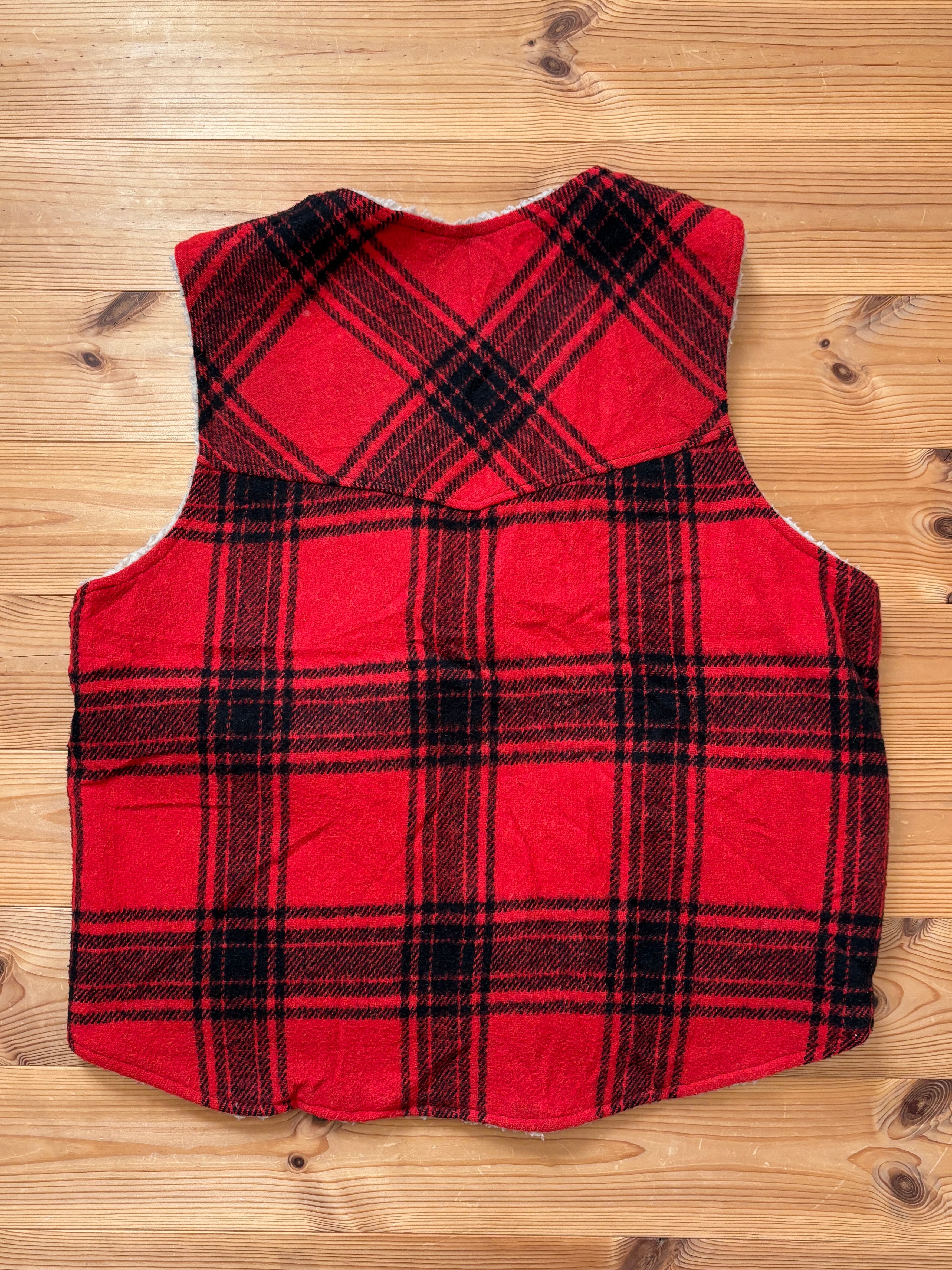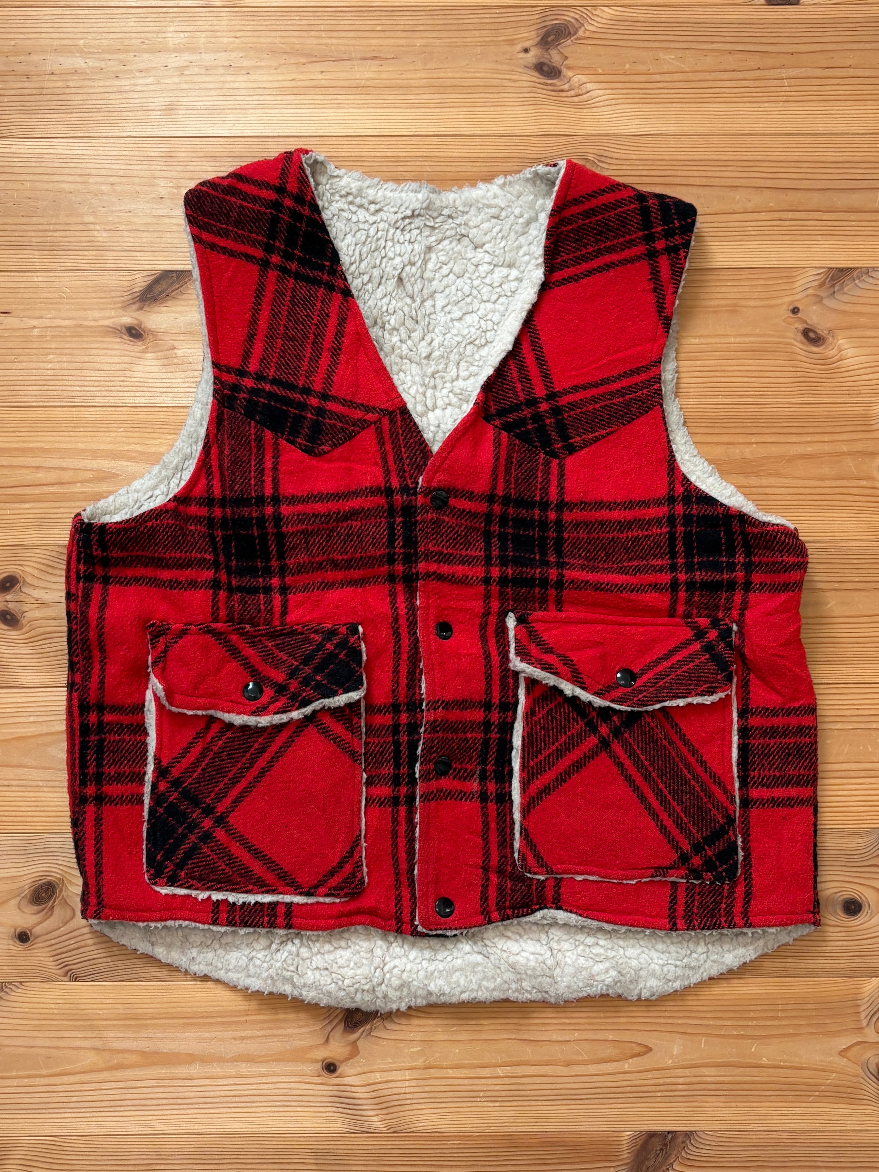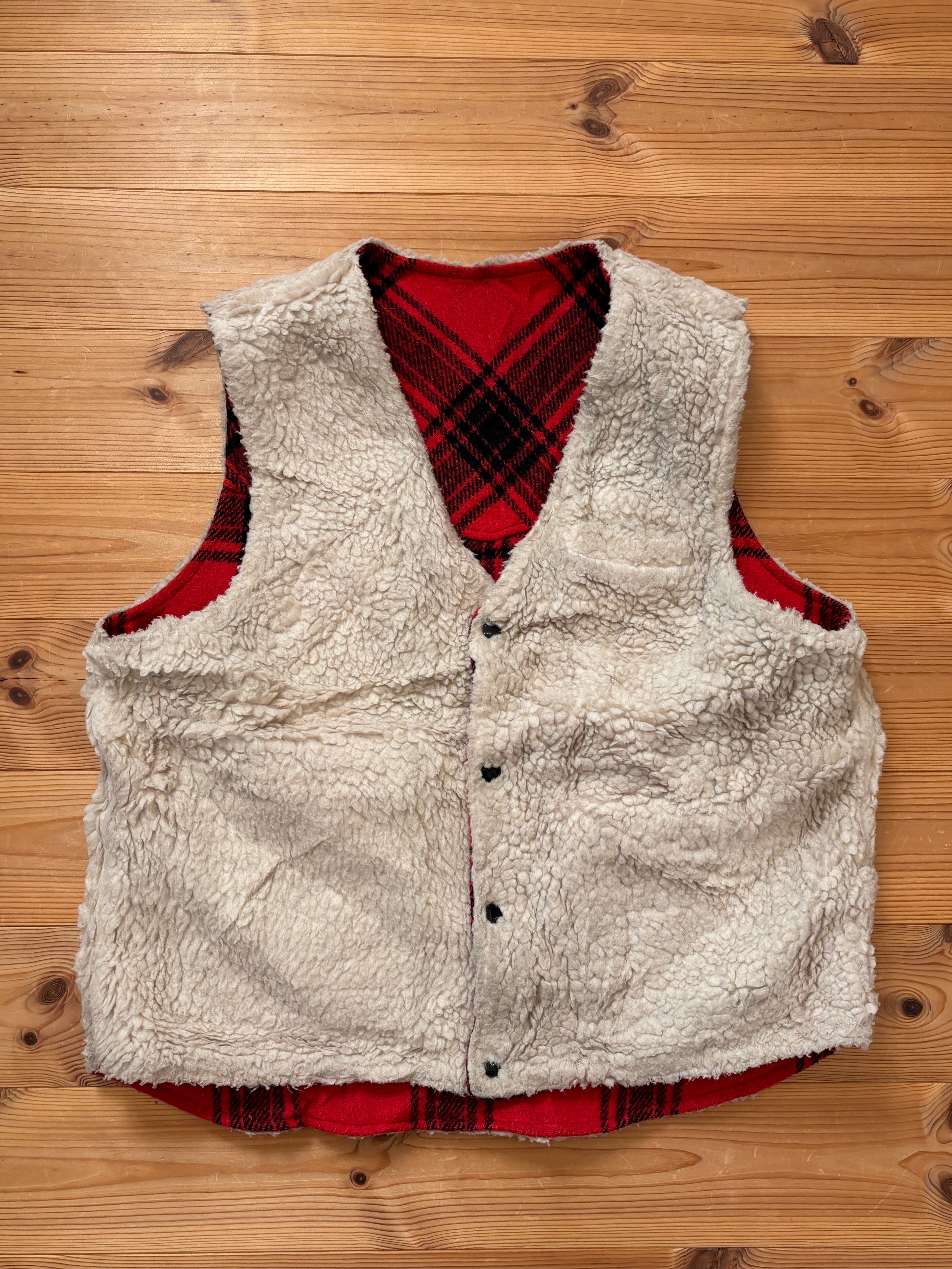70-80's "Sears" Reversible Red Plaid Boa Vest L / シアーズ リバーシブル ボア ベスト 古着 ヴィンテージ