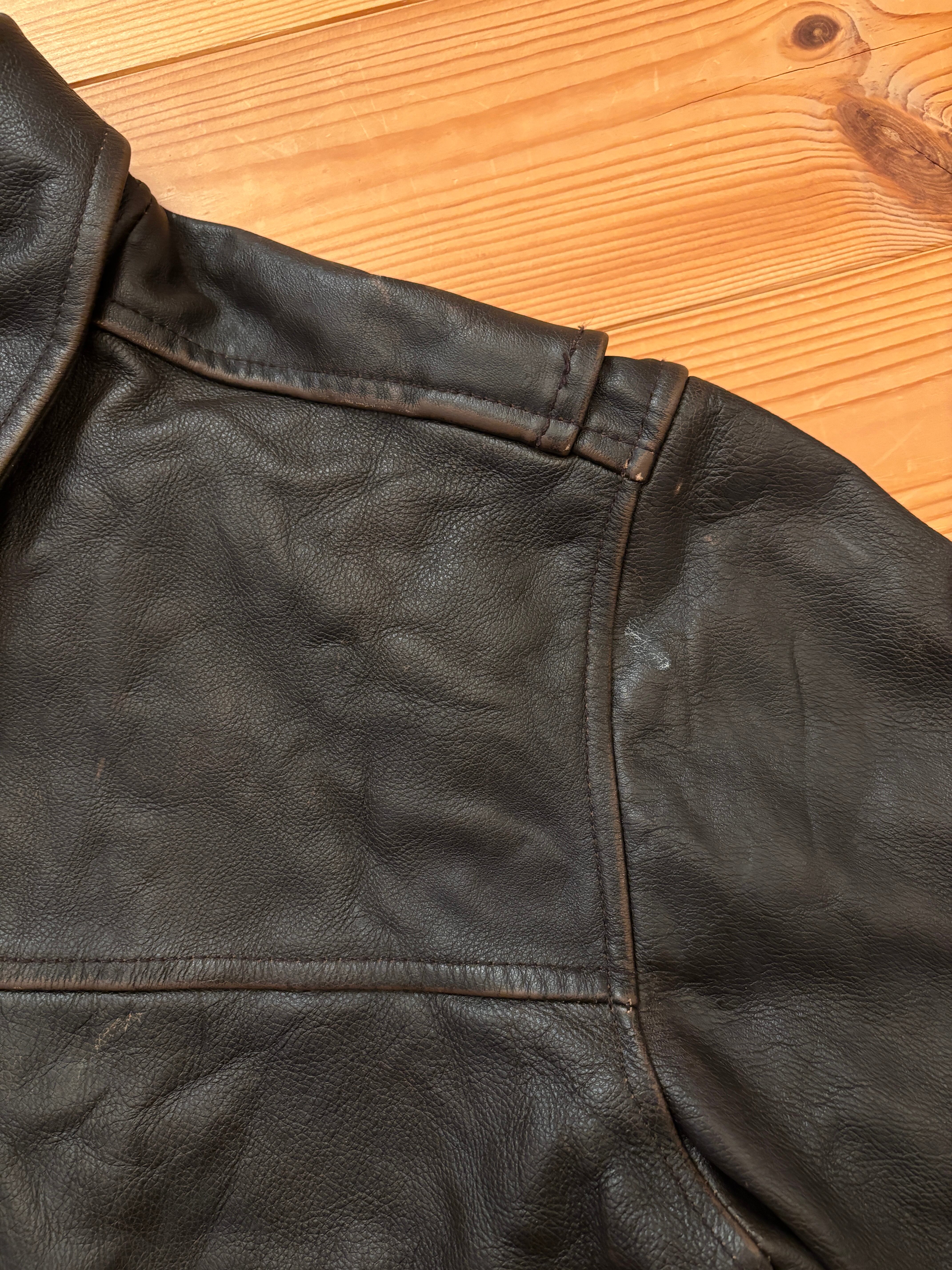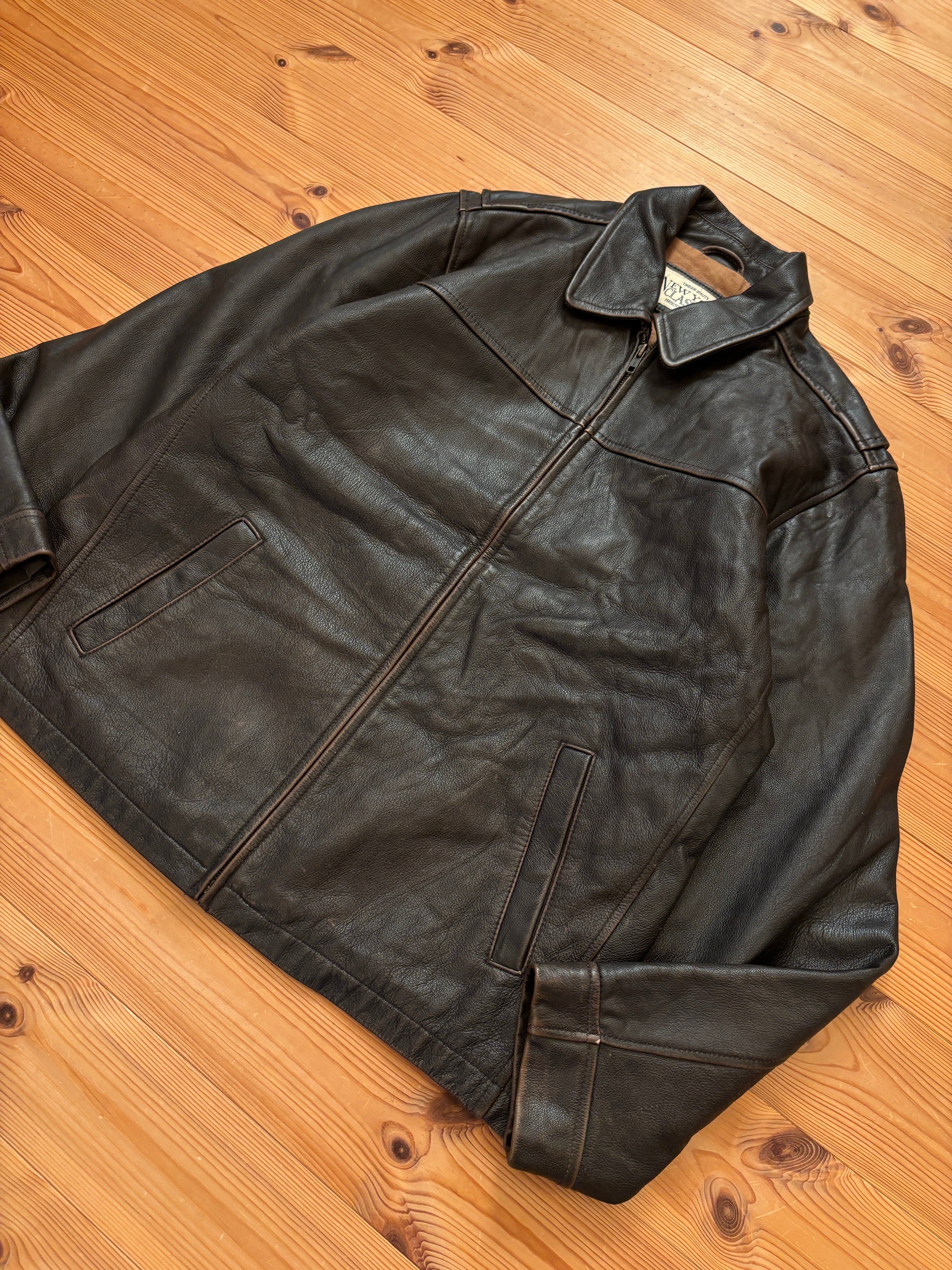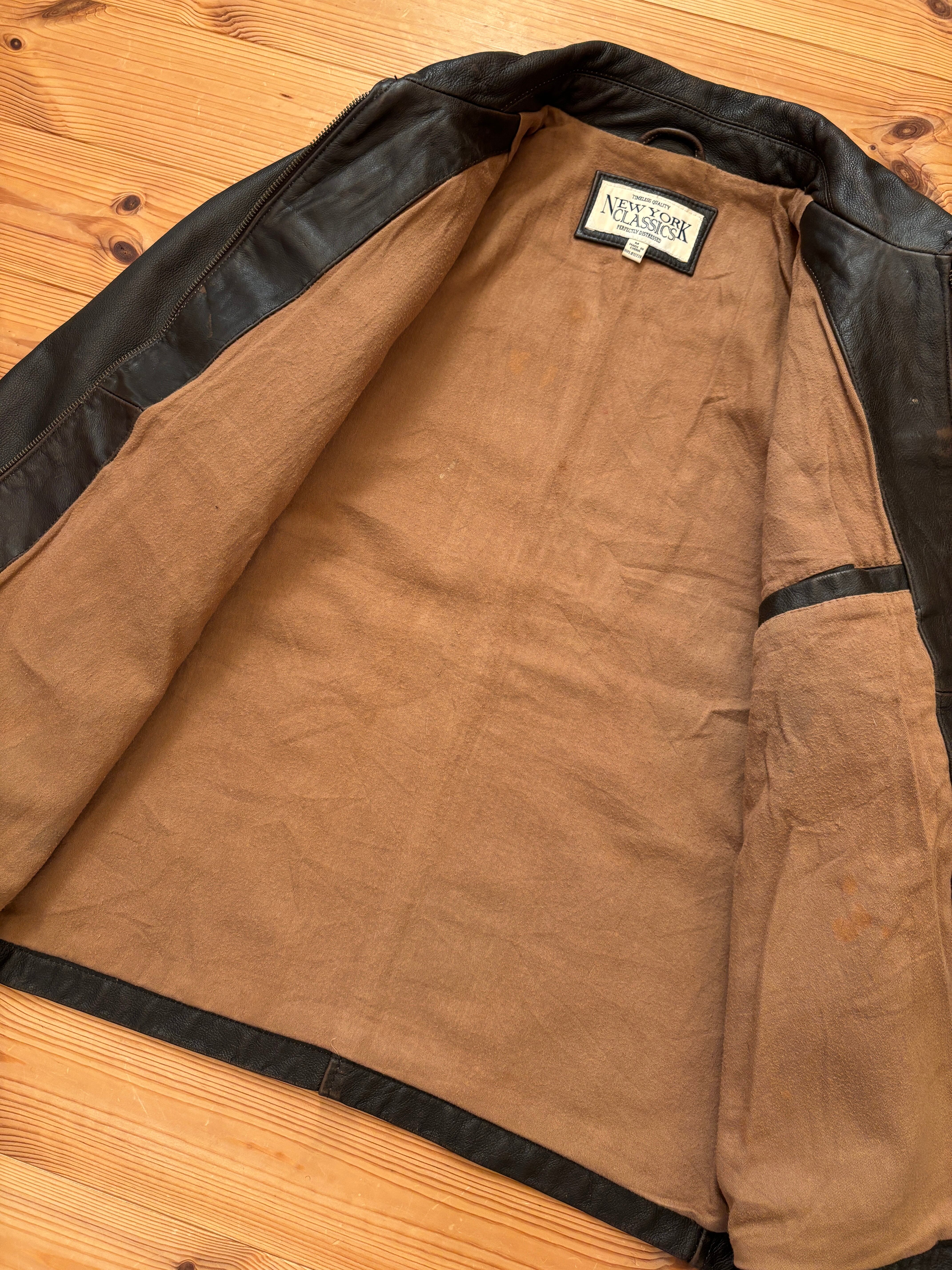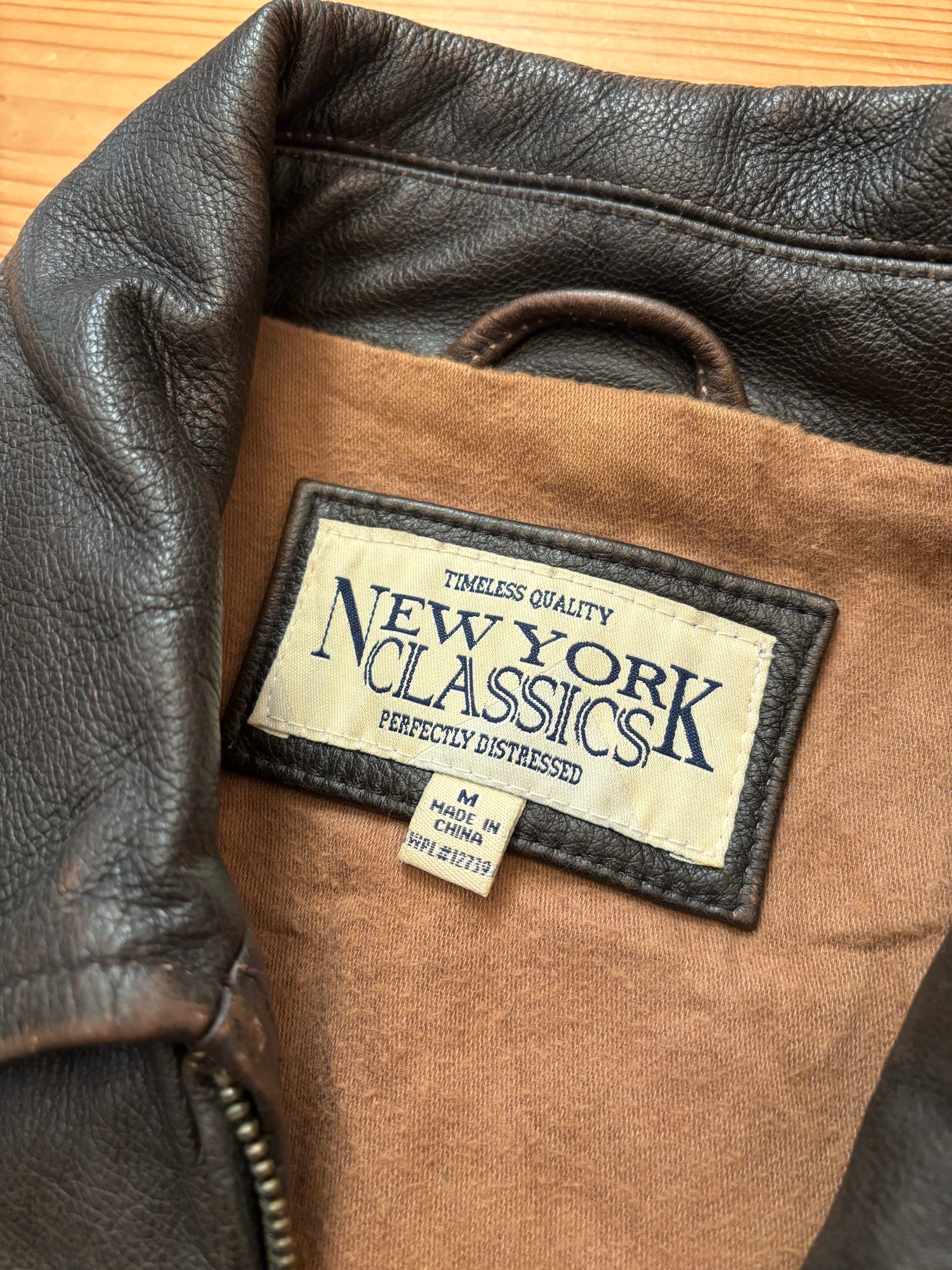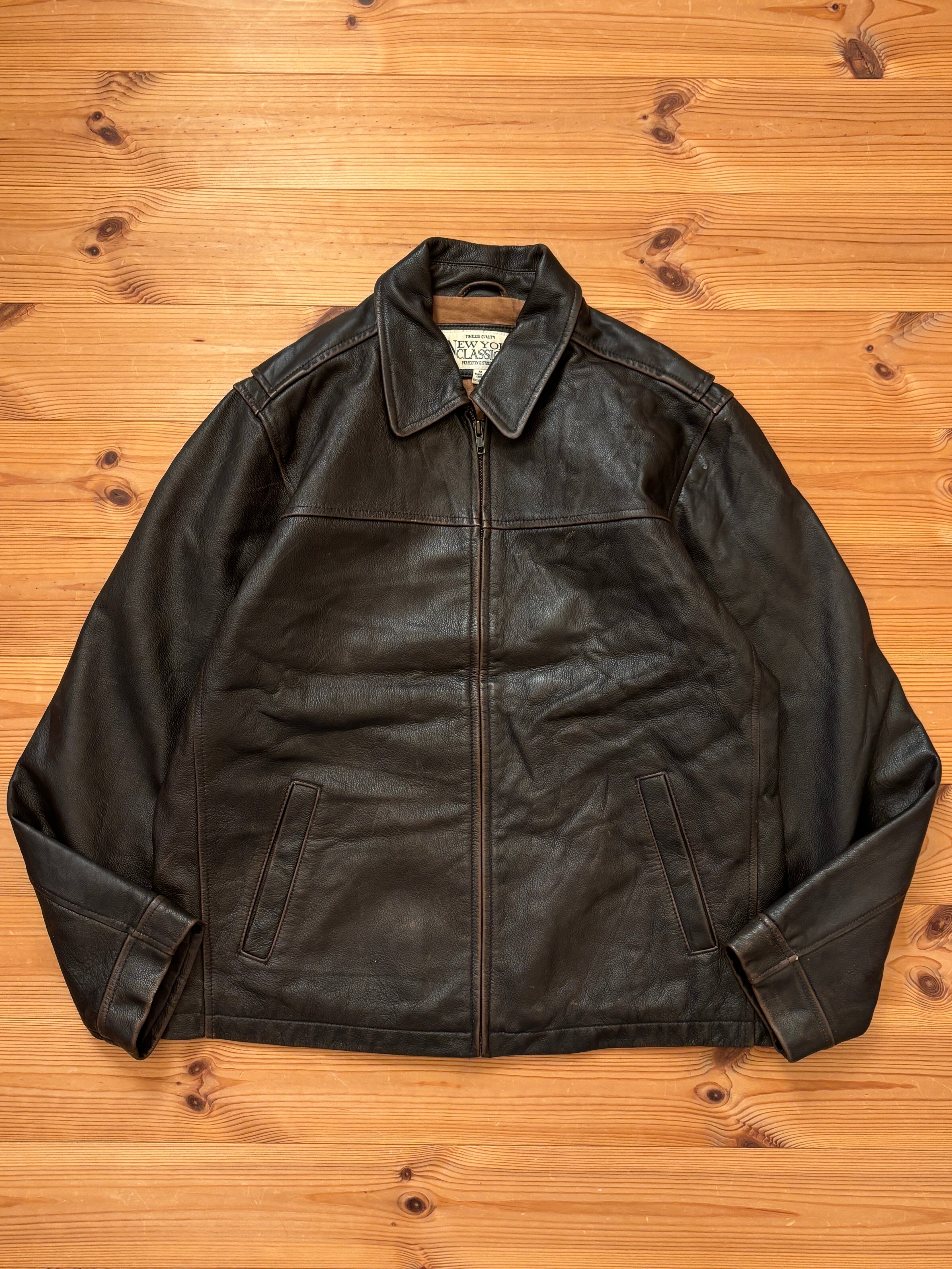"New york Classics" Single Leather Jacket M / ニューヨーククラシック レザージャケット シングルレザー 本革 ブラウン 茶 古着 ヴィンテージ
