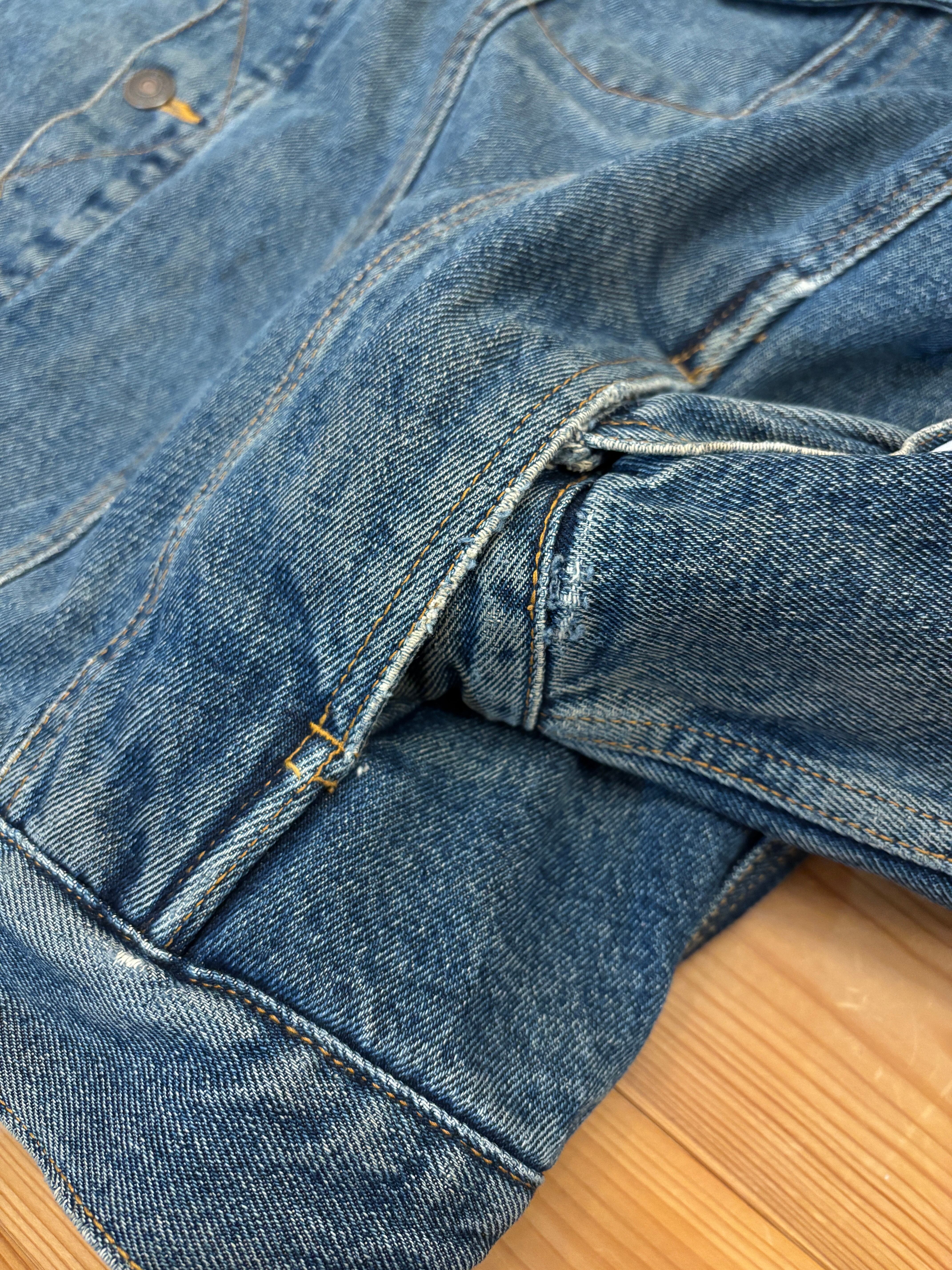 リーバイスの70505がベースになっていて、ポケットはフラップポケットの他にハンドウォーマーポケットと内側にポケットが付く計5箇所付属。