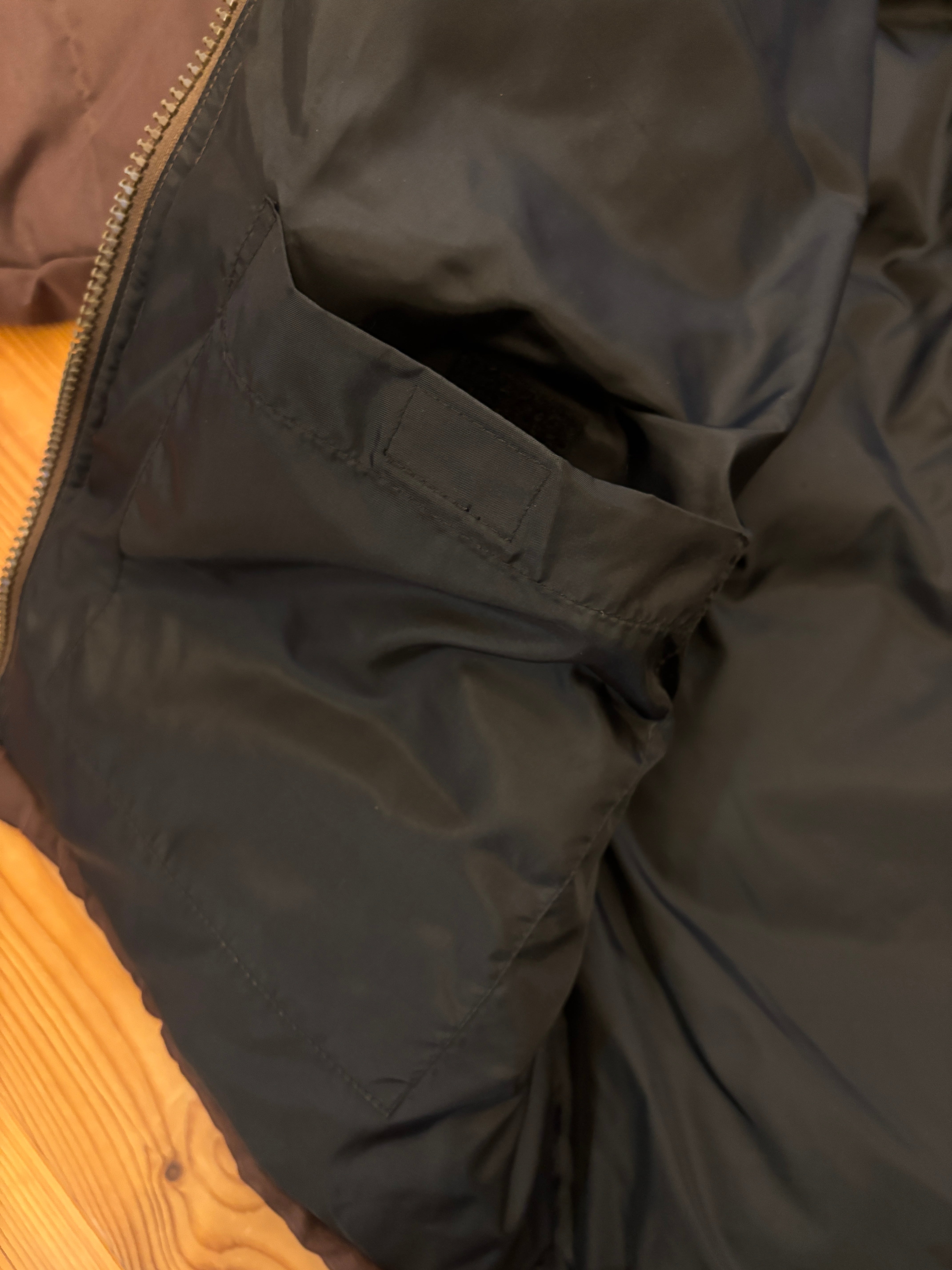 前面右ポケット下と左袖口に目立ちにくいシミ、前面右ポケット小さなよごれ有り。※画像参照