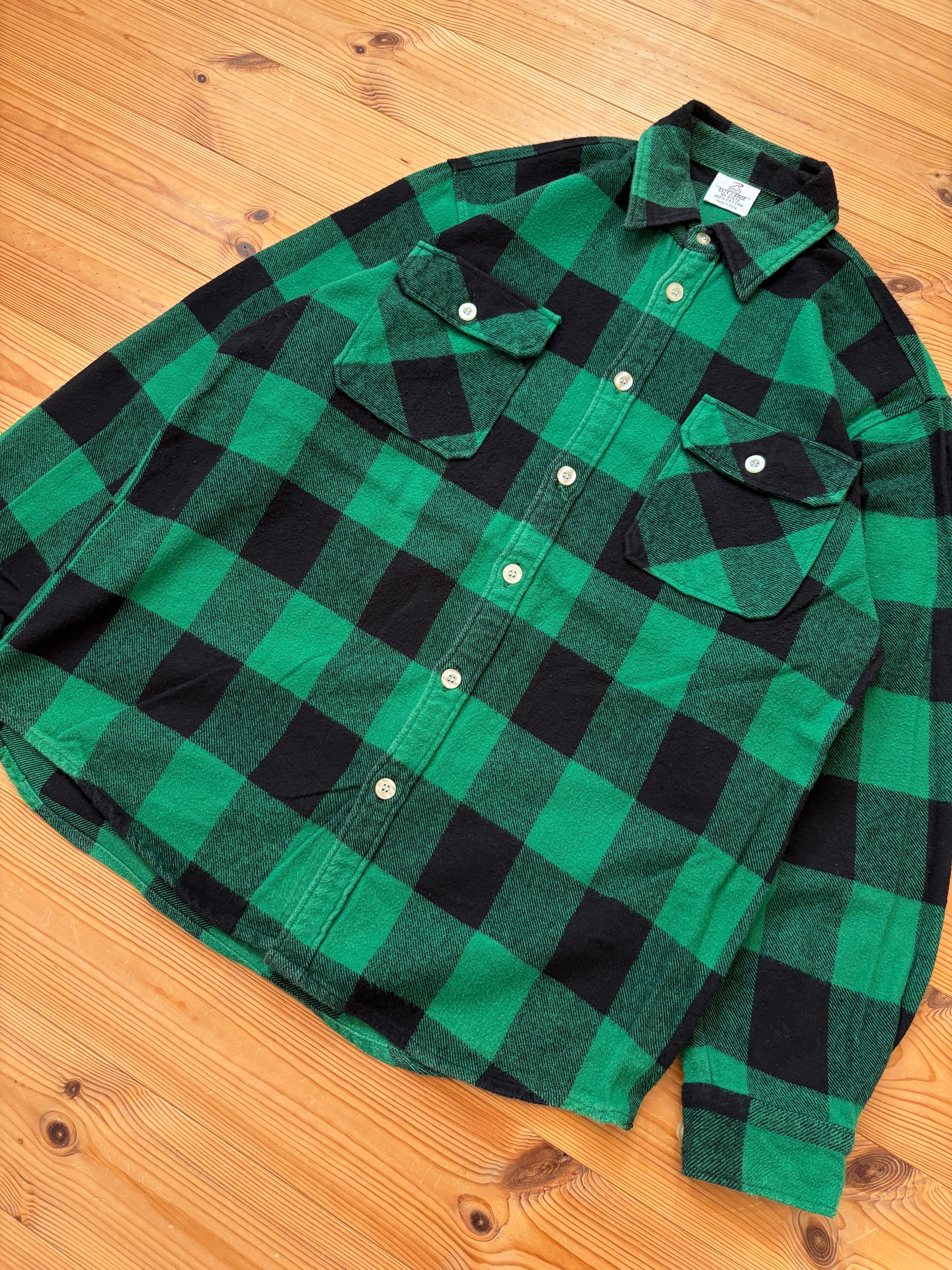 オーセンティックなグリーンのバッファローチェックで、肉厚な一枚。