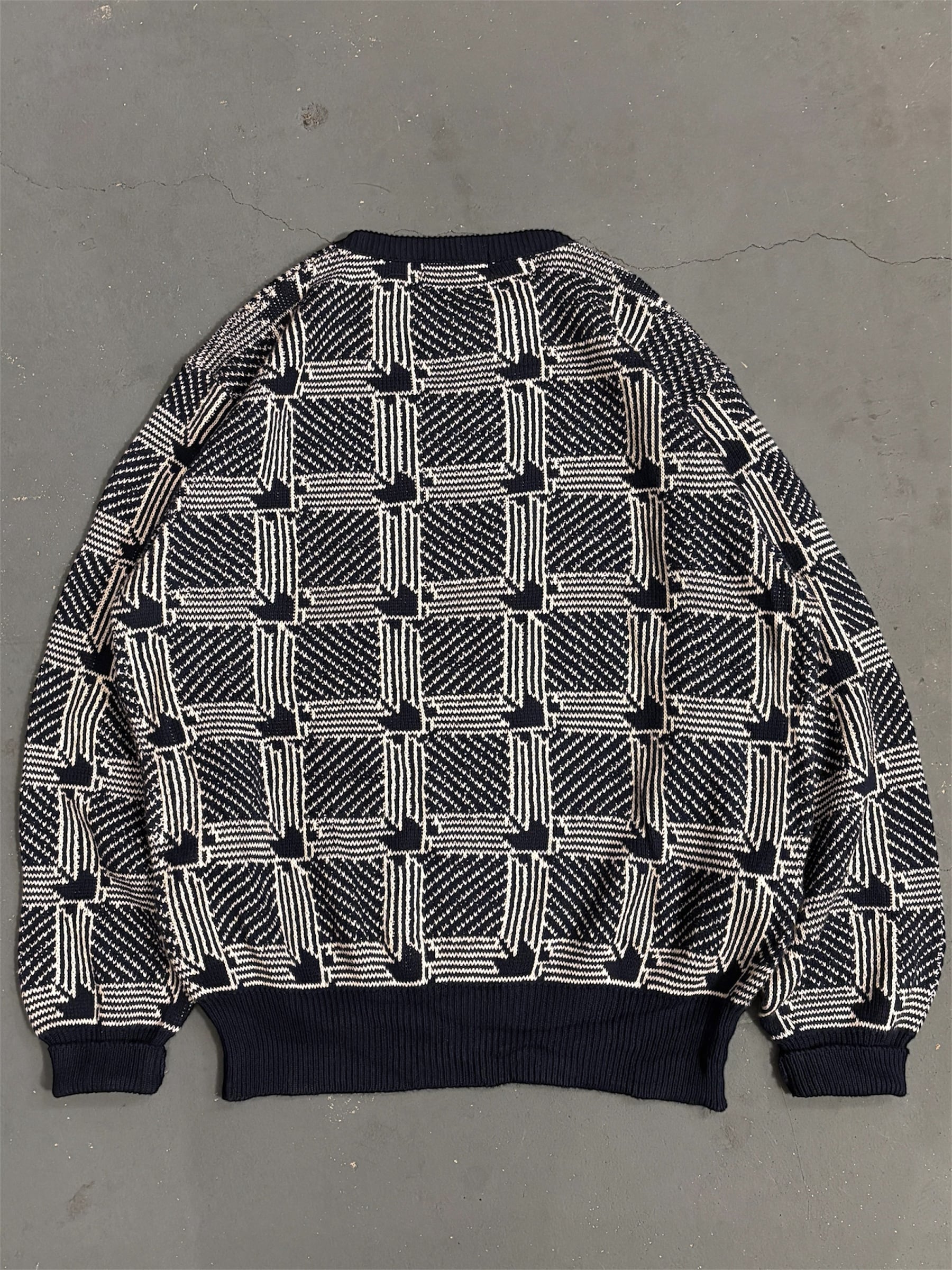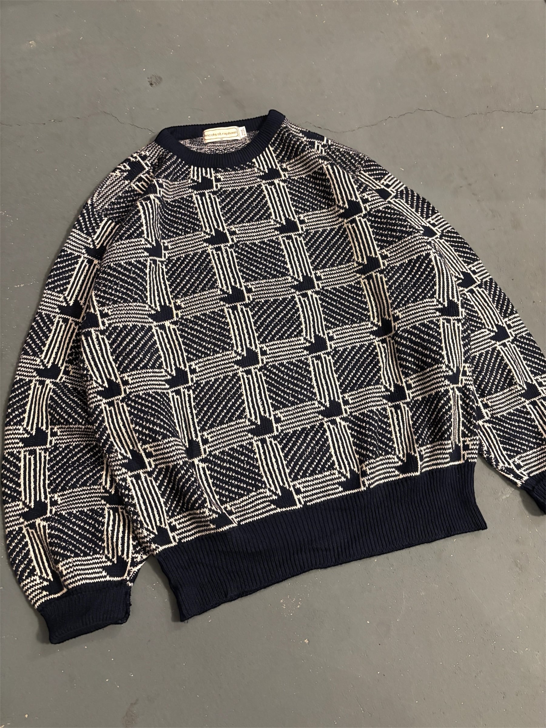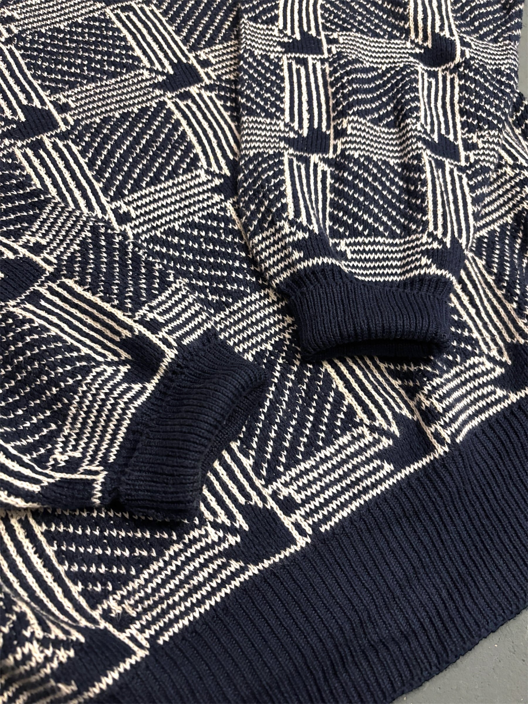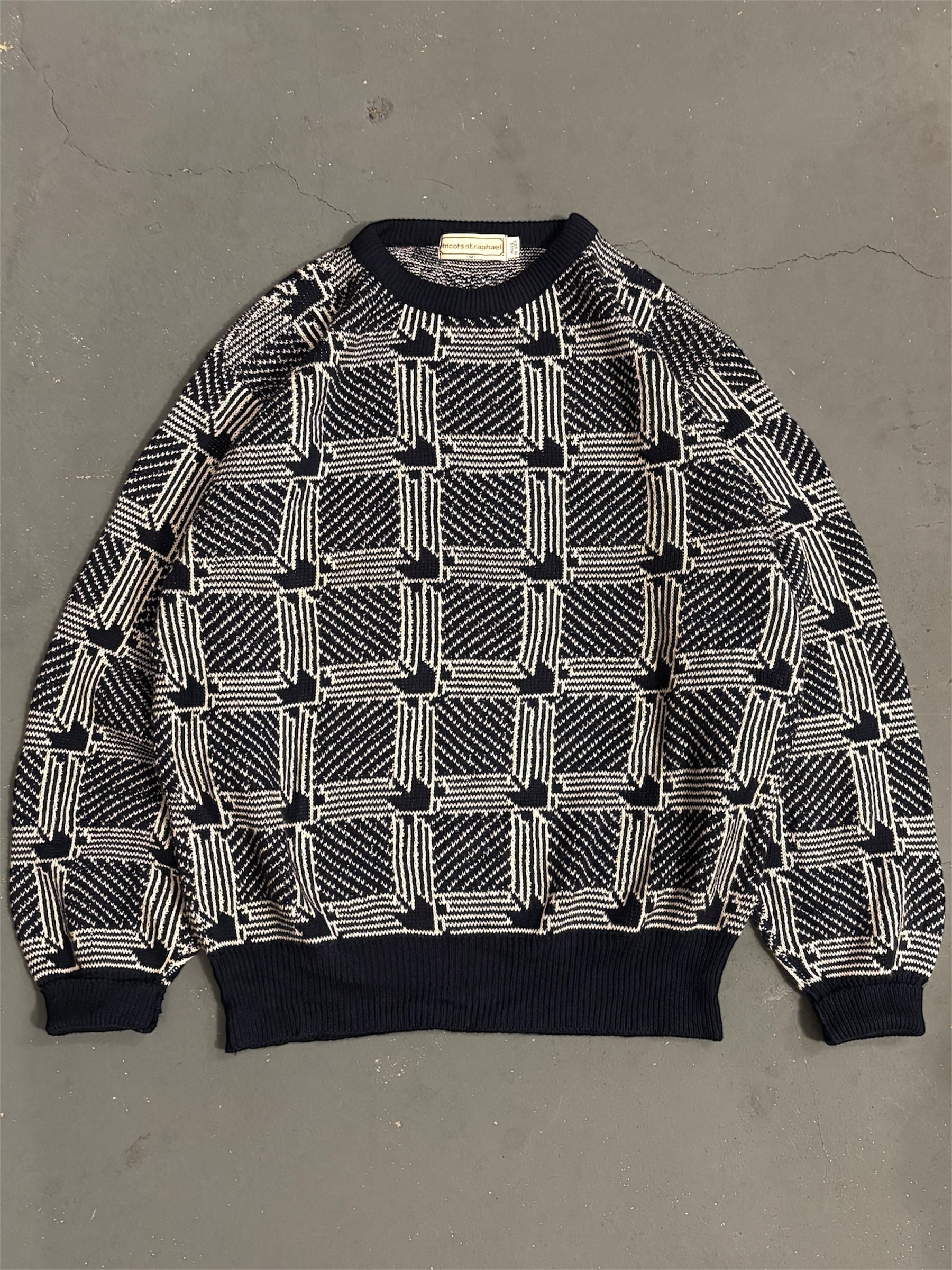 90's "Tricots st. Raphael "Geometric Pattern CottonKnit / 総柄ニット コットンニット アメリカ製 古着 ヴィンテージ