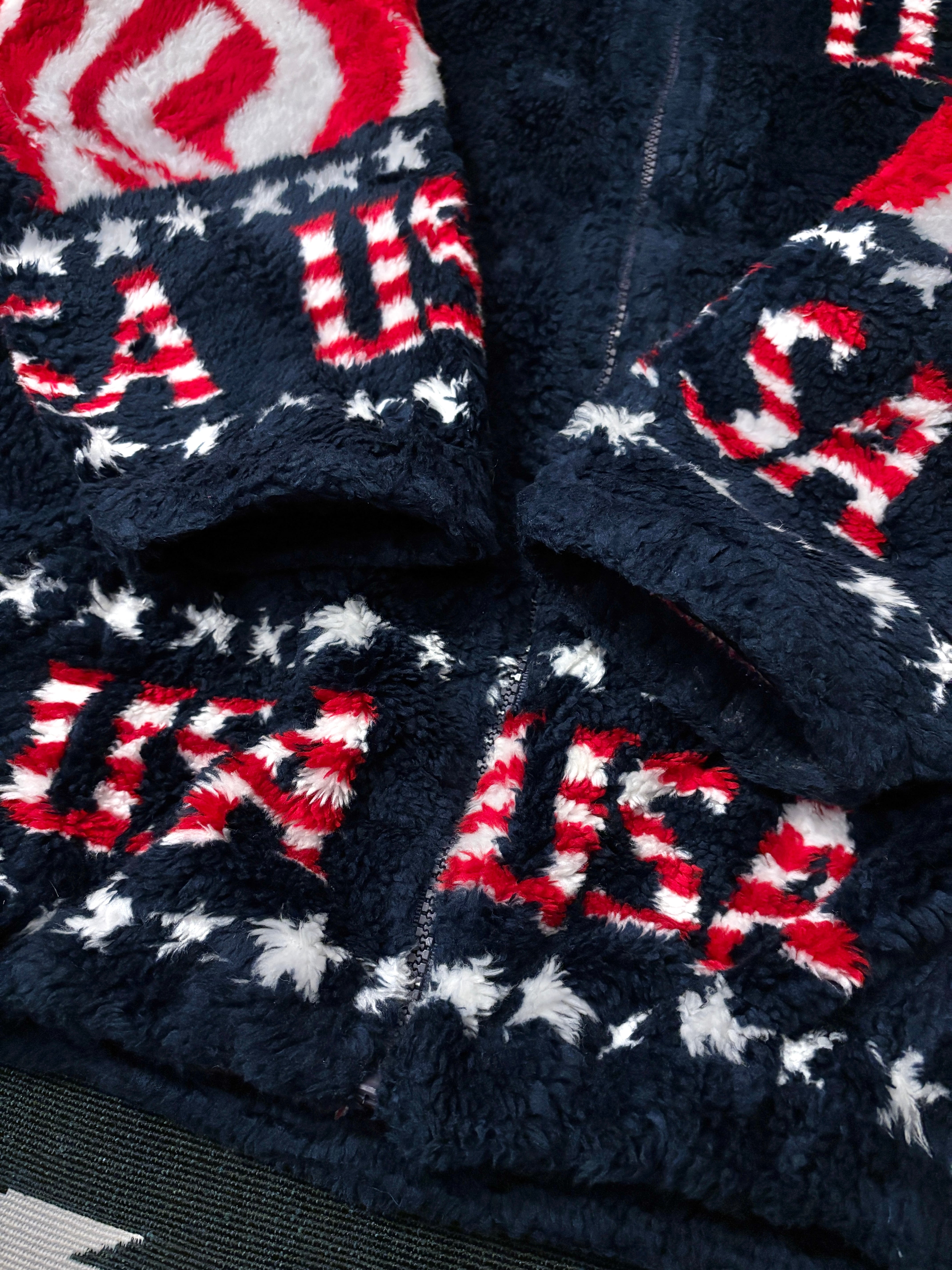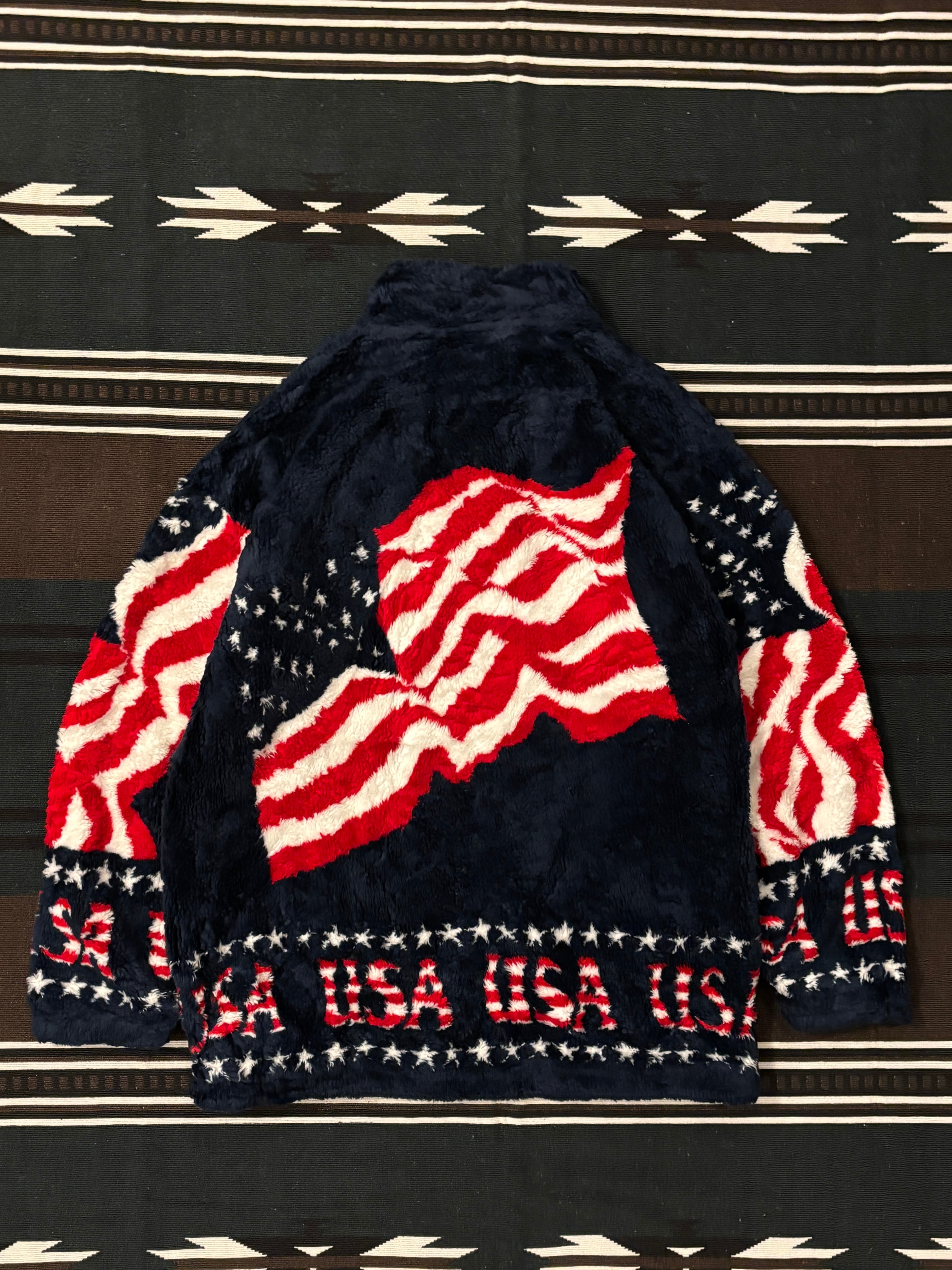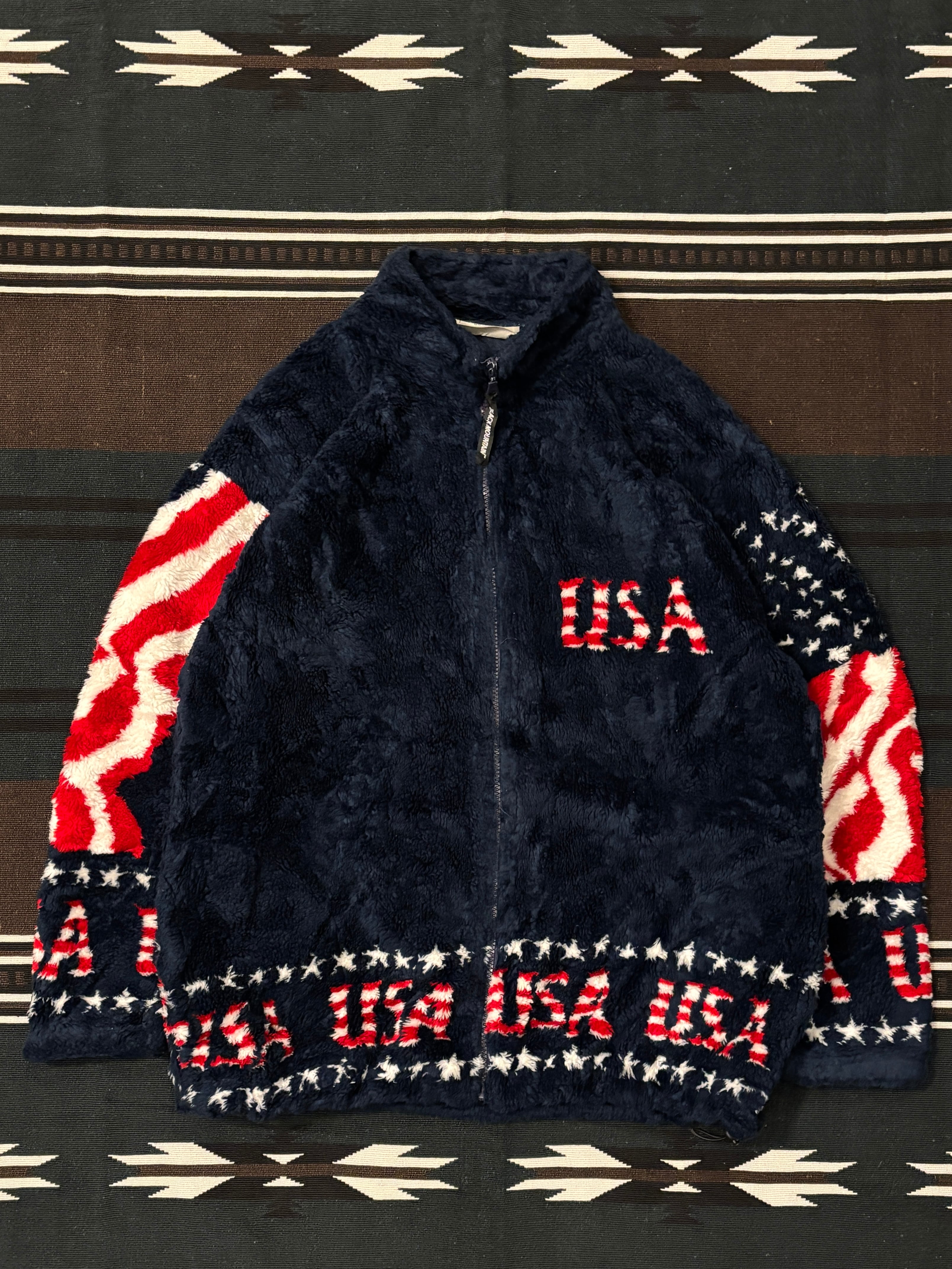 90's "Black Mountain" Fleece Jacket XL / ブラックマウンテン フリース 総柄 星条旗 古着 ヴィンテージ