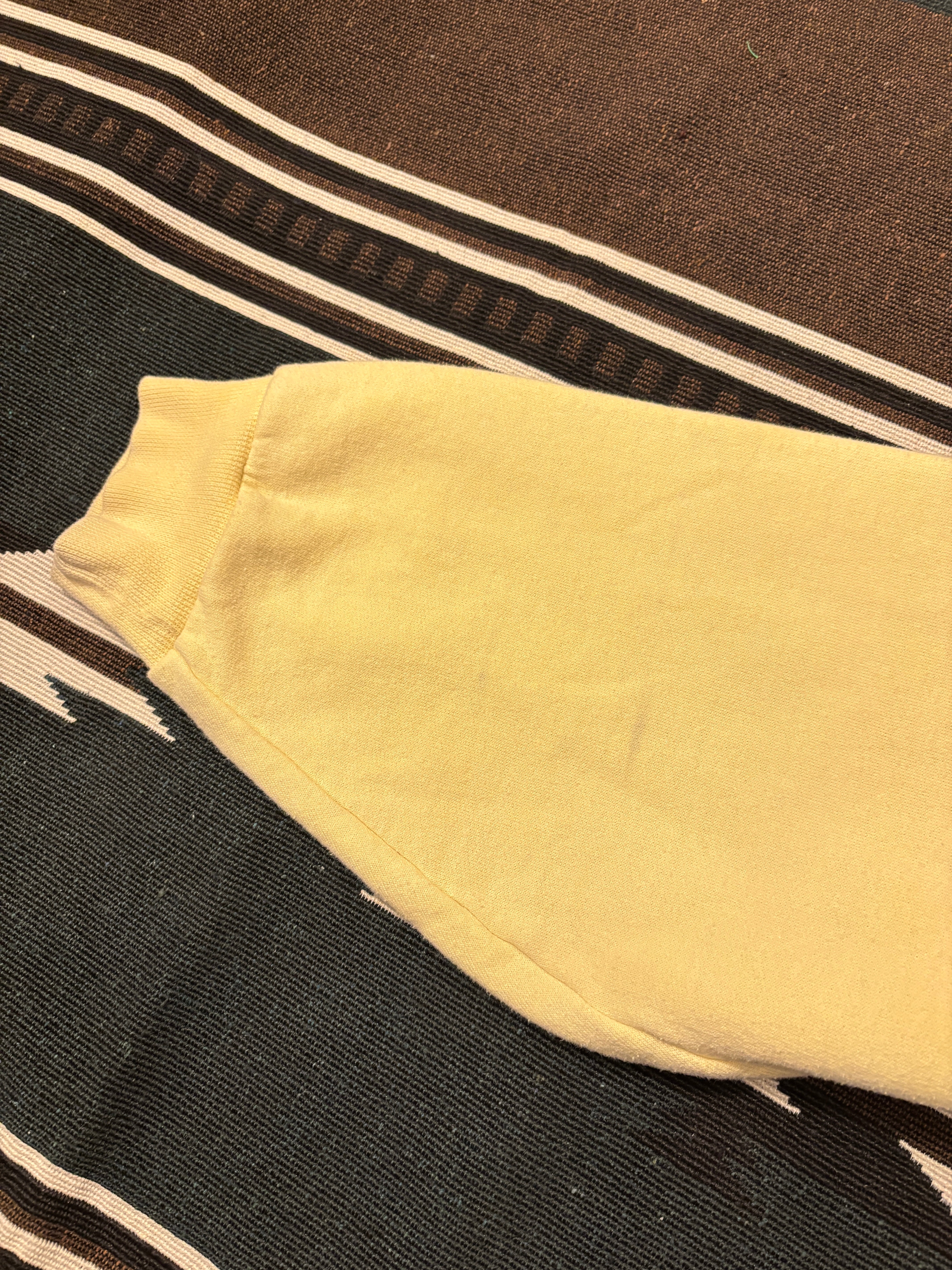カラーはライトイエローで、左袖にもプリントが入っています。