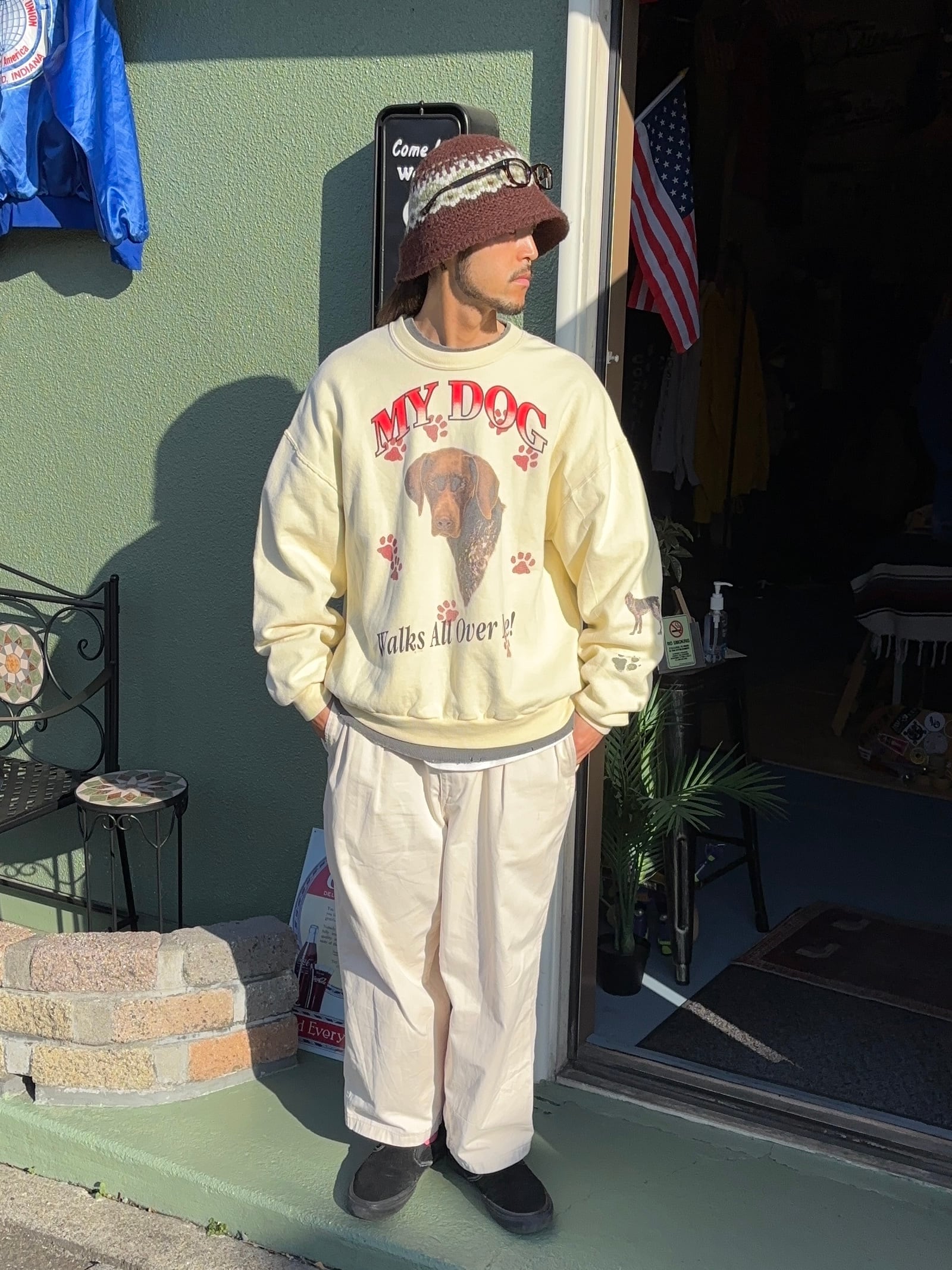 00's "My Dog" Printed Sweat / ポインター 犬 スウェット ジャージーズ 黄色 古着 ヴィンテージ